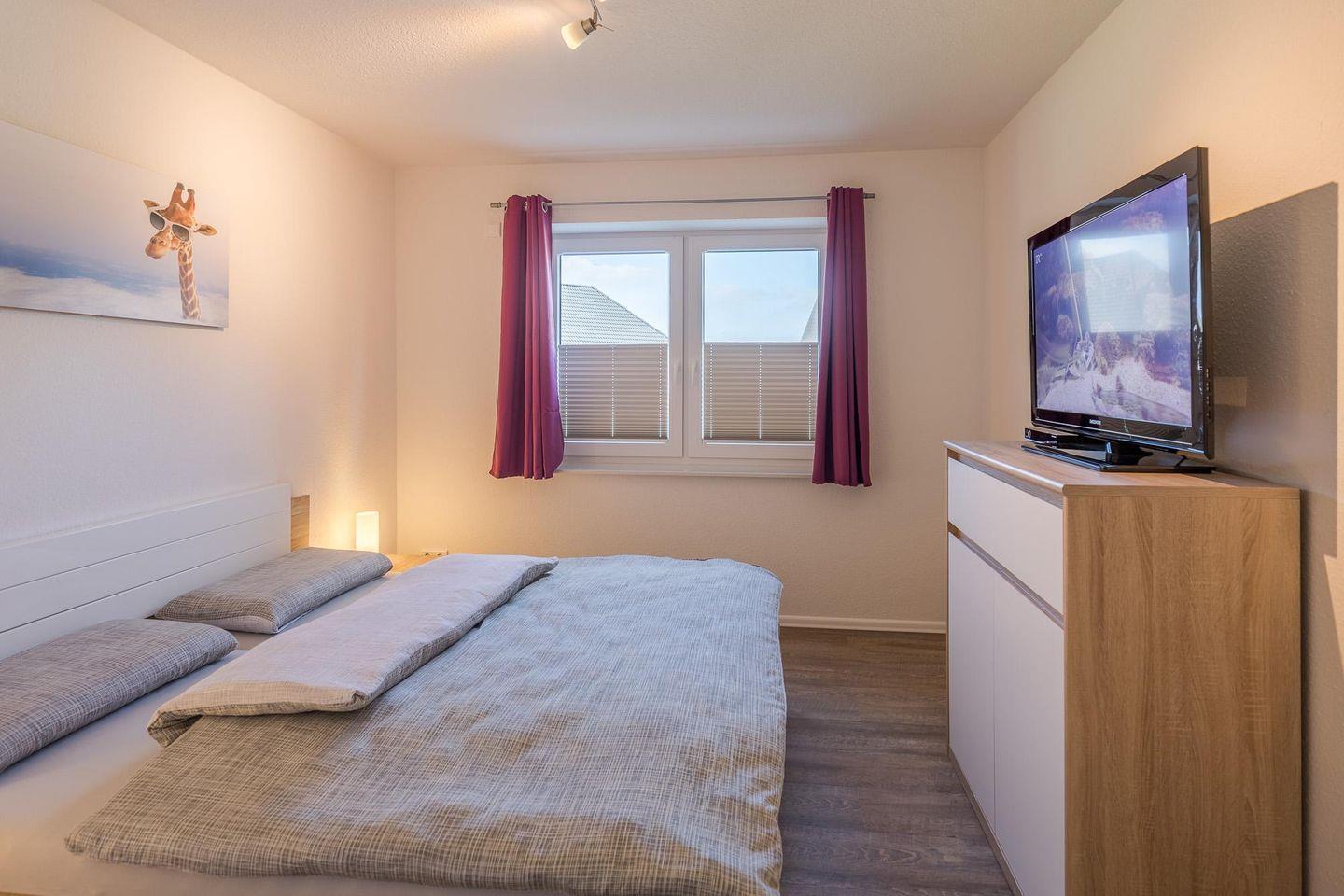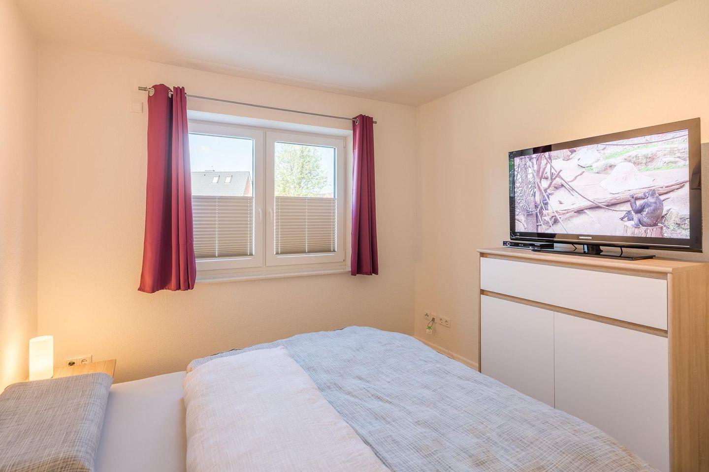 Mit zwei großzügigen Schlafzimmern, jeweils ausgestattet mit komfortablen Betten (180 x 200) und eigenen TVs, verspricht unsere Ferienwohnung erholsame Nächte. Das moderne Duschbad rundet das Wohlfühlerlebnis ab.