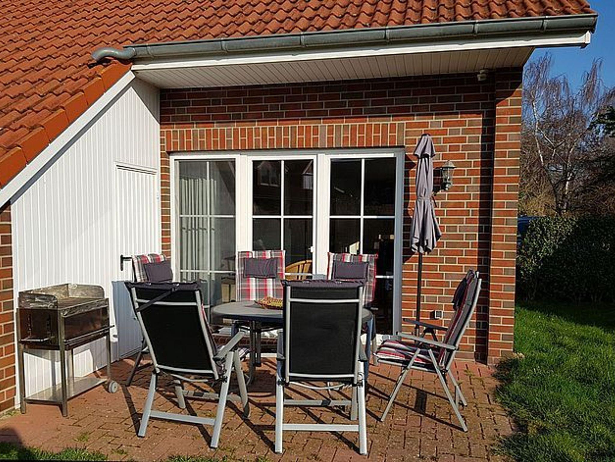Für bis zu 6 Personen sind Terrassenmöbel vorhanden. Ein Sonnenschirm sowie ein Holzkohlegrill stehen ebenfalls zur Verfügung.