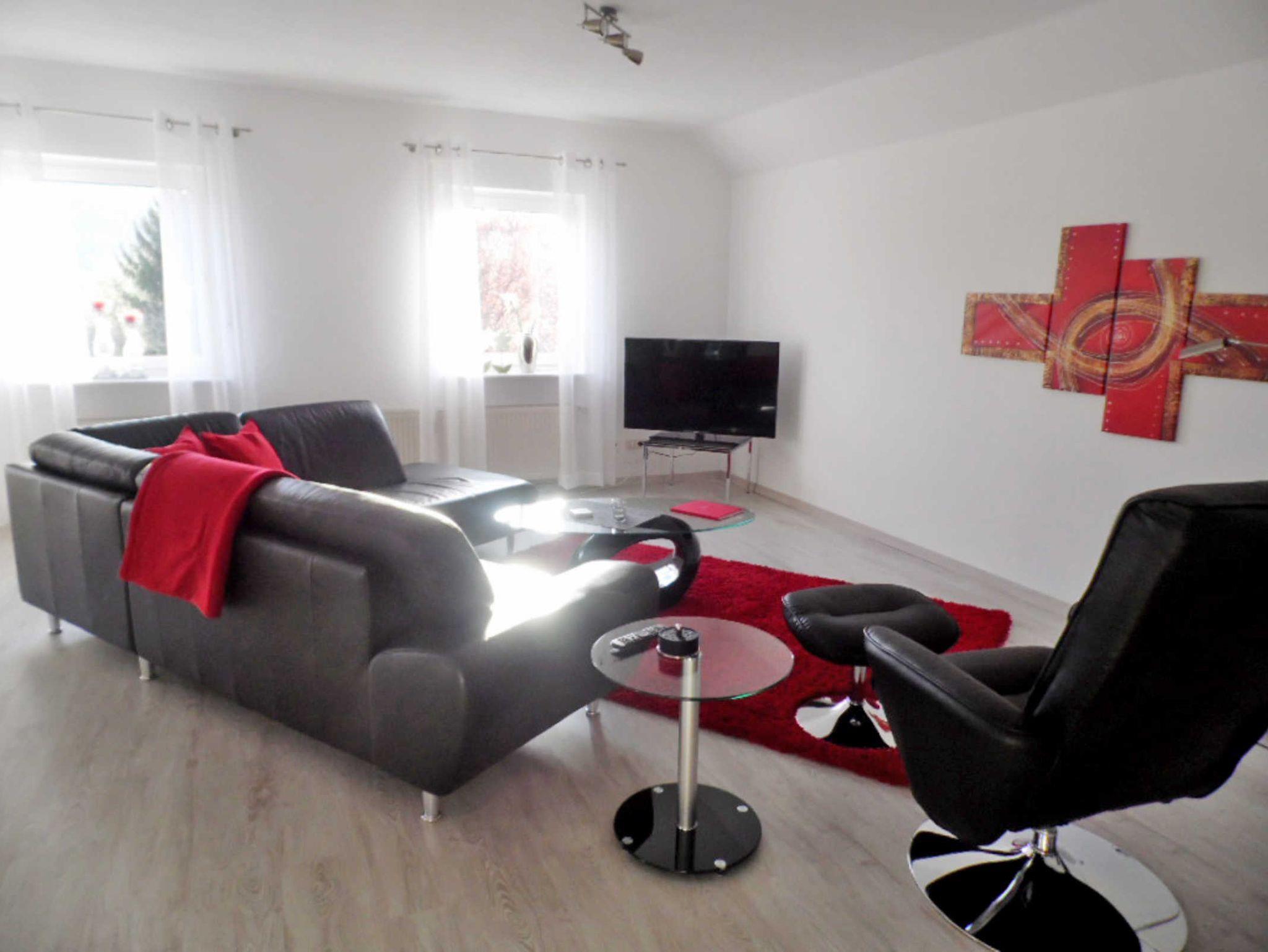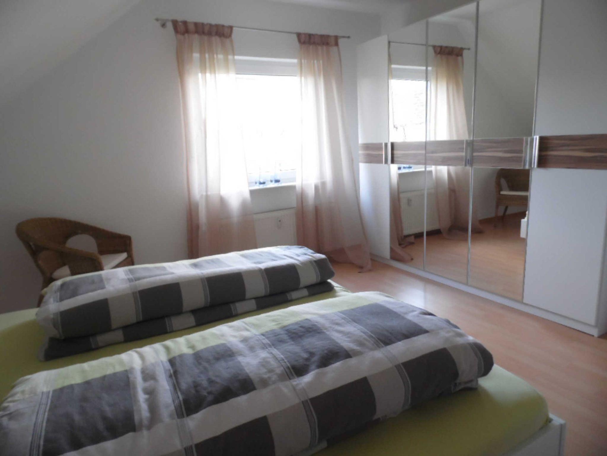 Unsere modern und liebevoll eingerichtet Nichtraucher-Ferienwohnung (92 qm, 1 großes Wohnesszimmer mit offener Küche, 2 Schlafzimmer, Dusche/Badewanne/WC, kleiner Balkon, WLAN-Internet, max. 4 Erwachsene und ein Kleinkind bis 3 J.) befindet sich in der oberen Etage eines Einfamilienhauses, das in einer ruhigen Nebenstraße mit wenig Fahrzeugverkehr liegt.