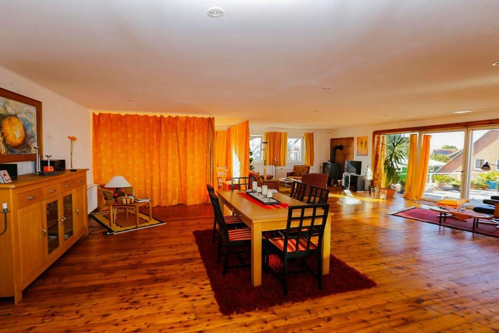 Doordrenkt met licht in zonnige kleuren, met uitzicht op het rivierlandschap, woonervaring op 110 m² voor 2 - 3 personen.