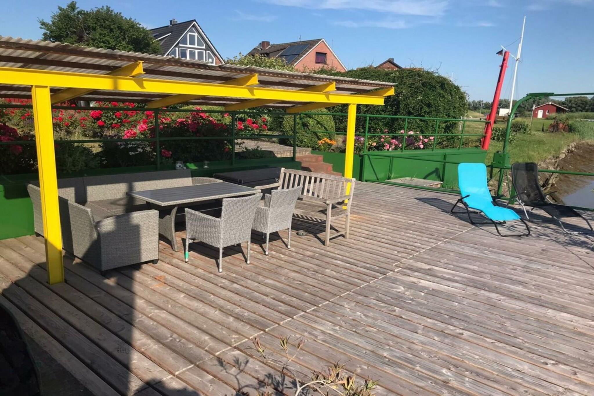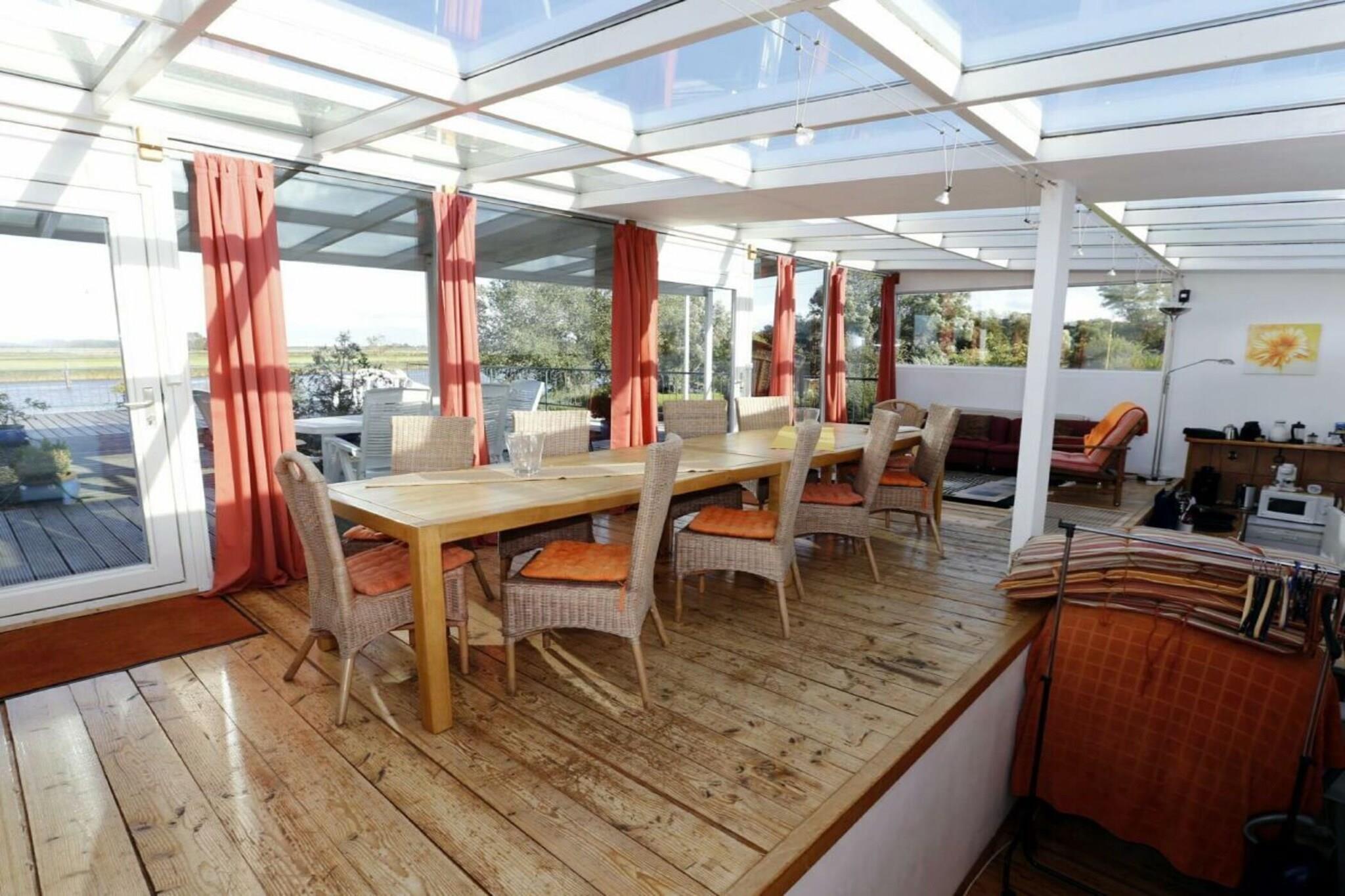 Das Atelier erstreckt sich über 165qm und ist zwei Ebenen unterteilt, Wintergarten mit großem Esstisch und Sofaecke mit Zugang zur Dachterrasse mit eigenem Strandkorb. Im unteren Bereich ist die in den Wohnbereich integrierte, offene Küche, eine gemütliche Sitzgruppe vor dem Kamin, ein weiterer großzügiger Esstisch und im hinteren Bereich sind zwei große 2x2 Meter Betten. Das Bad hat einen Doppelwaschtisch, eine Badewanne mit Dusche und WC. Vom Wintergarten aus und der Terrasse hat man einen großartigen Blick über die Flusslandschaft.
