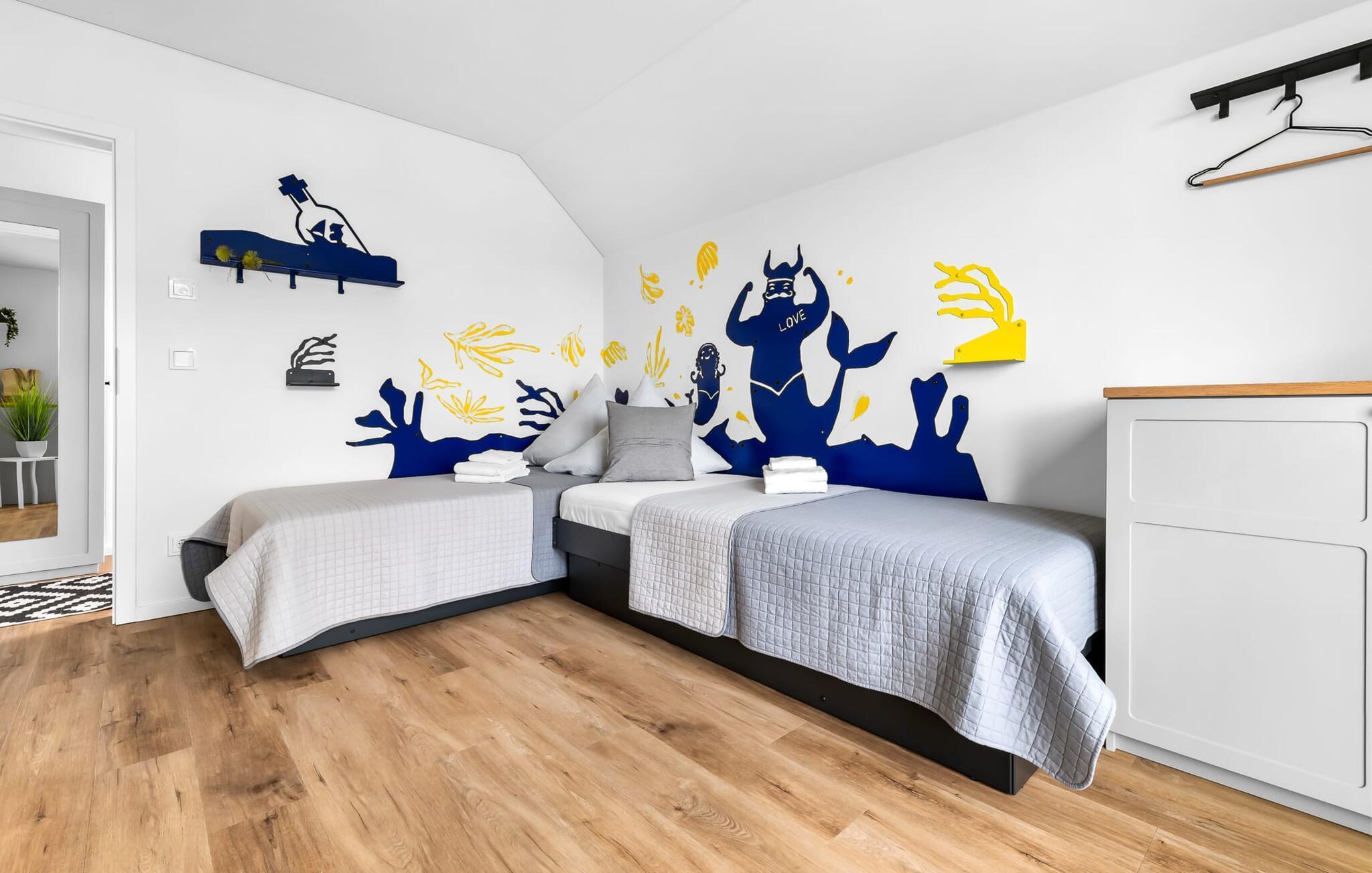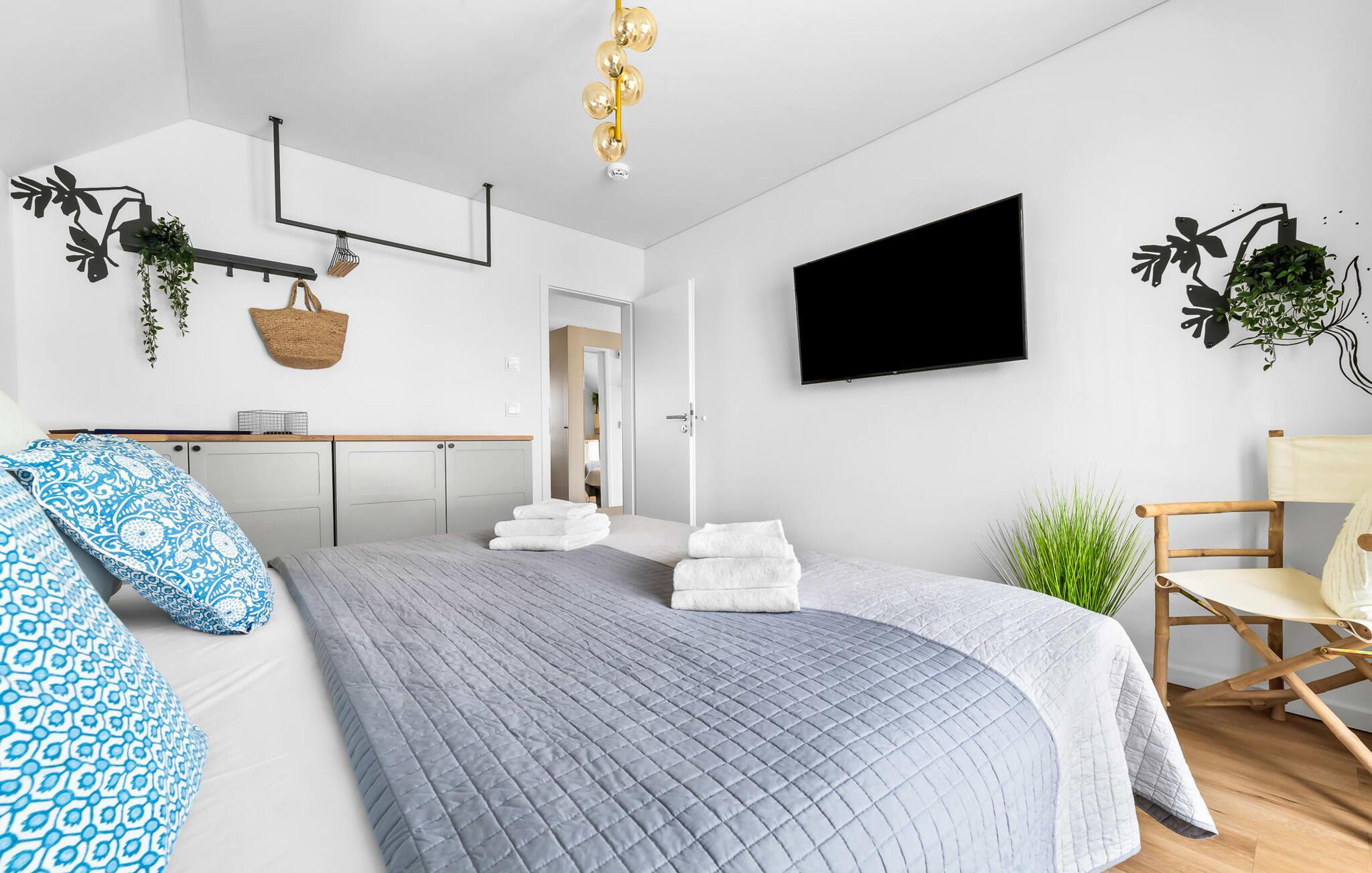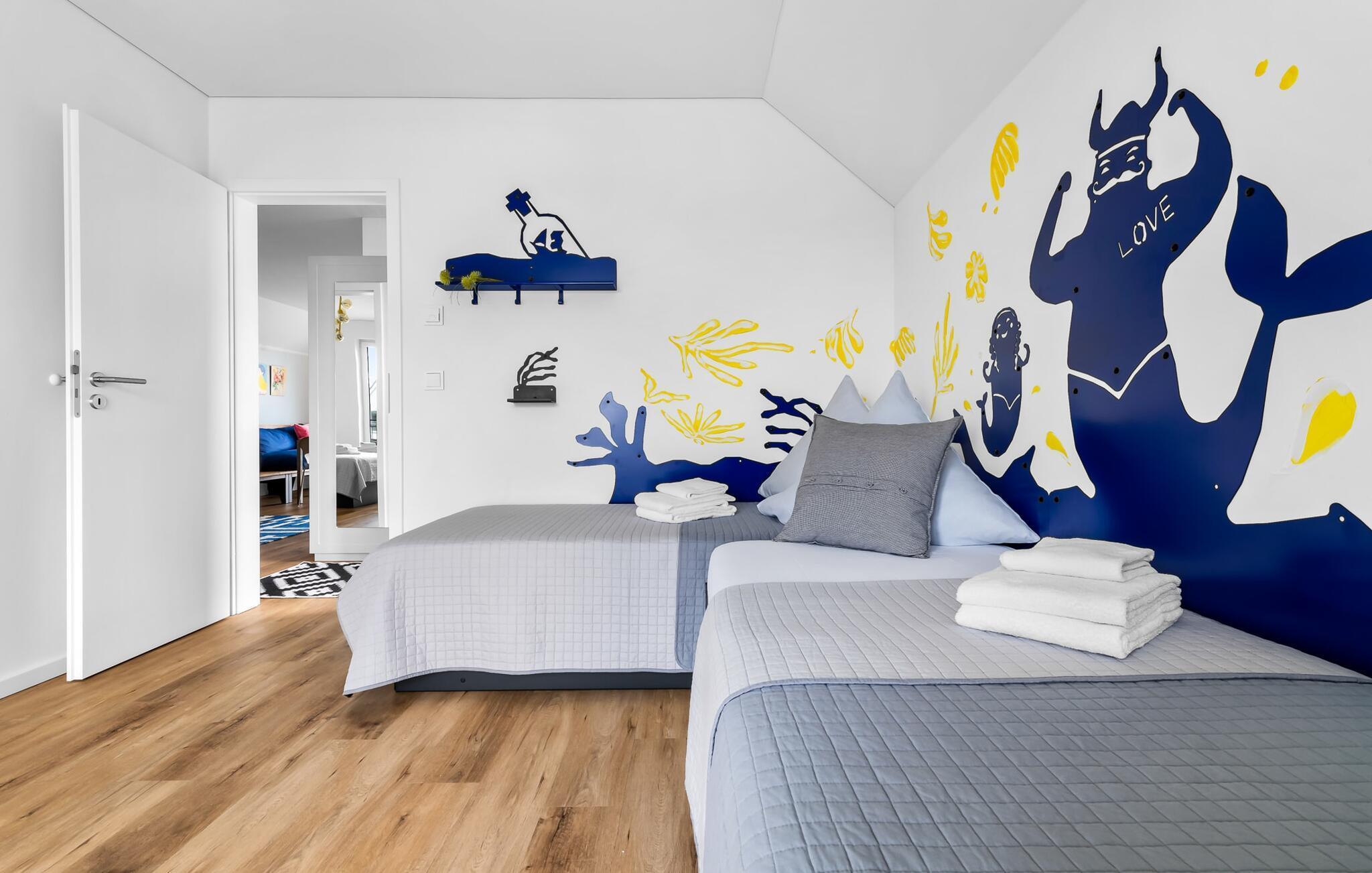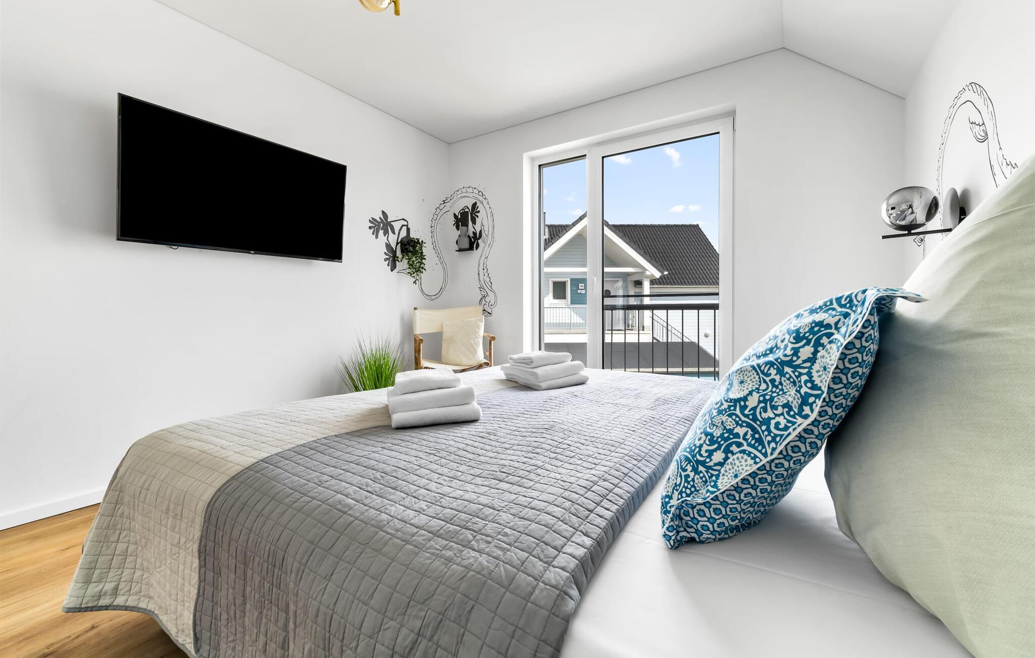 Das Hauptschlafzimmer erwartet euch mit einem großzügigen Doppelbett und einem Fernseher für entspannte Stunden. Das zweite Schlafzimmer bietet mit zwei weiteren bequemen Einzelbetten ausreichend Schlafplatz für die ganze Familie. Außerdem gibt es eine zusätzliche Klappmatratze für ein Kind als fünfte Person.