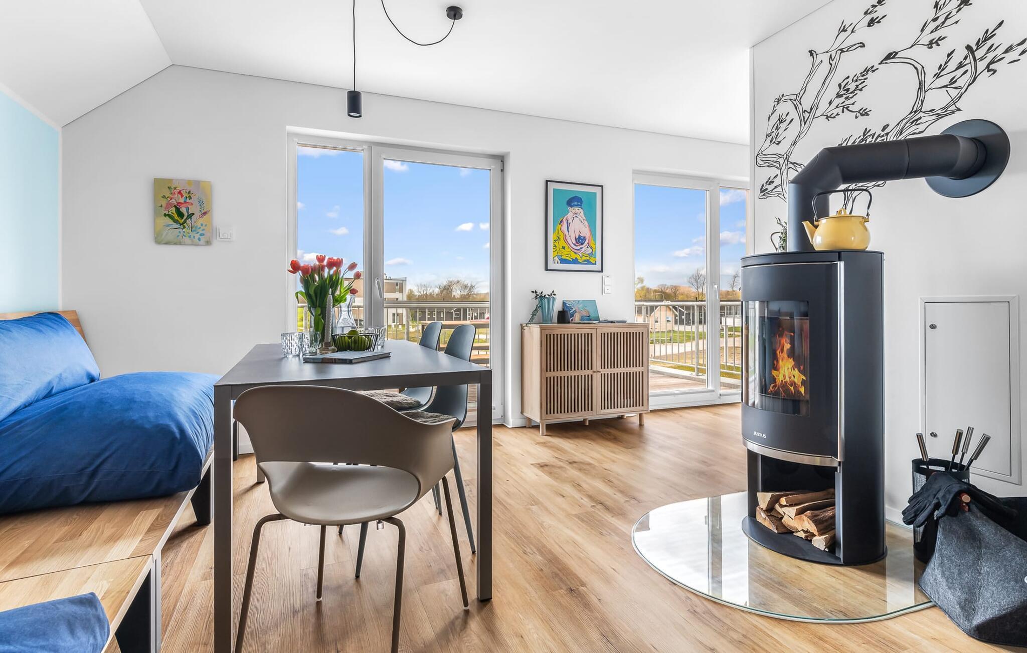 Im Urlaub habt ihr die Muße, sich in der rundum ausgestatteten Wohnküche kulinarisch auszuleben. Für romantische Abende vor dem Kaminfeuer steht ein kuscheliges Sofa bereit. Darüber hinaus sorgen WLAN und ein Smart TV mit Telekom Home Entertainment Programm für Unterhaltung an regnerischen Tagen.