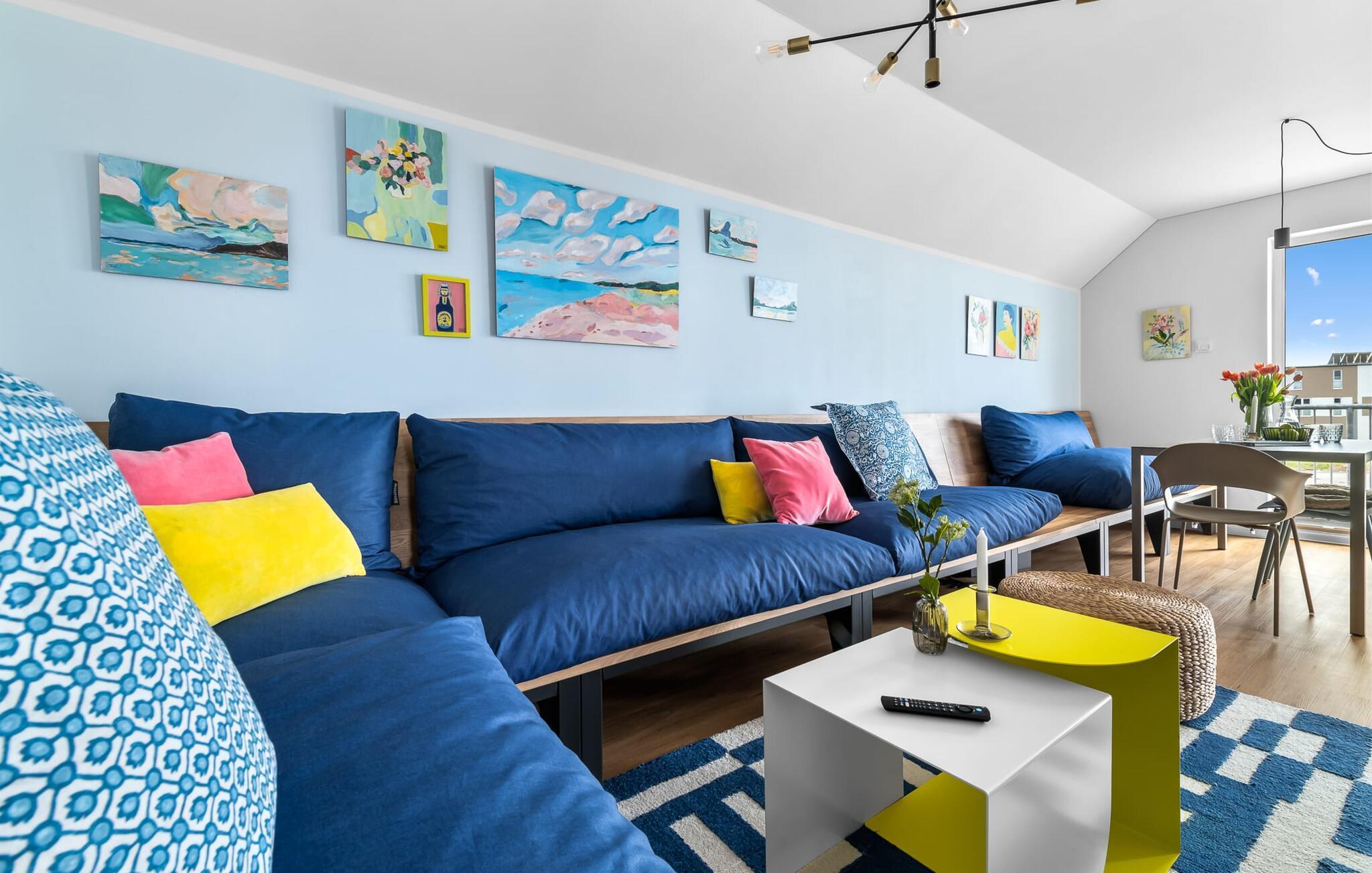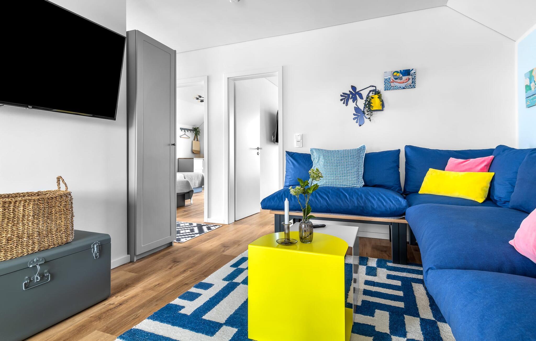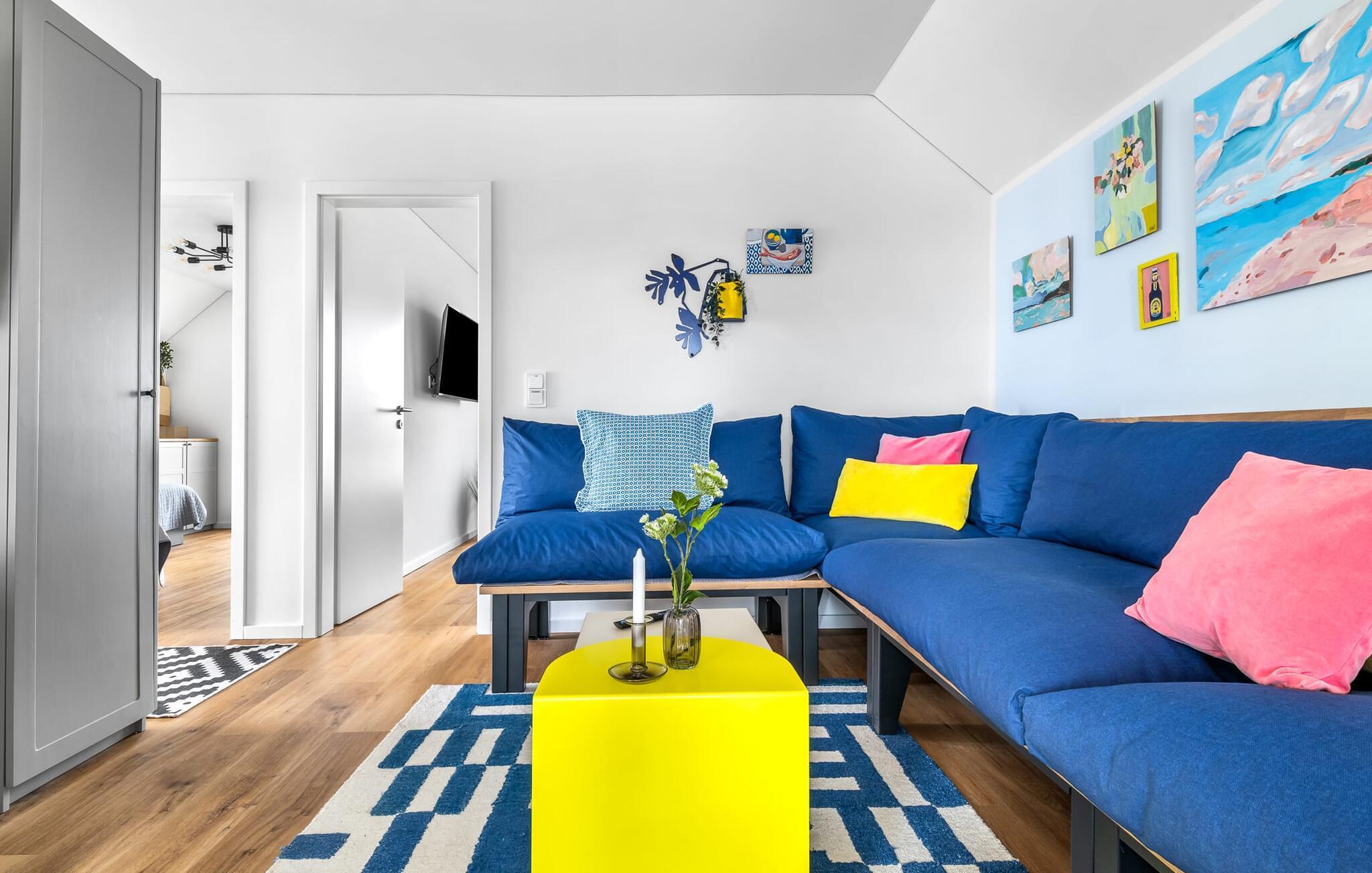 Unsere Designerwohnung zeichnet sich durch eine kunstvolle und farblich abgestimmte Innenausstattung sowie Liebe zum Detail aus.