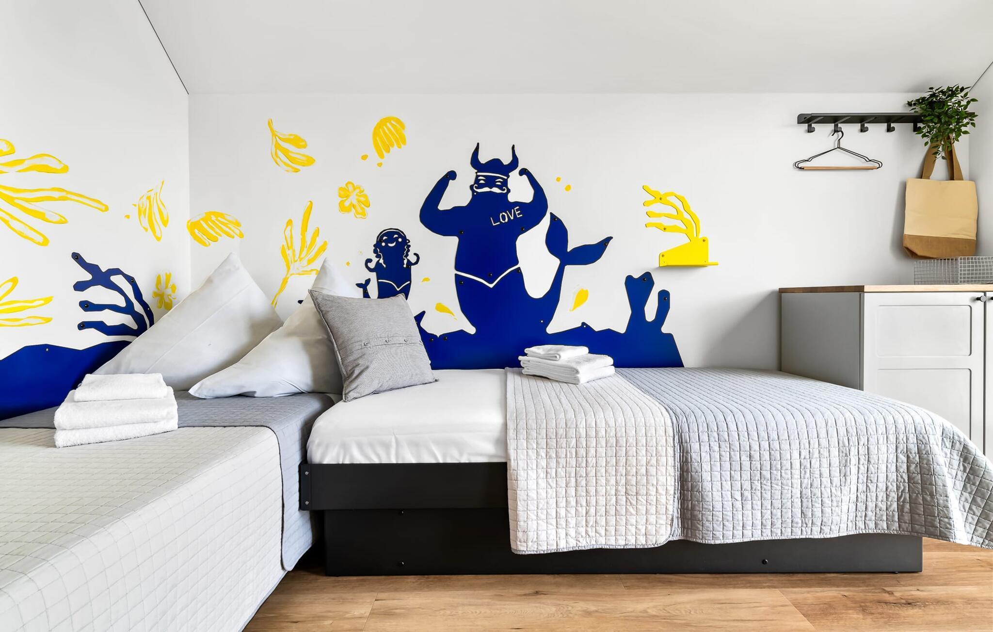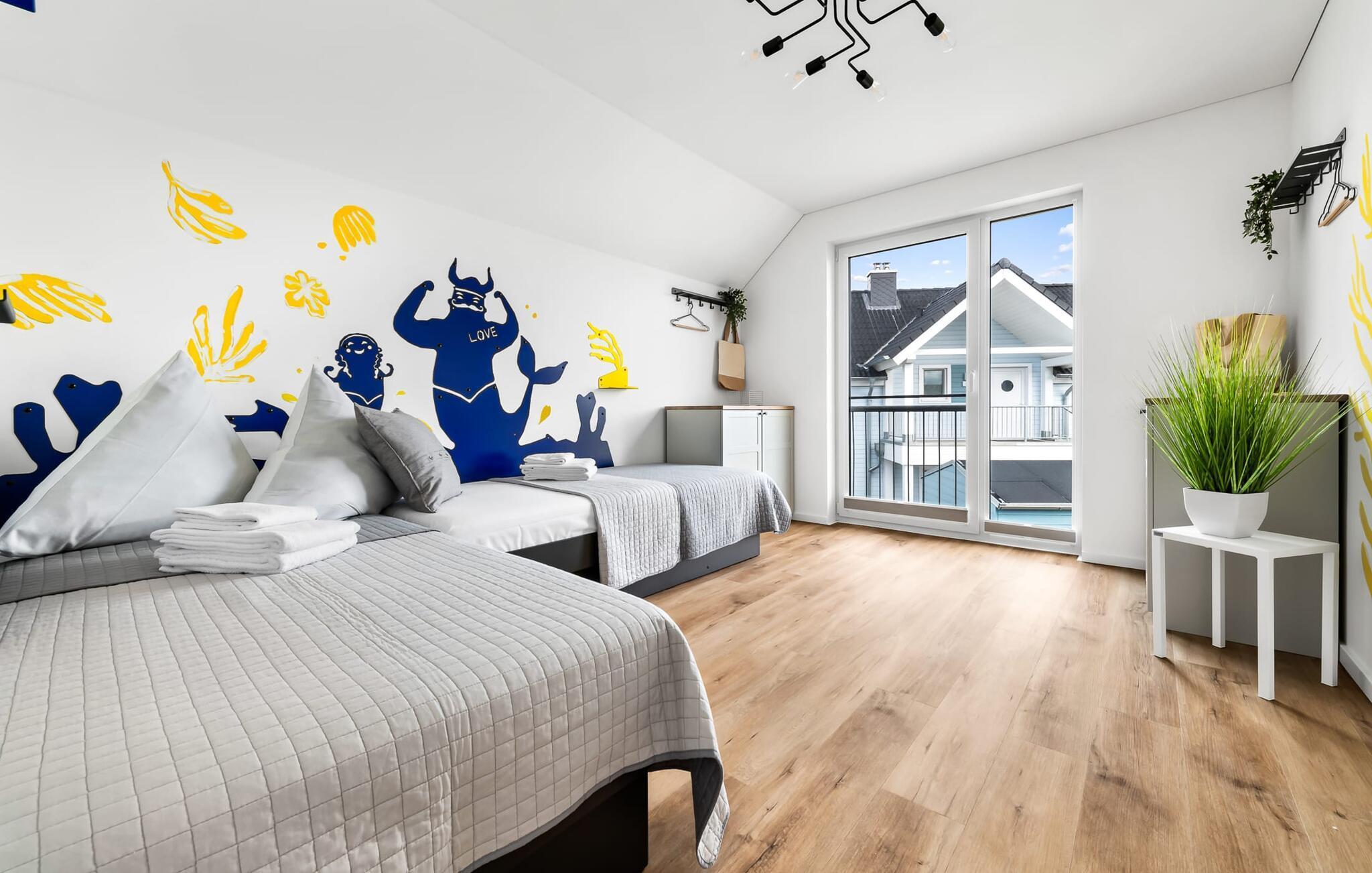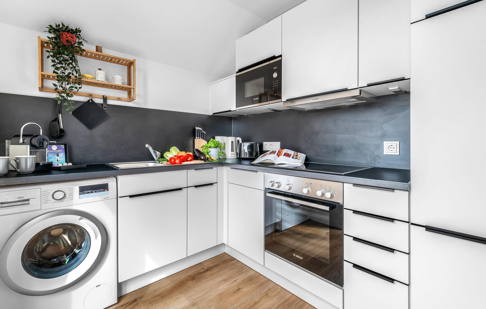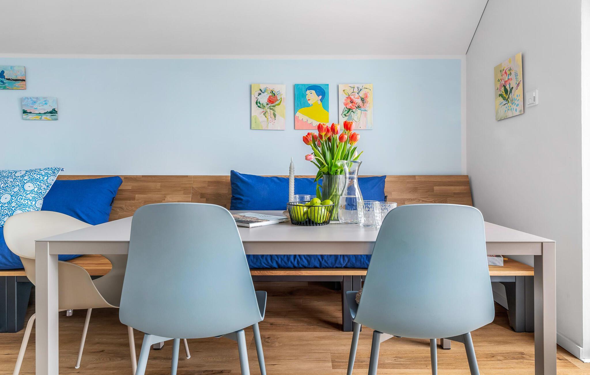 Unsere Designerwohnung zeichnet sich durch eine kunstvolle und farblich abgestimmte Innenausstattung sowie Liebe zum Detail aus.