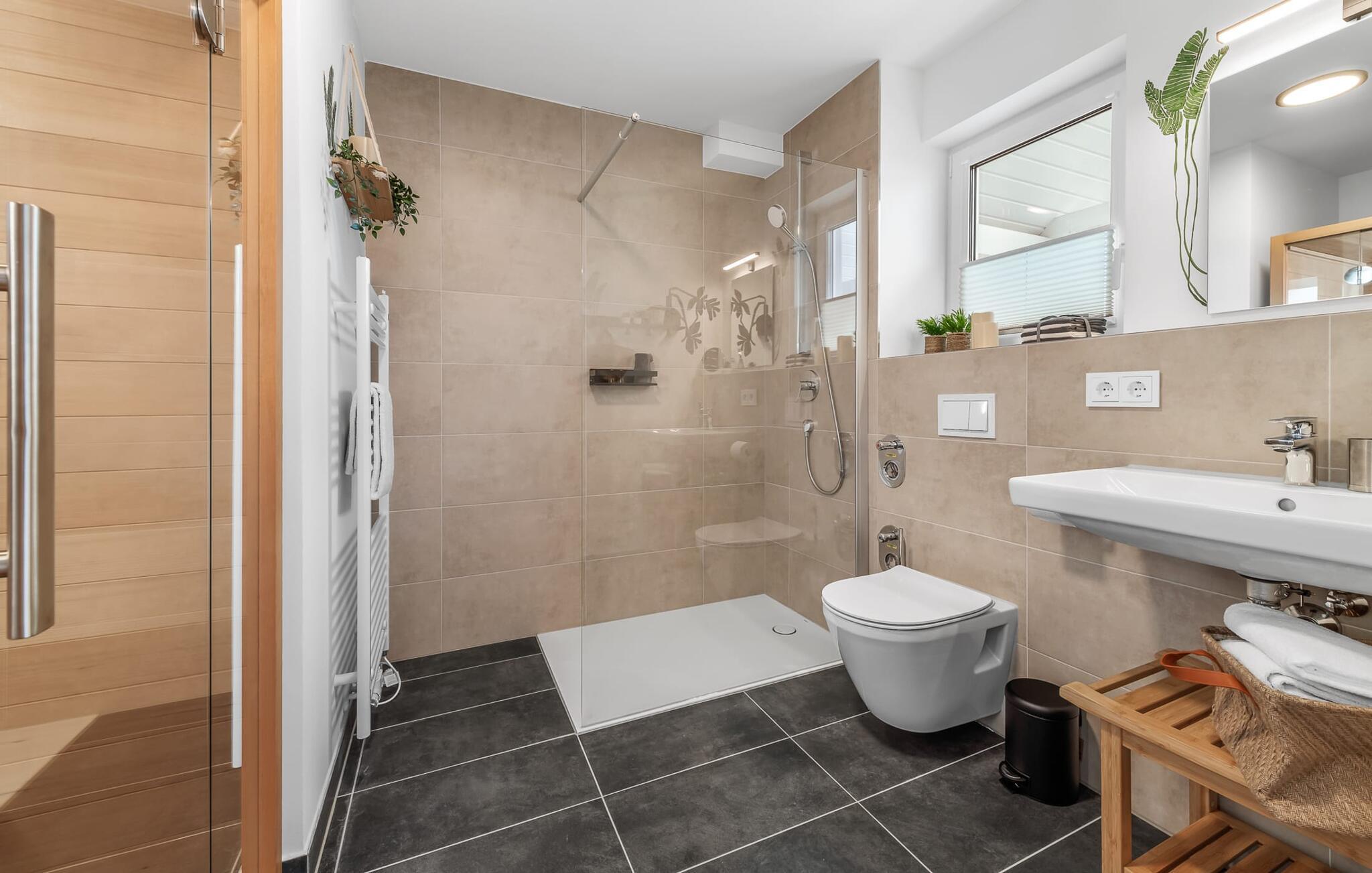Nach einem ausgedehnten Strandspaziergang erwartet euch im Badezimmer eine wahre Wohlfühloase! Mit einer bodengleichen Dusche und einer entspannenden Infrarot-Sauna bietet es euch die perfekte Möglichkeit, die Seele baumeln zu lassen.