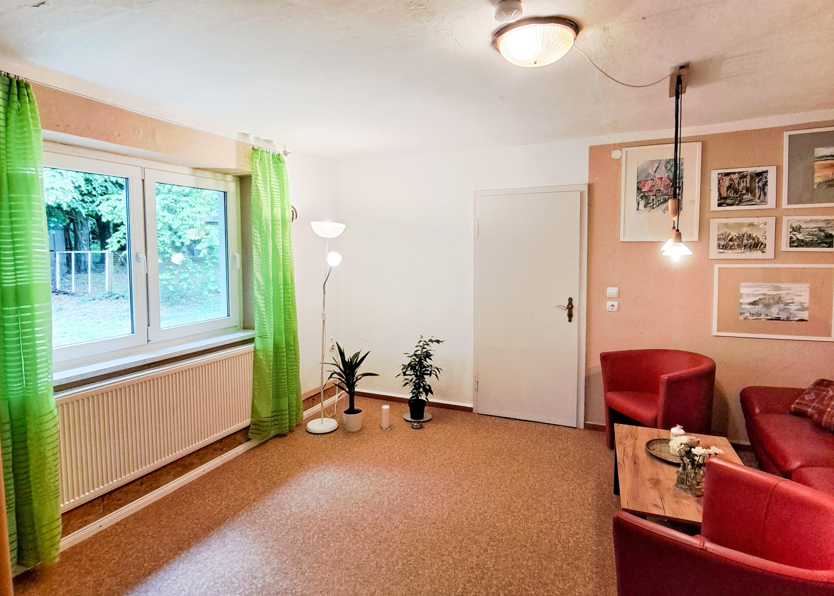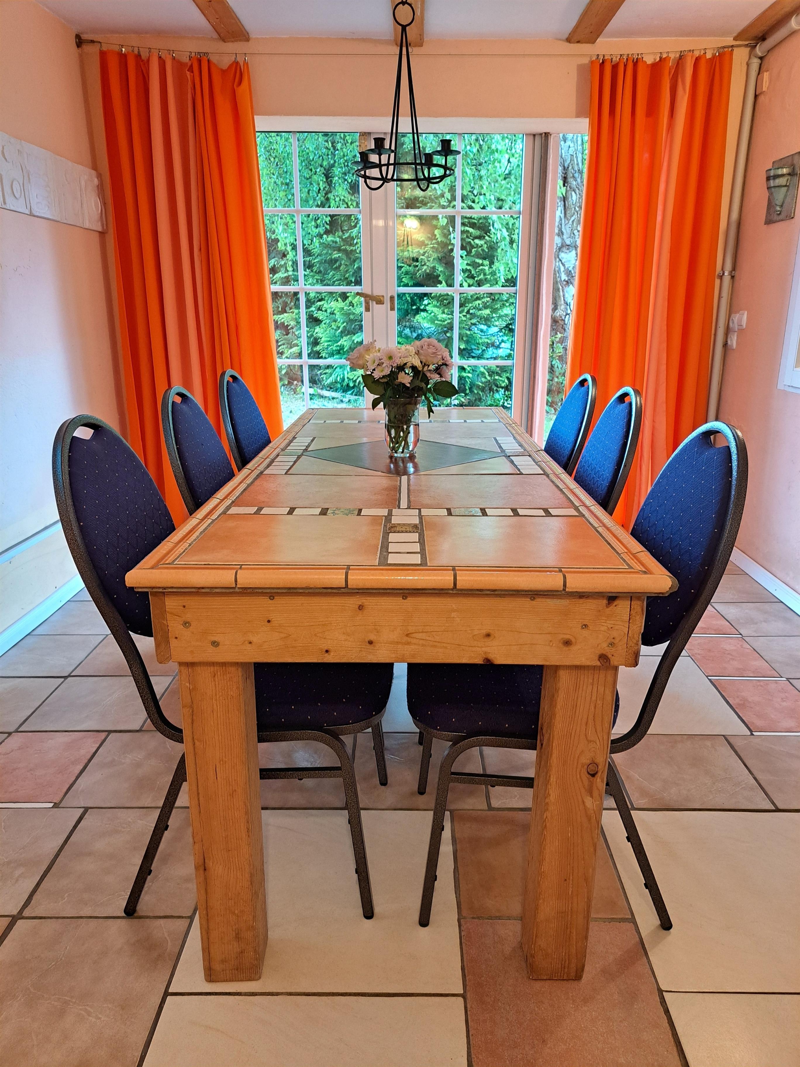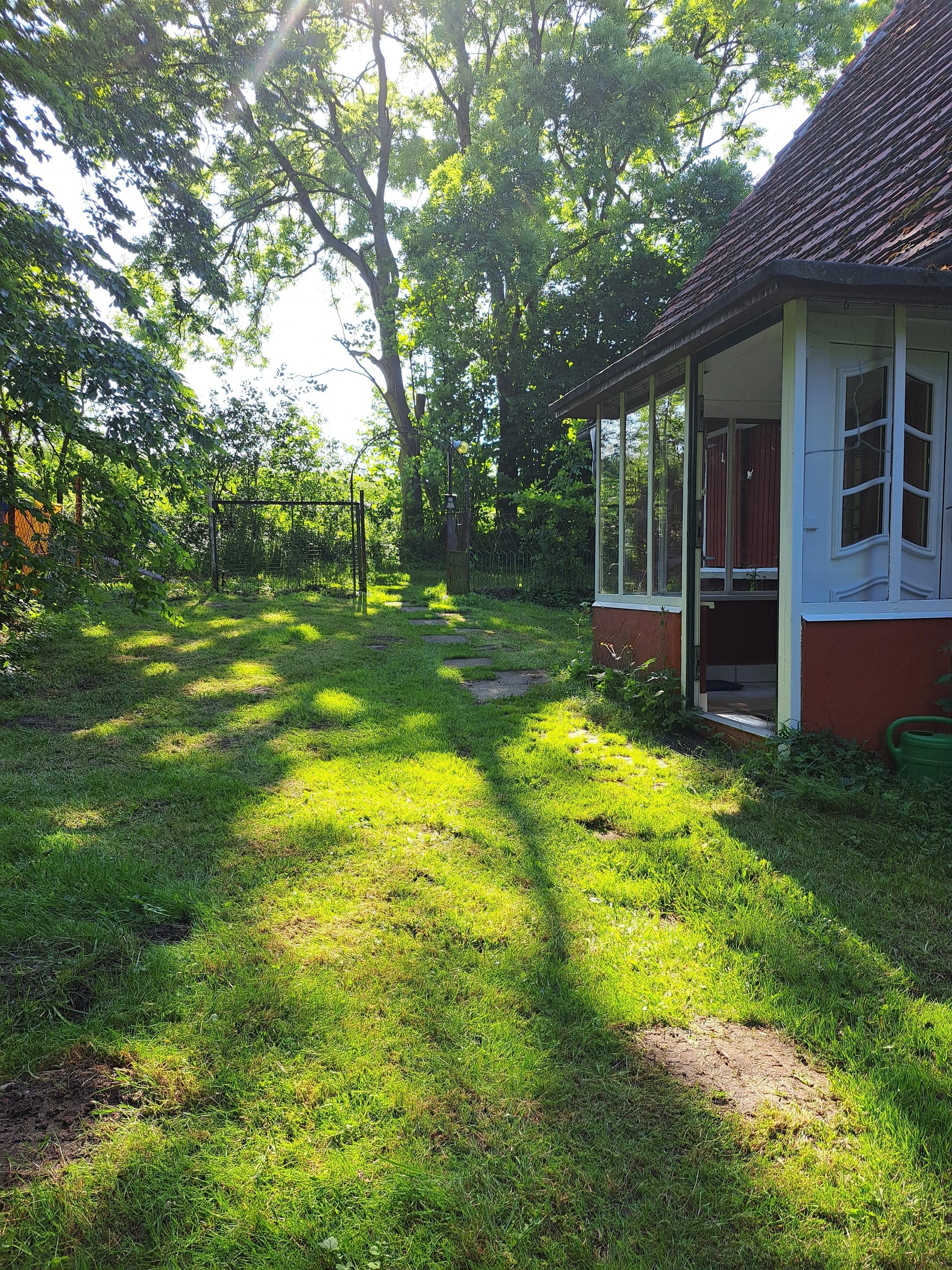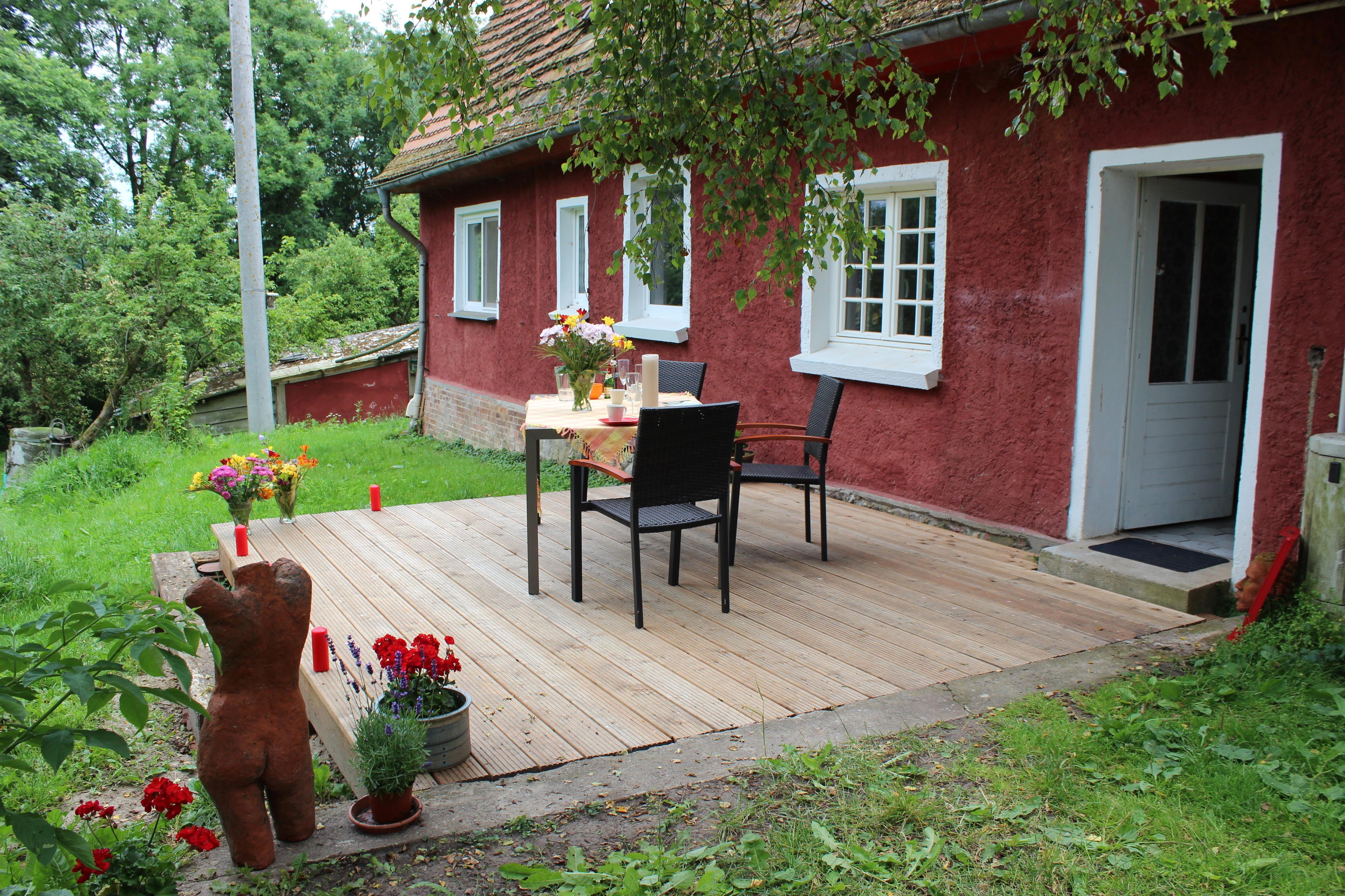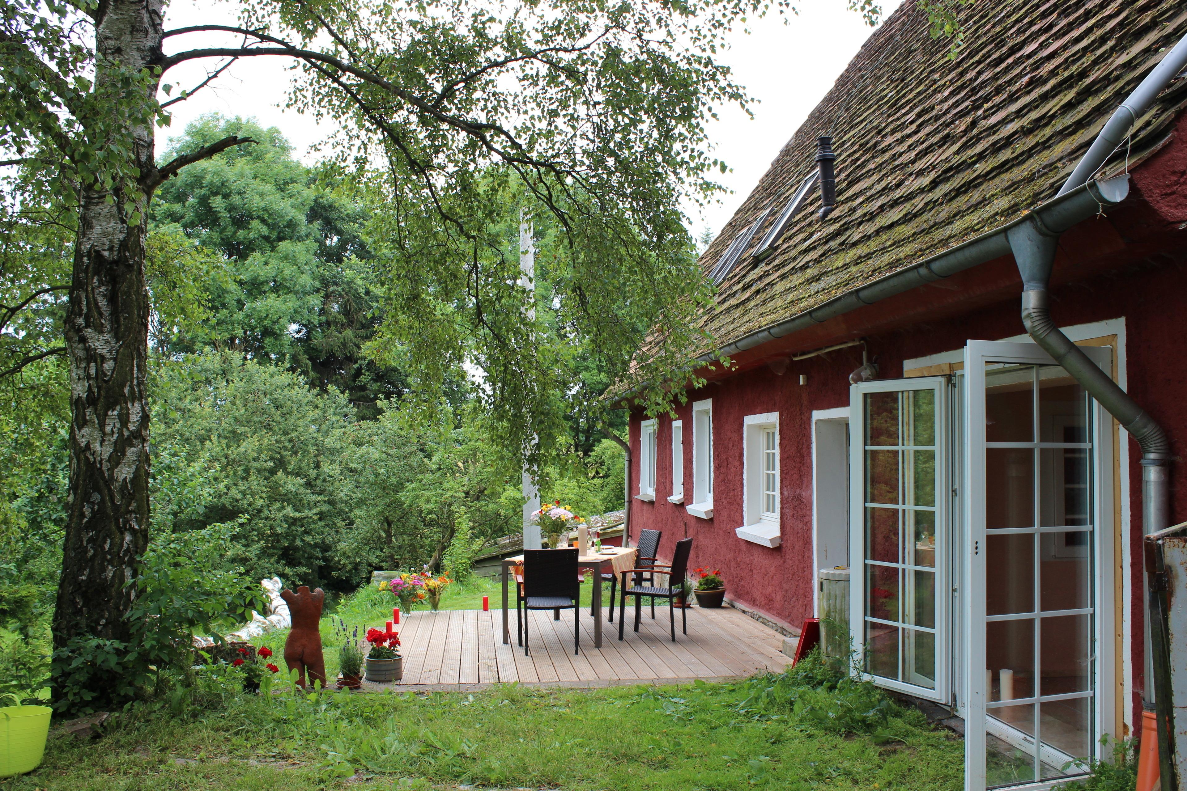 Besonderes Highlight: Die sonnige Terrasse direkt an der Küche mit freiem Blick in den grünen Garten – ideal für ein Frühstück im Morgentau oder einen entspannten Abend mit Vogelgezwitscher und weitem Himmel.