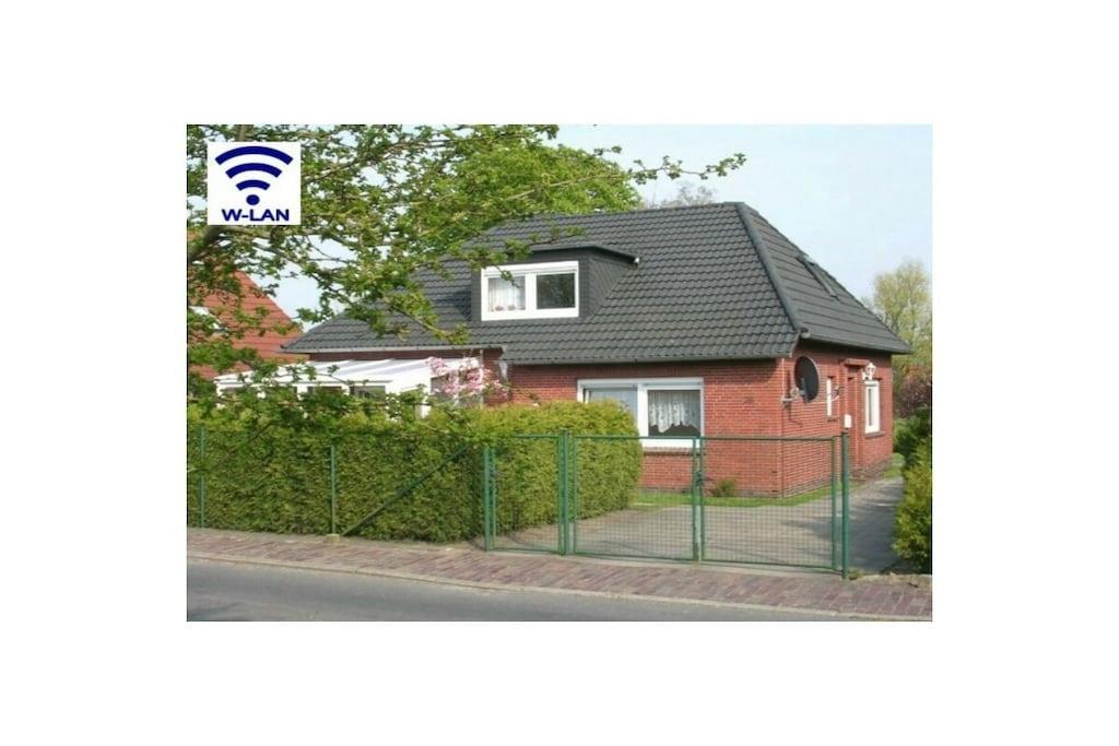 Ground floor holiday apartment Sonnenschein with Wi-Fi, summer conservatory and enclosed garden approx. 100m from the river Harle; 1-2 pets are allowed.