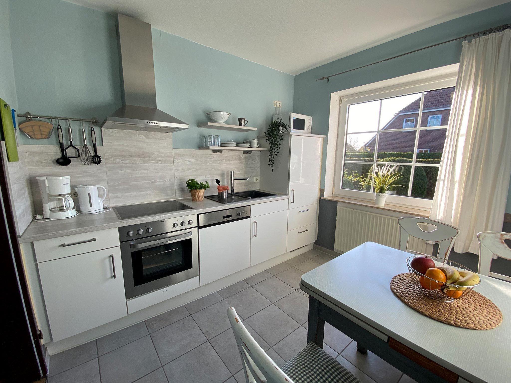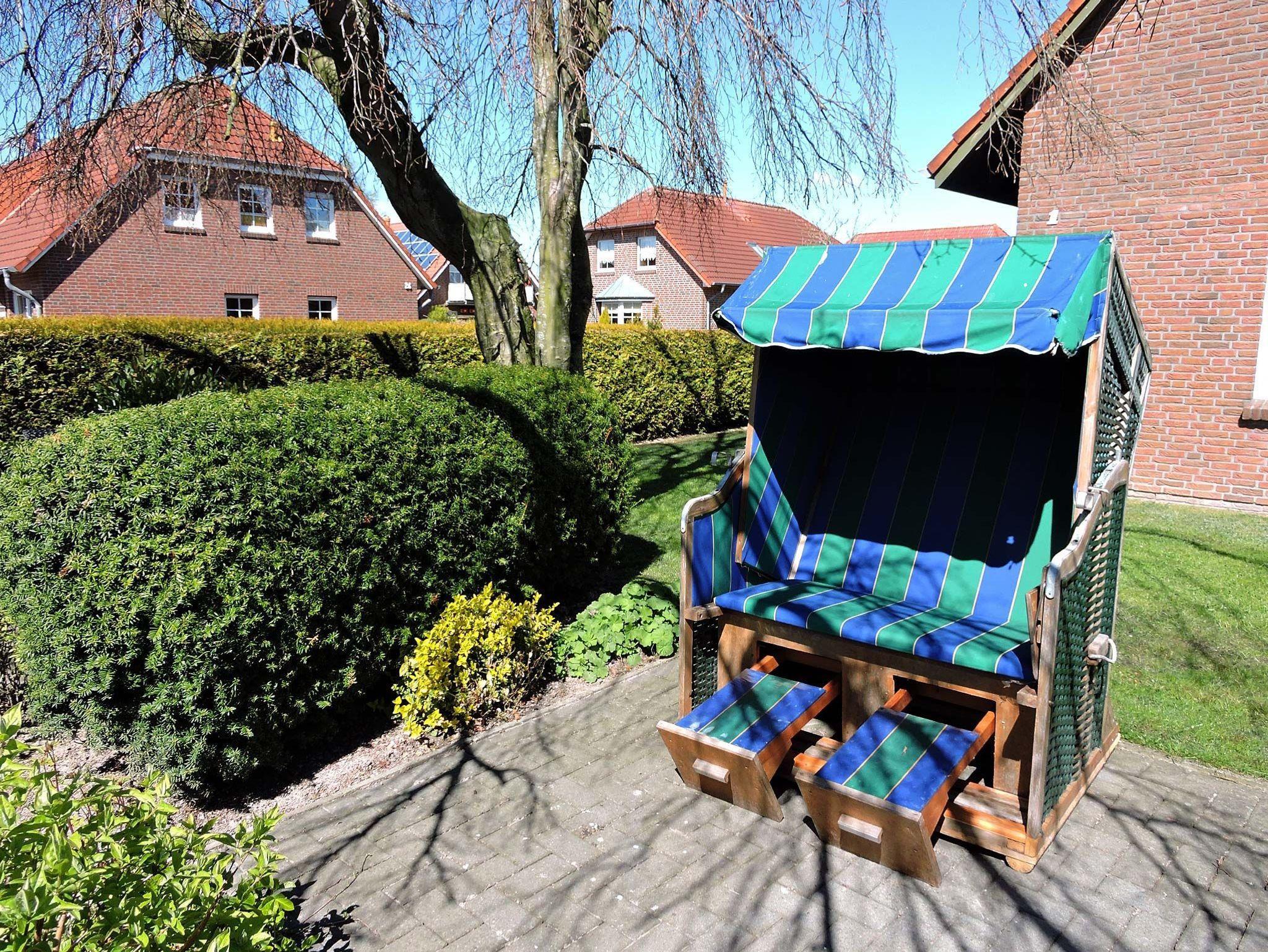 Die große Ferienwohnung für 3 Erwachsene und 2 Kinder bis 12 Jahre verfügt über ein großzügiges Wohnzimmer mit Terrassenzugang. Auf der Terrasse mit Gartenmöbeln und Grillmöglichkeit kann man den Urlaub vollends genießen. Die beiden Schlafräume verfügen über ein Doppelbett bzw. ein Einzelbett und Etagenbett. Das Bad mit Tropenregendusche (barrierefrei) bietet 2 Waschtische und WC, zusätzlich steht ein Gäste-WC zur Verfügung. Die separate Küche mit Spülmaschine ist komplett ausgestattet.
