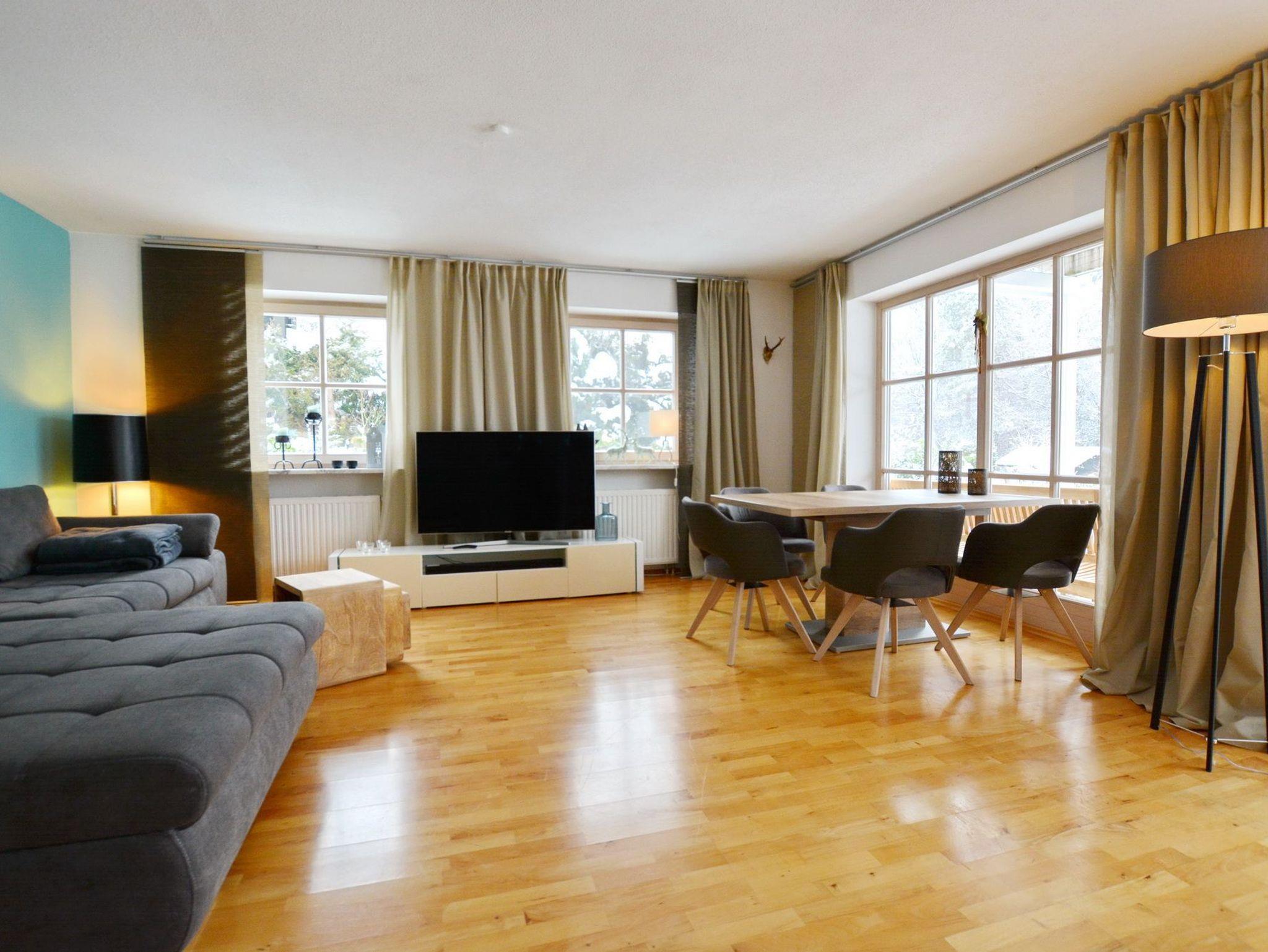 Edel abgestimmte Farbtöne dominieren das Innere der Zimmer und schaffen eine gemütliche Atmosphäre. Holzböden im Wohnbereich sowie in allen Schlafzimmern unterstützen das gehobene Ambiente des Feriendomizils. Das Gartenparadies erstreckt sich über die komplette Etage und schafft dadurch ein Privat-Feeling.