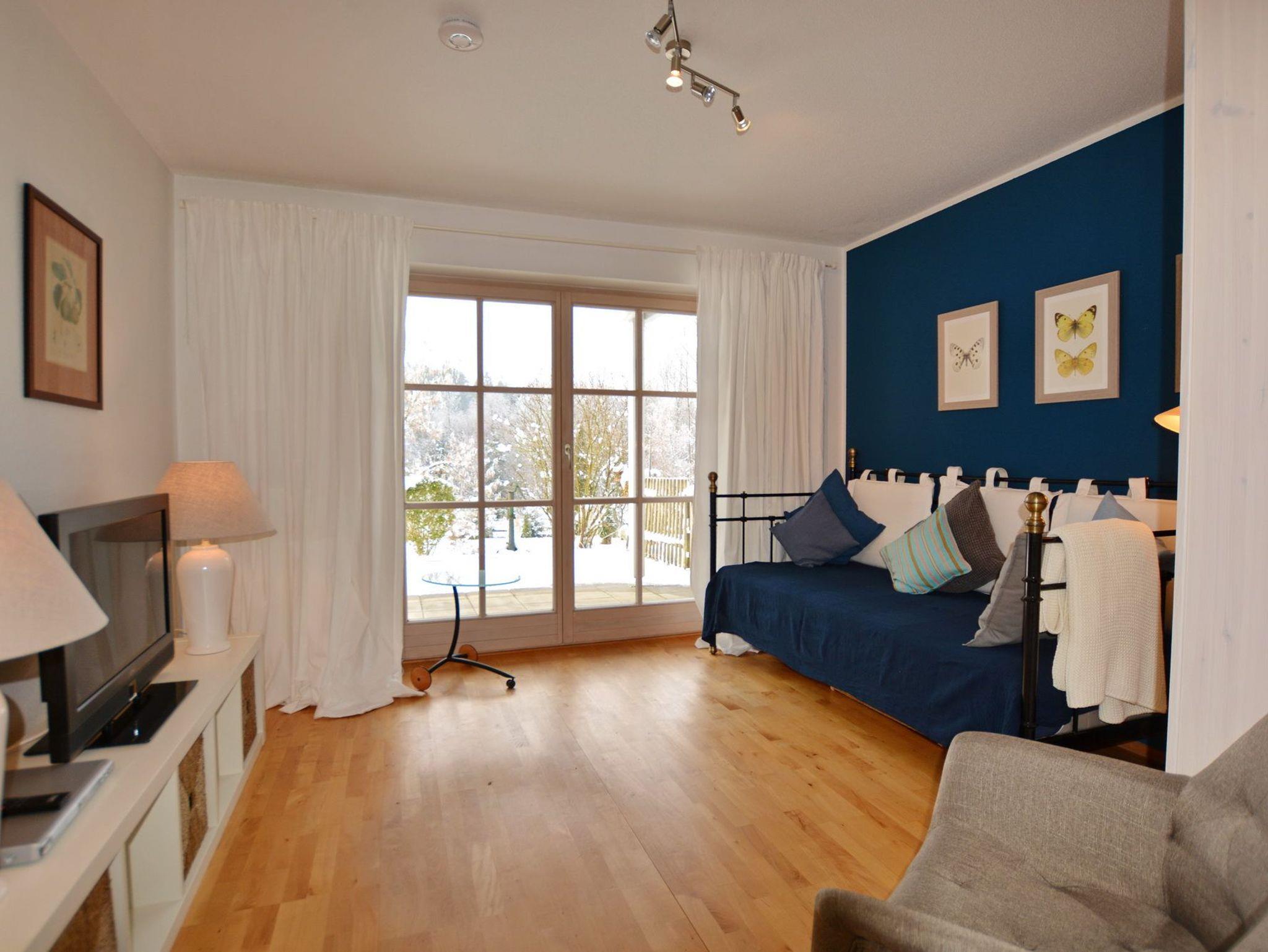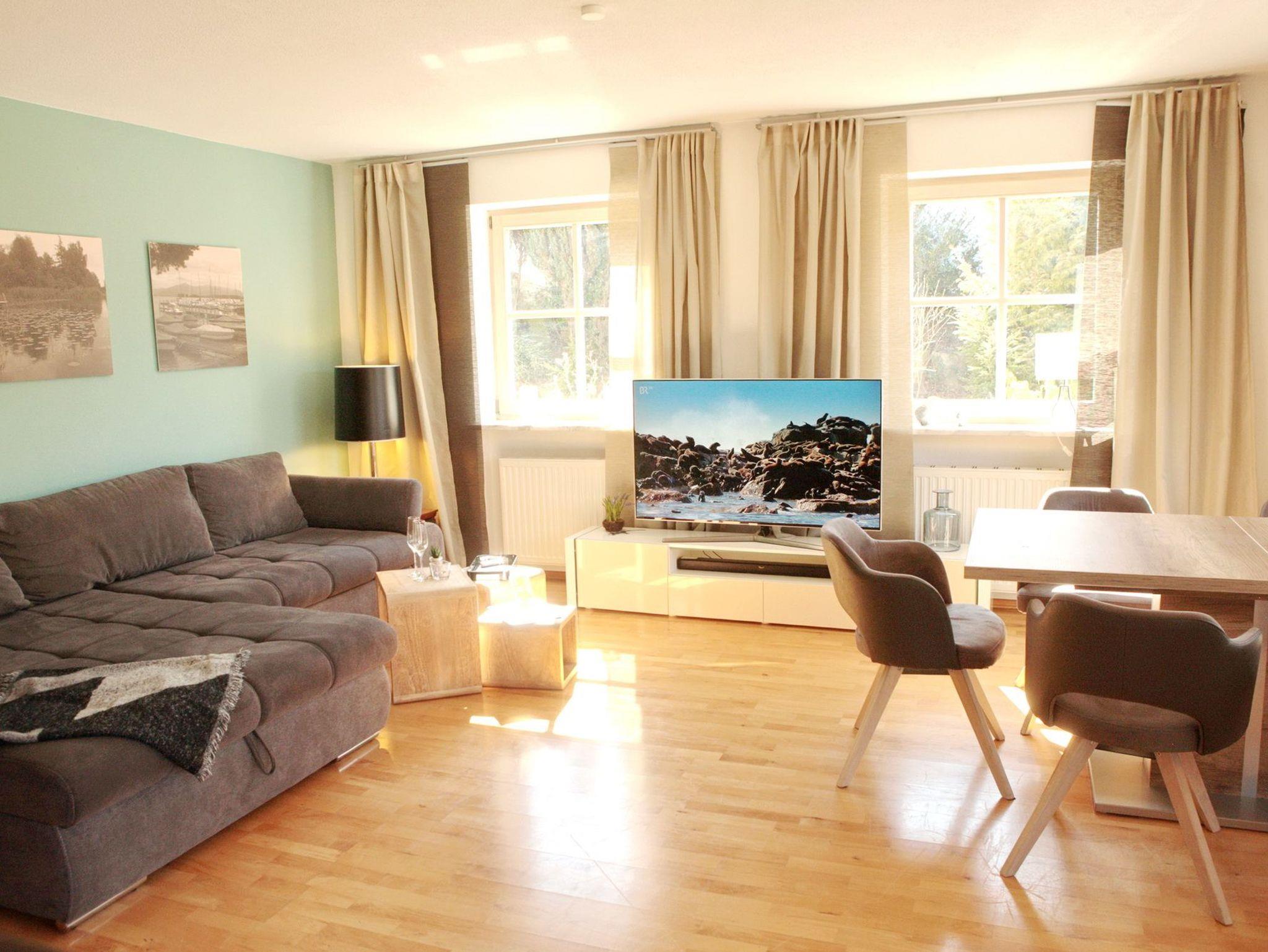 Durch das harmonische Spiel mit Farben zieht einen dieses Feriendomizil schon bei den ersten Schritten durch die Wohnung in seinen Bann. Das lichtdurchflutete Wohnzimmer mit traumhaften Blick in den Garten begeistert durch viele Details. Die Ruhe gibt einem sofort ein Gefühl von Erholung. Der offene Wohn- und Essbereich ist der Mittelpunkt des Ferienobjektes - Treffpunkt für gemütliche Stunden. In der angrenzenden offenen Küche finden Sie alles, was das Kochherz höher schlagen lässt: Ein extra großes Cerankochfeld, Backofen, Geschirrspülmaschine und noch vieles mehr verführt zu kreativen Kochkünsten. Nach schönen Ausflügen können Sie sich bei einem Film in brillanter 4K Full-HD-Qualität entspannen oder den schönen Garten mit einem Glas Rotwein genießen. Drei behagliche Schlafzimmer und zwei wunderschöne Bäder (1x mit Dusche und 1x mit Badewanne) sind komfortable und willkommene Rückzugsorte für bis zu fünf Personen. Im großen Schlafzimmer wartet ein modernes und auf beiden Seiten höhenverstellbares Boxspringbett auf Sie, das erholsame Nächte garantiert. Die weiteren Schlafzimmer sind einmal mit einem Einzelbett (und Fernseher) und einmal mit einem französischen Bett (140x200) versehen.