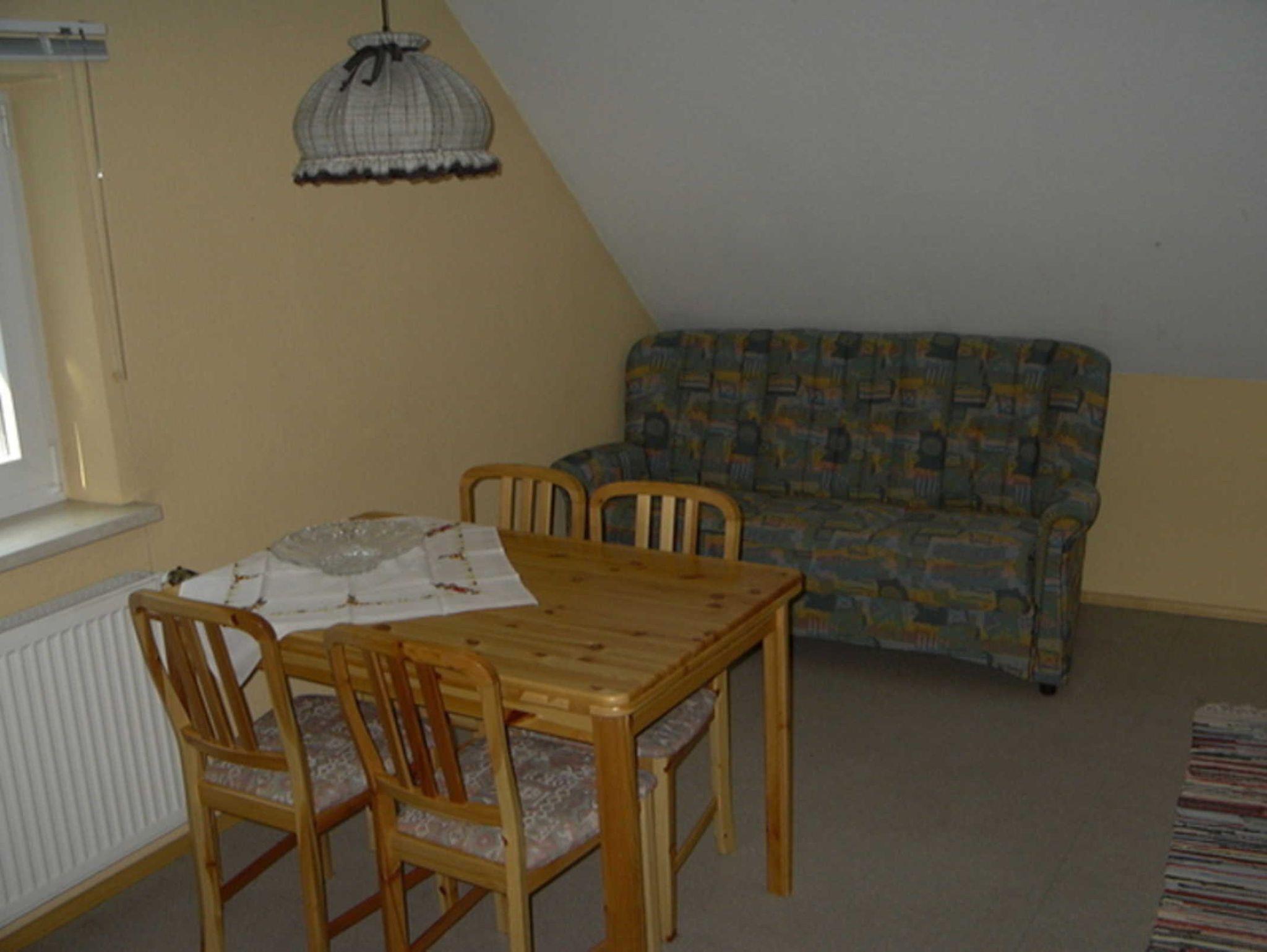 Die Ferienwohnung ist für 1 bis 4 Personen geeignet und ca. 35 m² groß. Sie hat einen separaten Eingang. Im Wohn-Schlafzimmer gibt es ein Doppelbett, eine Essecke und Sofa. Die Küchenzeile ist mit einem 2-Plattenherd, Mikrowelle, Toaster, Wasserkocher und Kaffeemaschine ausgestattet. Zusätzlich gibt es: Sat-TV, DVD-Player, ein Schlafzimmer mit 2 Einzelbetten und ein Duschbad. Die Nichtraucherwohnung befindet sich im 1.OG.
