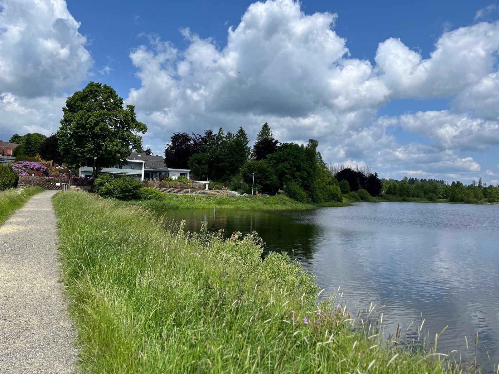 Das Herzstück unserer Wohnung ist das Teichzimmer, ein lichtdurchflutetes Wohnzimmer mit einem atemberaubenden Blick auf den Sumpfteich und die umliegende Natur. Dieses Panorama ist mehr als nur ein Ausblick – es ist ein ständig wandelndes Naturkunstwerk. Je nach Wetterlage und Tageszeit taucht die Landschaft in neue Farben, Formen und Stimmungen ein. Wir wissen es schon jetzt: Sie werden staunen – und das immer wieder aufs Neue!