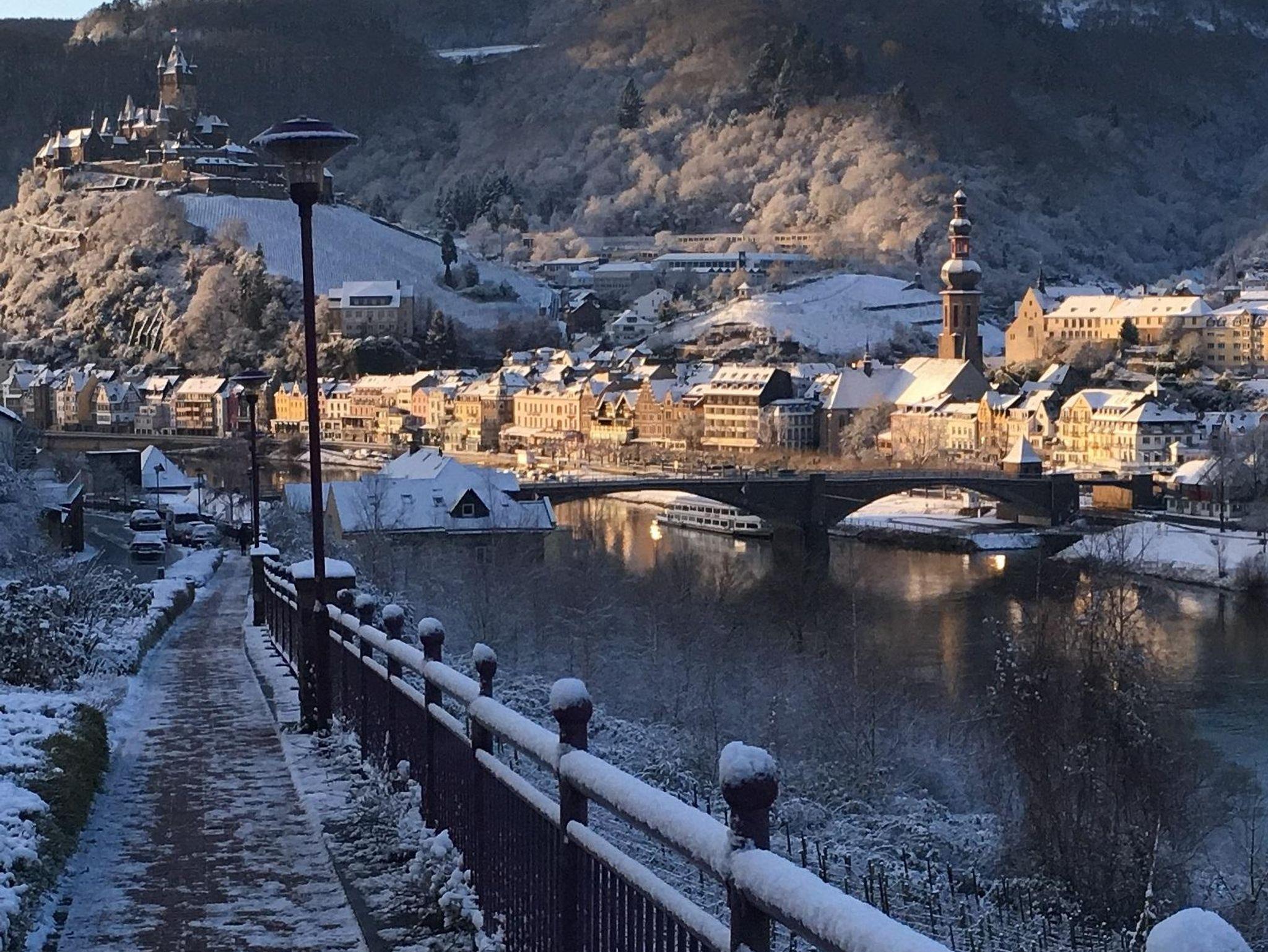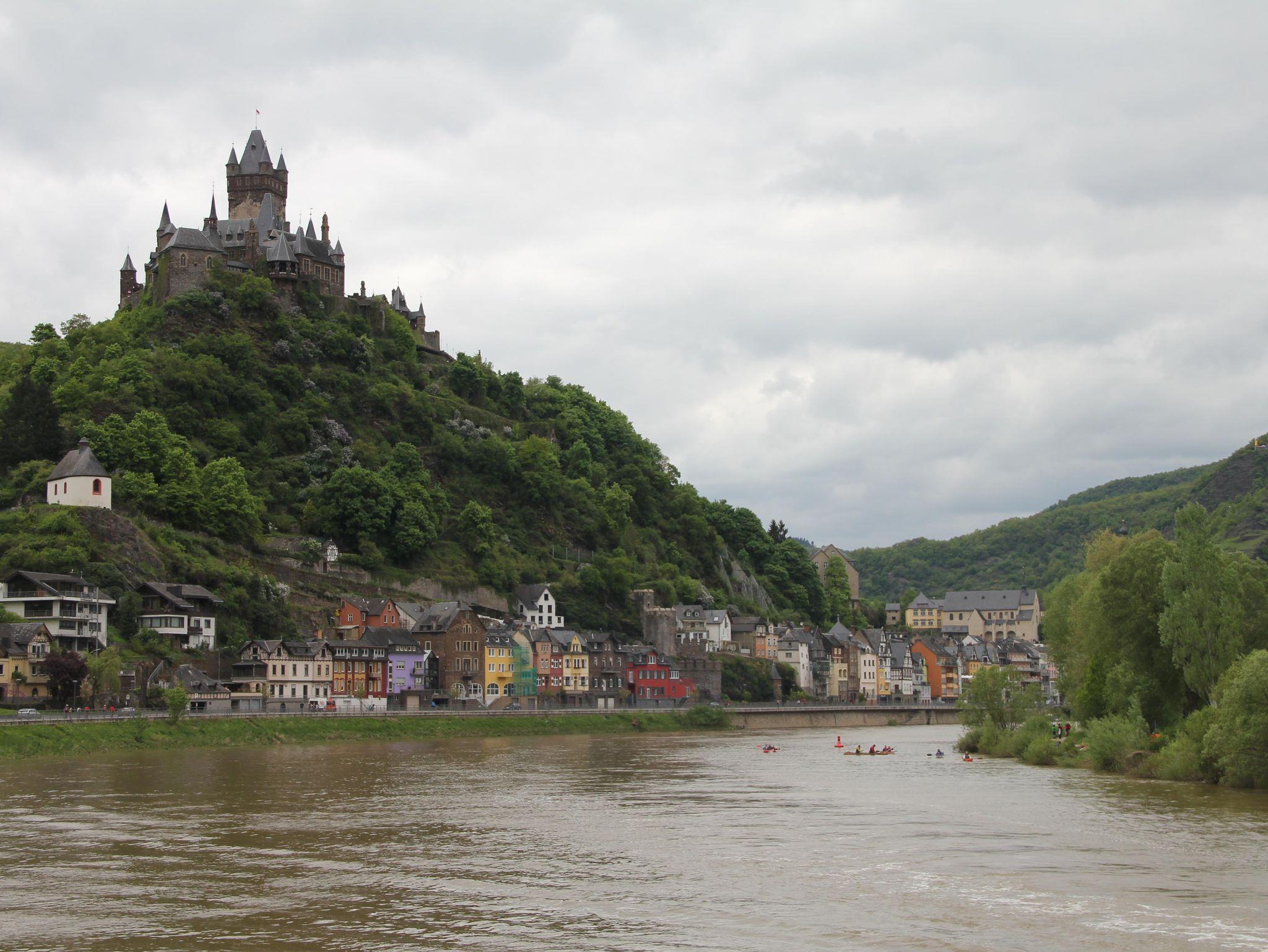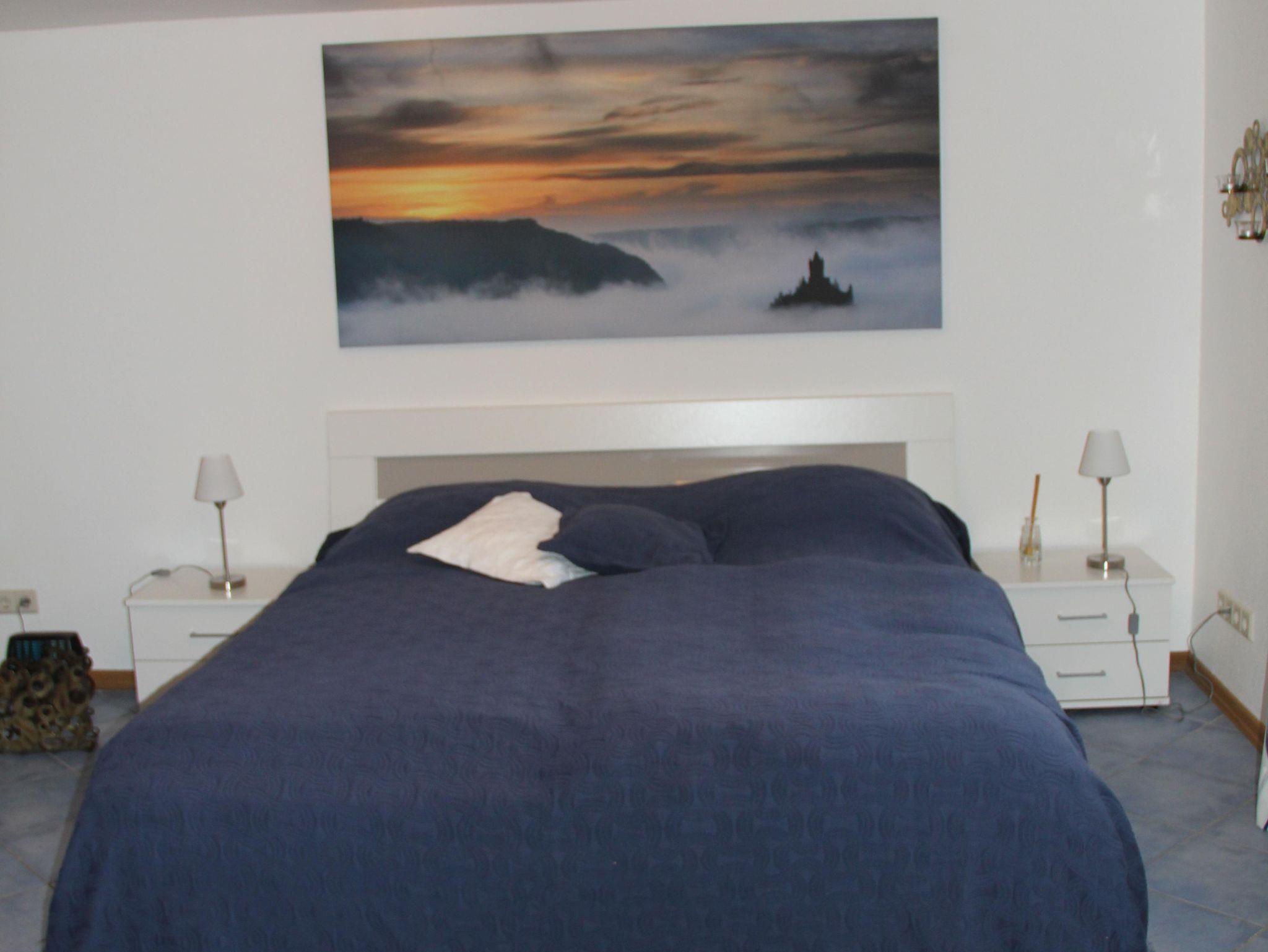 Das Ferienhaus befindet sich in Hanglage mit Blick auf die Mosel und die Stadt Cochem mit ihrer Reichsburg. Hinter dem Haus erstreckt sich ein großer Garten mit Wiese, der komplett eingezäunt ist. Eine große Terasse mit Douglasiendielen bietet Platz für alle Bewohner; neben einem Esstisch mit Stühlen gibt es auch Liegestühle für Sonnenanbeter. Das Haus selbst hat 3 Doppel- und ein Einzelzimmer, ist also maximal für 7 Personen ausgelegt. Im Obergeschoss befinden sich zwei Doppel- und ein Einzelzimmer, die Zimmer sind nach Themen eingerichtet: das römische Zimmer hat Burgblick, das Mädchenzimmer ebenfalls, das afrikanische Zimmer hat Fenster zur Mosel hin. Ein Schranktresor ist vorhanden. Im Obergeschoss befindet sich ein Bad mit Badewanne und Dusche. Bettwäsche, Handtücher und Bademäntel werden bereitgestellt. In der Wohnetage findet sich eine gut ausgestattete Küche mit Spülmaschine, Ceranfeld, Backofen, Kaffeemaschine, Wasserkocher und Toaster sowie diversen Küchenutensilien. Für kleinere Gruppen eignet sich die Küche auch, um das Frühstück einzunehmen, da es dort einen Bartisch mit vier bequemen Barhockern gibt. Für größere Gruppen bietet sich der große Esszimmertisch mit passender Bestuhlung und Sitzbank an. Im Esszimmer gibt es auch diverse Schränke und Anrichten, zum Teil Antiquitäten, zum Teil Möbel im Kolonialstil. Eine gemütliche Polstergarnitur komplettiert die Einrichtung im Wohnzimmer. Musikanlage, Kabel-TV und WLAN-Anschluss stehen kostenlos zur Verfügung. Ein kleiner Balkon mit Moselblick bietet in den Sommermonaten bis zum Nachmittag ein schattiges Plätzchen. Für Sonnenhungrige gibt es eine große Terasse mit Tisch und sechs Stühlen sowie zwei Liegestühlen – alle mit entsprechenden Auflagen. Im Untergeschoss, das aufgrund der Hanglage zur Mosel hin ebenerdig ist, befinden sich ein modern eingerichtetes Doppelzimmer sowie ein zweites Bad mit Dusche und Badewanne mit Whirlpoolfunktion. Für die Wintermonate wurde eine Fußbodenheizung eingebaut. Der Wirtschaftsraum hinter den Wohnräumen ist mit einer Waschmaschine und einem Trockner ausgestattet, die den Gästen ebenfalls kostenfrei zur Verfügung stehen.