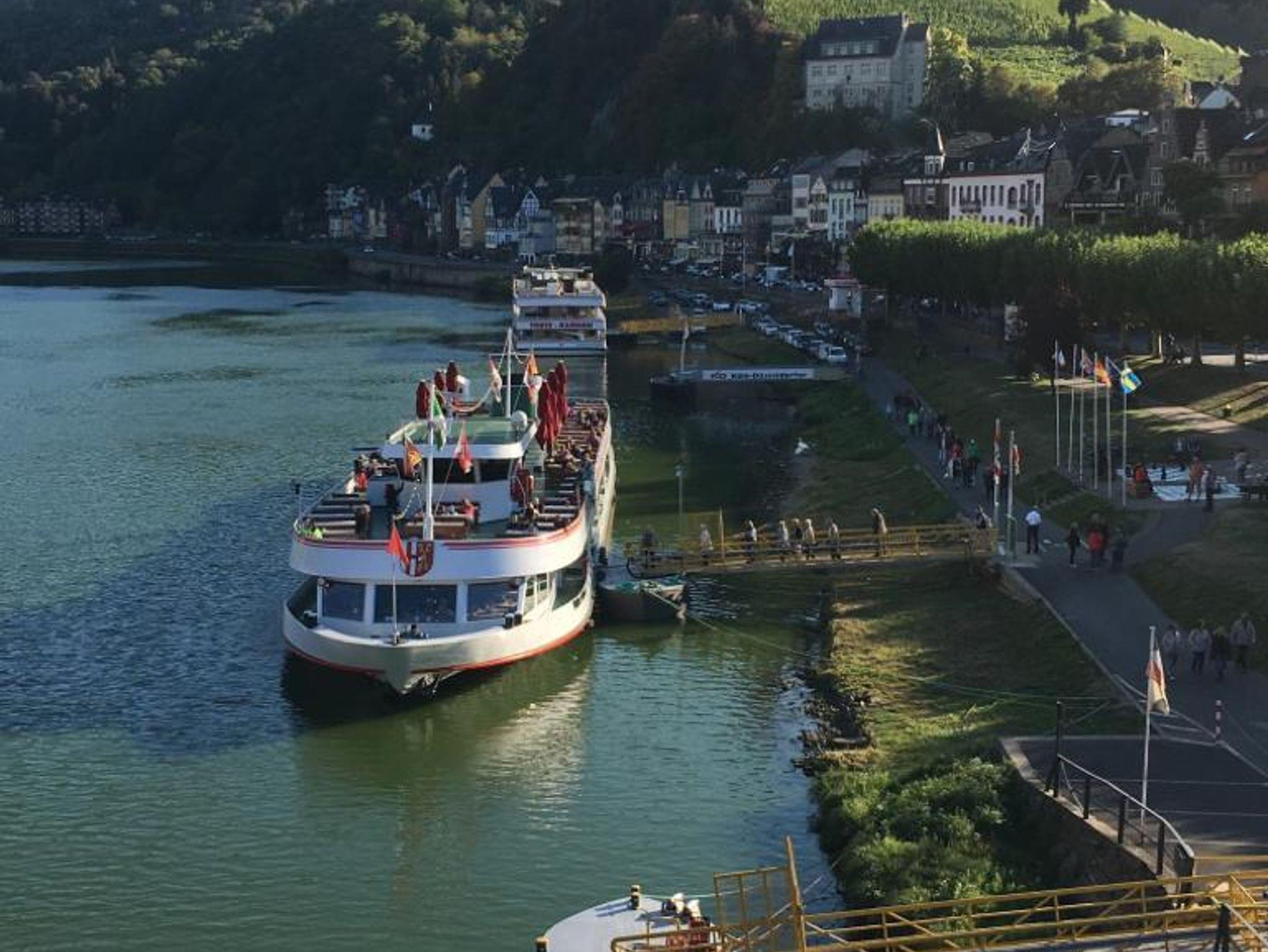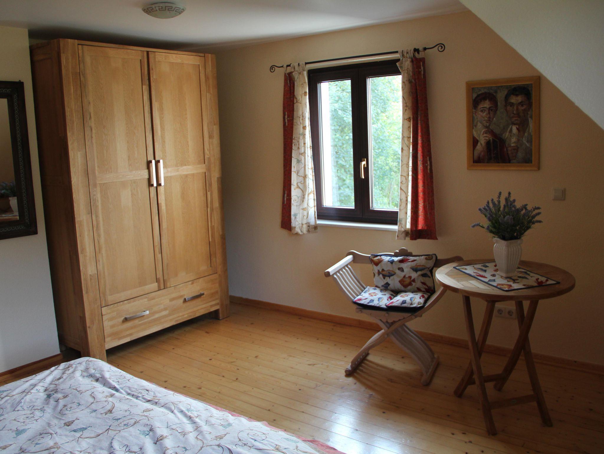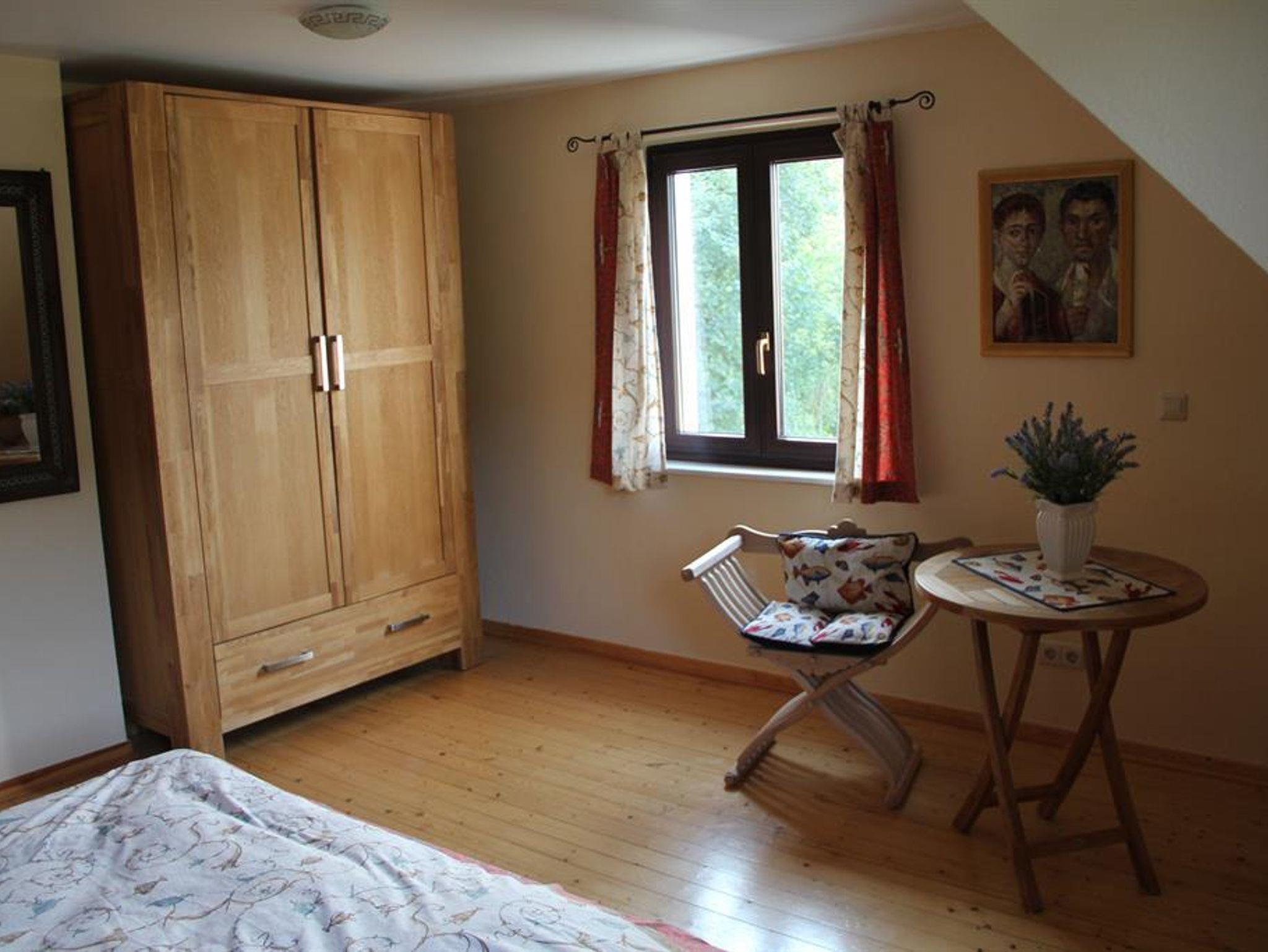 Das Ferienhaus befindet sich in Hanglage mit Blick auf die Mosel und die Stadt Cochem mit ihrer Reichsburg. Hinter dem Haus erstreckt sich ein großer Garten mit Wiese, der komplett eingezäunt ist. Eine große Terasse mit Douglasiendielen bietet Platz für alle Bewohner; neben einem Esstisch mit Stühlen gibt es auch Liegestühle für Sonnenanbeter. Das Haus selbst hat 3 Doppel- und ein Einzelzimmer, ist also maximal für 7 Personen ausgelegt. Im Obergeschoss befinden sich zwei Doppel- und ein Einzelzimmer, die Zimmer sind nach Themen eingerichtet: das römische Zimmer hat Burgblick, das Mädchenzimmer ebenfalls, das afrikanische Zimmer hat Fenster zur Mosel hin. Ein Schranktresor ist vorhanden. Im Obergeschoss befindet sich ein Bad mit Badewanne und Dusche. Bettwäsche, Handtücher und Bademäntel werden bereitgestellt. In der Wohnetage findet sich eine gut ausgestattete Küche mit Spülmaschine, Ceranfeld, Backofen, Kaffeemaschine, Wasserkocher und Toaster sowie diversen Küchenutensilien. Für kleinere Gruppen eignet sich die Küche auch, um das Frühstück einzunehmen, da es dort einen Bartisch mit vier bequemen Barhockern gibt. Für größere Gruppen bietet sich der große Esszimmertisch mit passender Bestuhlung und Sitzbank an. Im Esszimmer gibt es auch diverse Schränke und Anrichten, zum Teil Antiquitäten, zum Teil Möbel im Kolonialstil. Eine gemütliche Polstergarnitur komplettiert die Einrichtung im Wohnzimmer. Musikanlage, Kabel-TV und WLAN-Anschluss stehen kostenlos zur Verfügung. Ein kleiner Balkon mit Moselblick bietet in den Sommermonaten bis zum Nachmittag ein schattiges Plätzchen. Für Sonnenhungrige gibt es eine große Terasse mit Tisch und sechs Stühlen sowie zwei Liegestühlen – alle mit entsprechenden Auflagen. Im Untergeschoss, das aufgrund der Hanglage zur Mosel hin ebenerdig ist, befinden sich ein modern eingerichtetes Doppelzimmer sowie ein zweites Bad mit Dusche und Badewanne mit Whirlpoolfunktion. Für die Wintermonate wurde eine Fußbodenheizung eingebaut. Der Wirtschaftsraum hinter den Wohnräumen ist mit einer Waschmaschine und einem Trockner ausgestattet, die den Gästen ebenfalls kostenfrei zur Verfügung stehen.