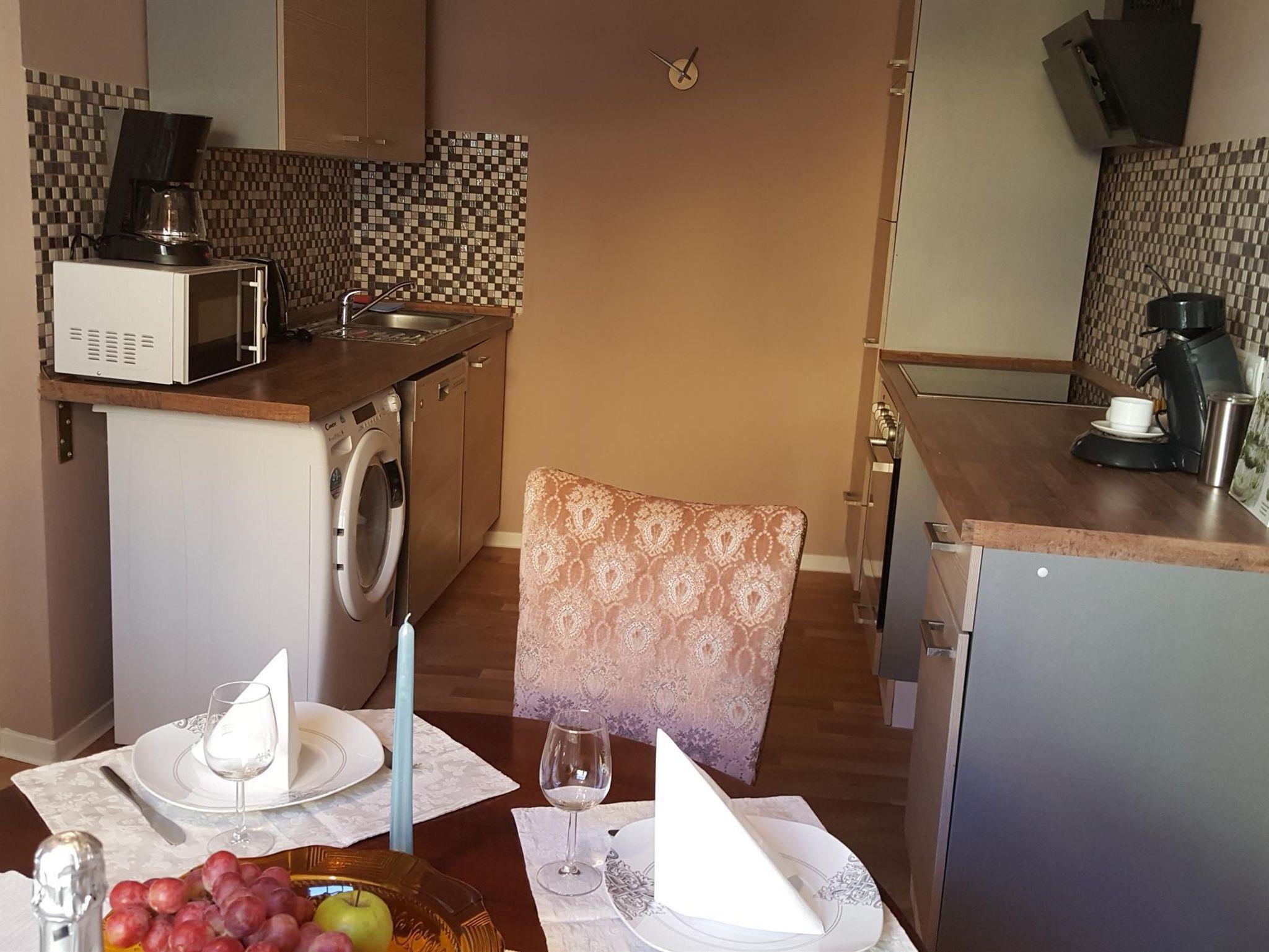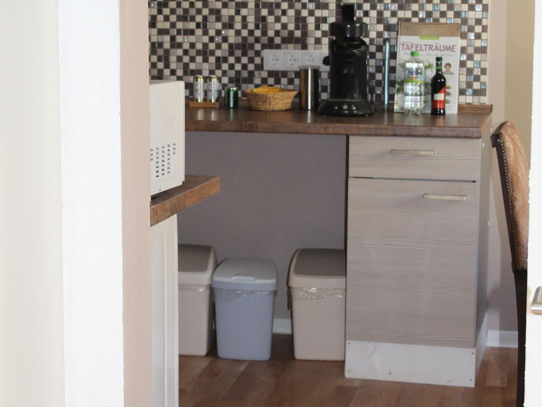 Dieses Fachwerkferienhaus besteht aus 2 Stockwerken und ist in warmen Farben eingerichtet und geschmacksvoll ausgestattet. Er verfügt über zwei Schlafzimmer und einer Wohnzimmer mit Schlafcouch und einem Kabel-TV. Das Bad ist mit einer Dusche ausgestattet. Im Erdgeschoß finden Sie eine vollausgestattete Küche, Gäste-WC und Garderobe. Dort finden Sie auch alle notwendige Reinigungs- und Desinfiktionsmitteln. In der Küche mit einer Mikrowelle, Backoffen, Kühlschrank, Wasserkocher, Kaffeemaschine und Kochplatte können Sie Ihre eigenen Mahlzeiten zubereiten.