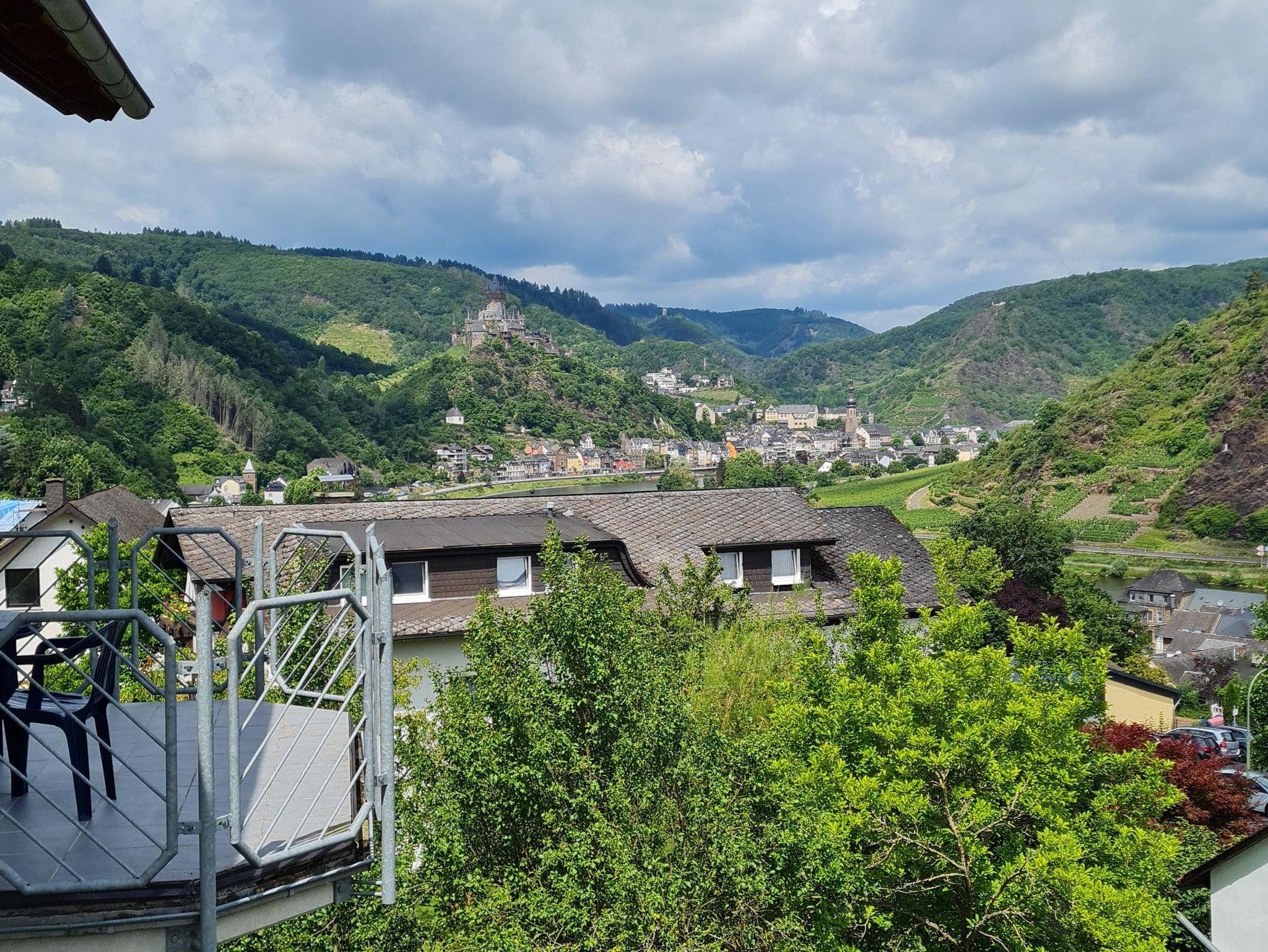 12 komfortable ***Ferienwohnungen, Wohn-Essraum mit komplett ausgestatteten Küchenzeilen (mit Spülmaschine), 1 , 2 oder 3 separate Schlafzimmer. Ruhige, idyllische Lage mit herrlichem Panoramablick auf Cochem und die Mosellandschaft, aber trotzdem stadtnah und optimaler Ausgangspunkt für Wanderungen im nahe gelegenen Wald. Freizeitraum mit Tischkicker, Billard und Tischtennis sowie eine Sauna.