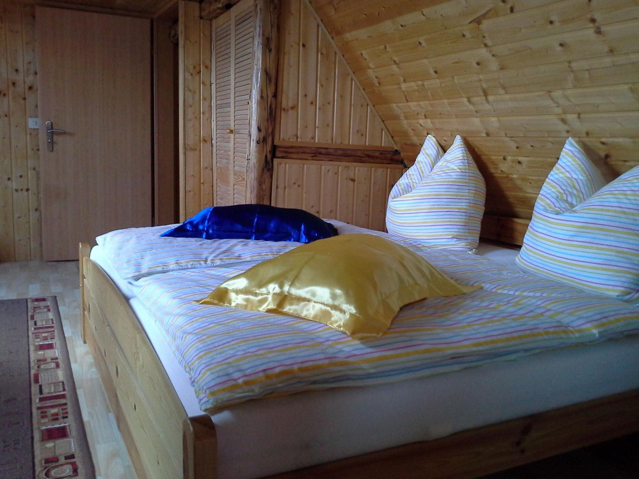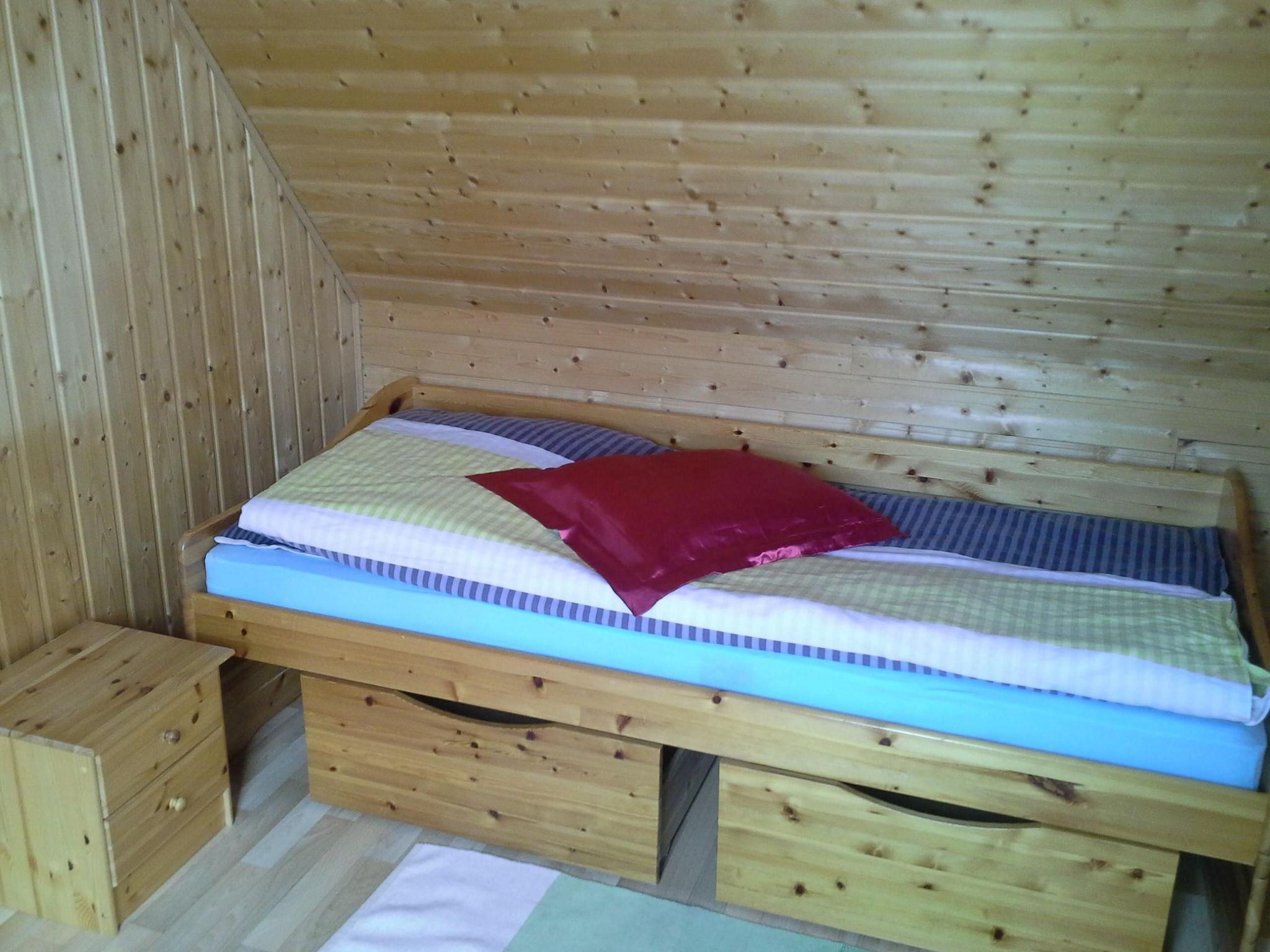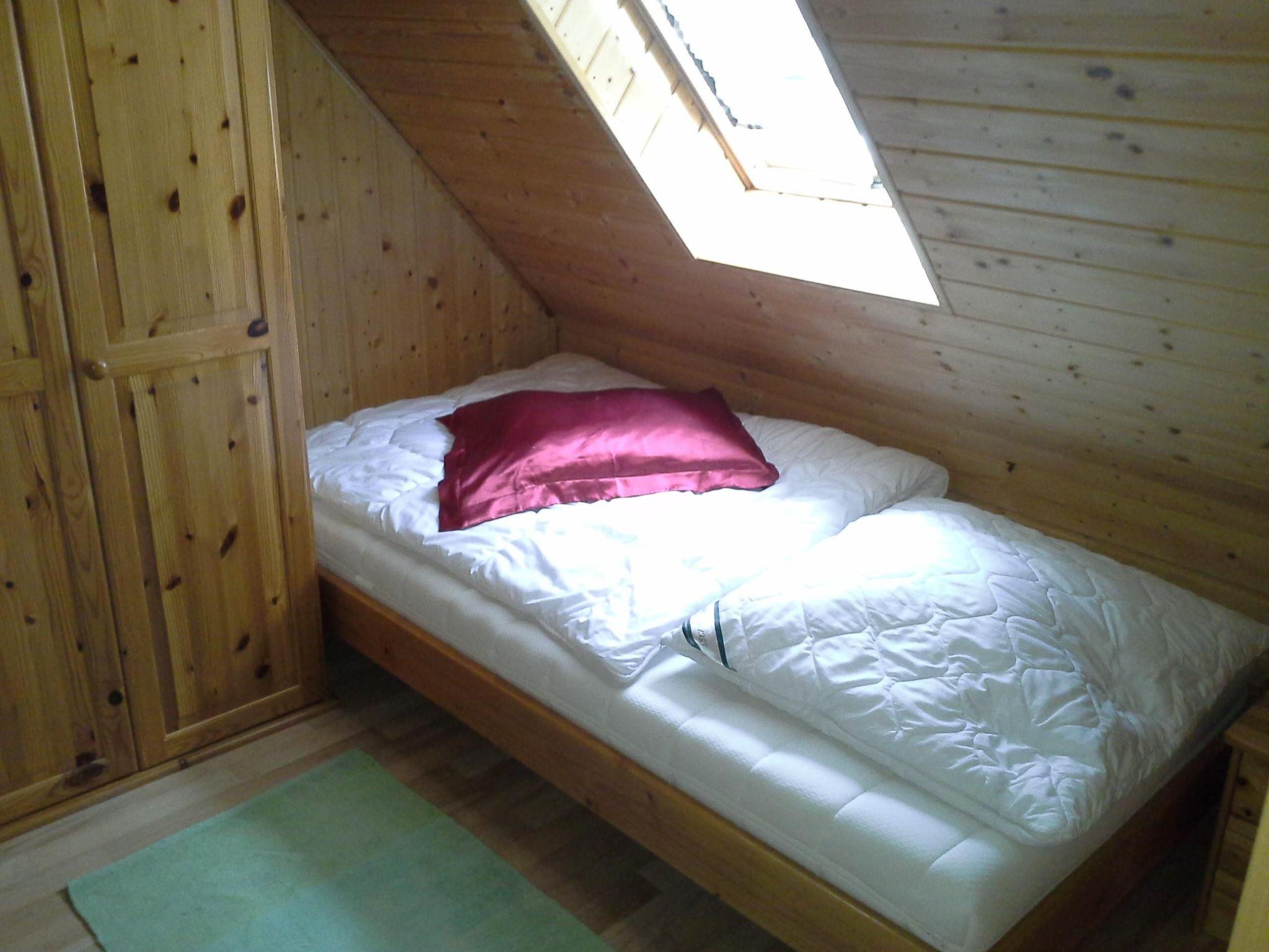 The house consists of a ground floor and an attic. The ground floor consists of the living area with wood-burning stove, TV, DVD video and double sofa bed, a dining area with corner bench, two chairs and pull-out table, a fully equipped fitted kitchen with cooker, dishwasher, microwave, coffee machine, kettle, toaster and stereo system, as well as a bathroom with shower, washing machine and toilet. There are two bedrooms on the upper floor, the first of which has a double bed and a cot. There is also a built-in wardrobe and cupboard. In the second bedroom there are two children's beds, a wardrobe and a play shelf. The entire house is equipped with central heating.