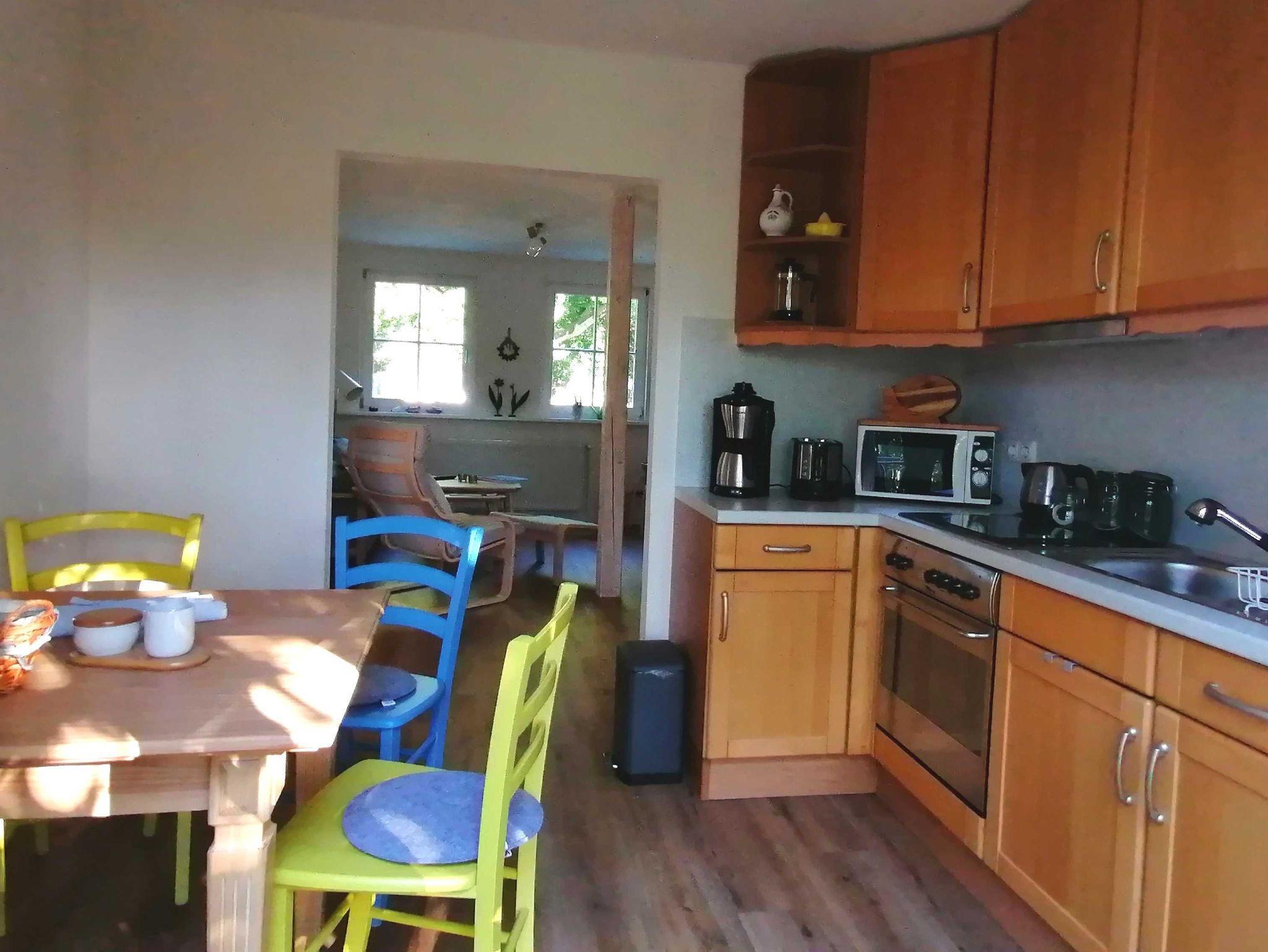 Die Küche ist mit Herd/Backofen, Kühlgefrierkombination, Mikrowelle, Kaffeemaschine ausgestattet.