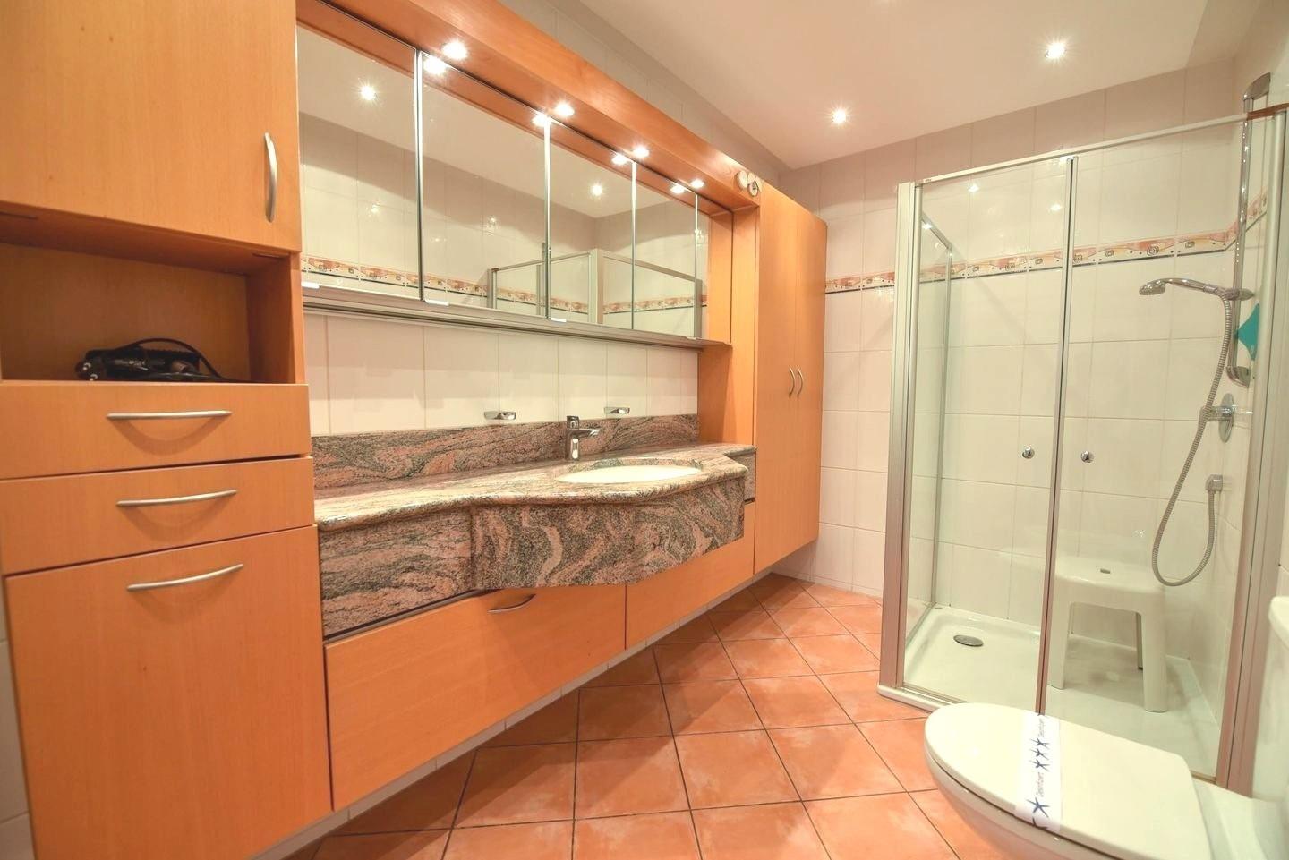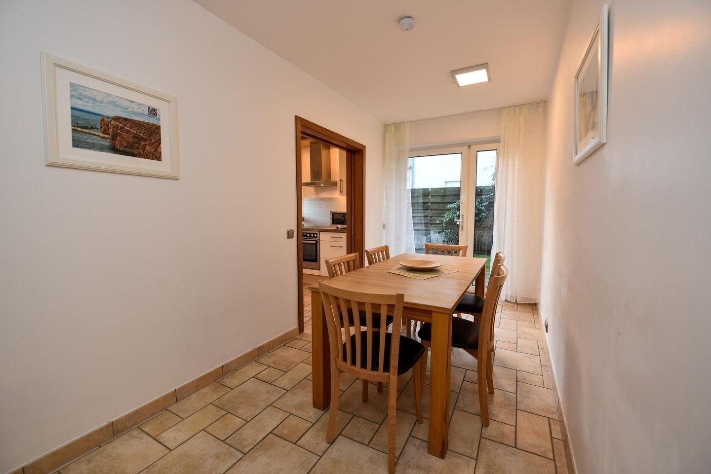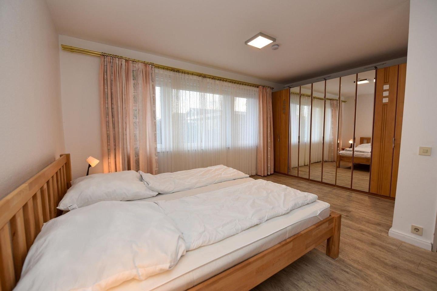Große 4 Zimmer Wohnung mit 2 Schlafzimmern. In den Schlafzimmern befinden sich jeweils ein Doppelbett und Wohnzimmer befindet sich zusätzlich ein Doppel-Schrankbett. Die separate Einbauküche mit eigenem Esszimmer ist voll ausgestattet und verfügt u.a. über Spülmaschine, Mikrowelle, Backofen , Kühlschrank mit Gefrierfach. Vom Esszimmer gelangen Sie direkt auf die Terrasse und den Garten. Das Badezimmer hat eine tiefe Dusche und ein WC. Die Wohnung hat zudem ein separates Gäste-WC.