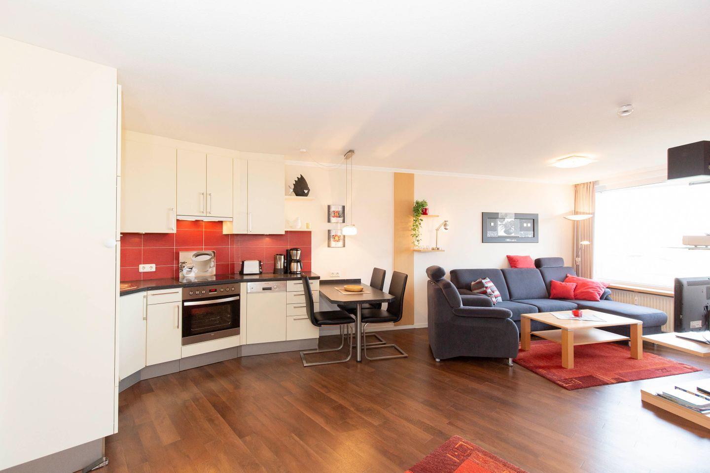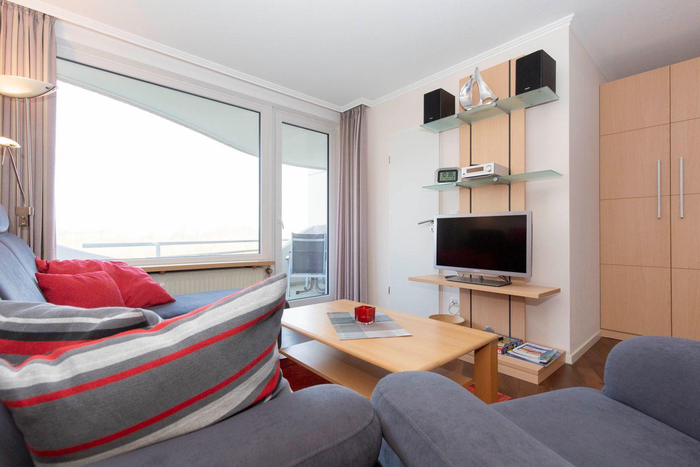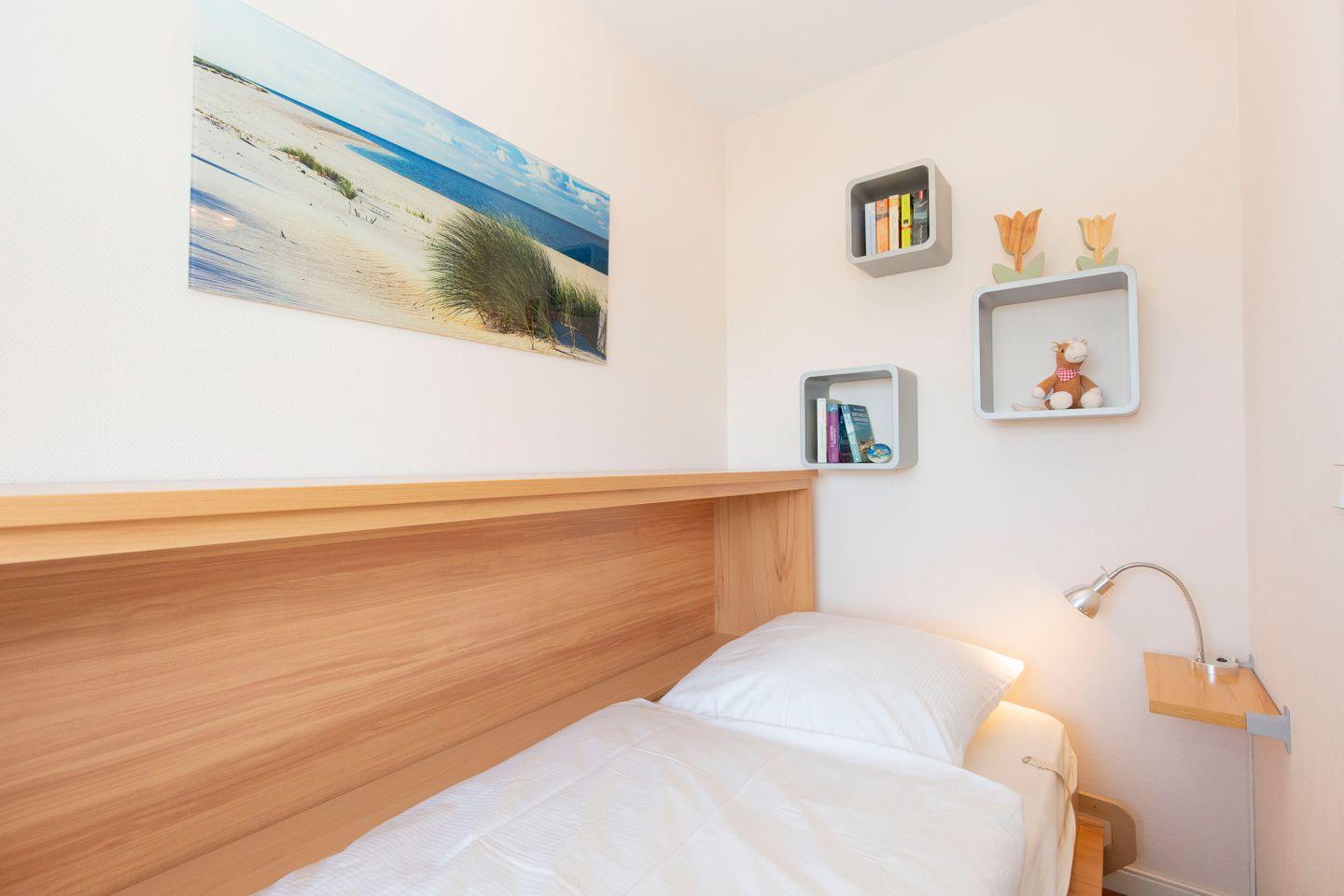 Haus "Lord Nelson", Typ 2, App.-Nr. "206", bis 3 Personen, 2. Etage, ca. 40 qm Wohnungsgröße, Westseite (ohne Meerblick/Richtung Neuwerk), Balkon, Wohnbereich mit Schrankbett, sep. kleines Kinderzimmer mit Einzelbett, Dusche/WC, Küchenzeile mit 4-Platten-Ceranfeld, Backofen, Geschirrspüler und Mikrowelle, Kabel-TV, kostenl. WLAN-Zugang im App., Tiefgaragenstellplatz, Nichtraucherappartement, Haustiere sind nicht gestattet, Strandkorb im Sommer 2025