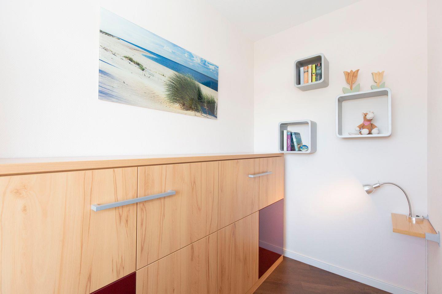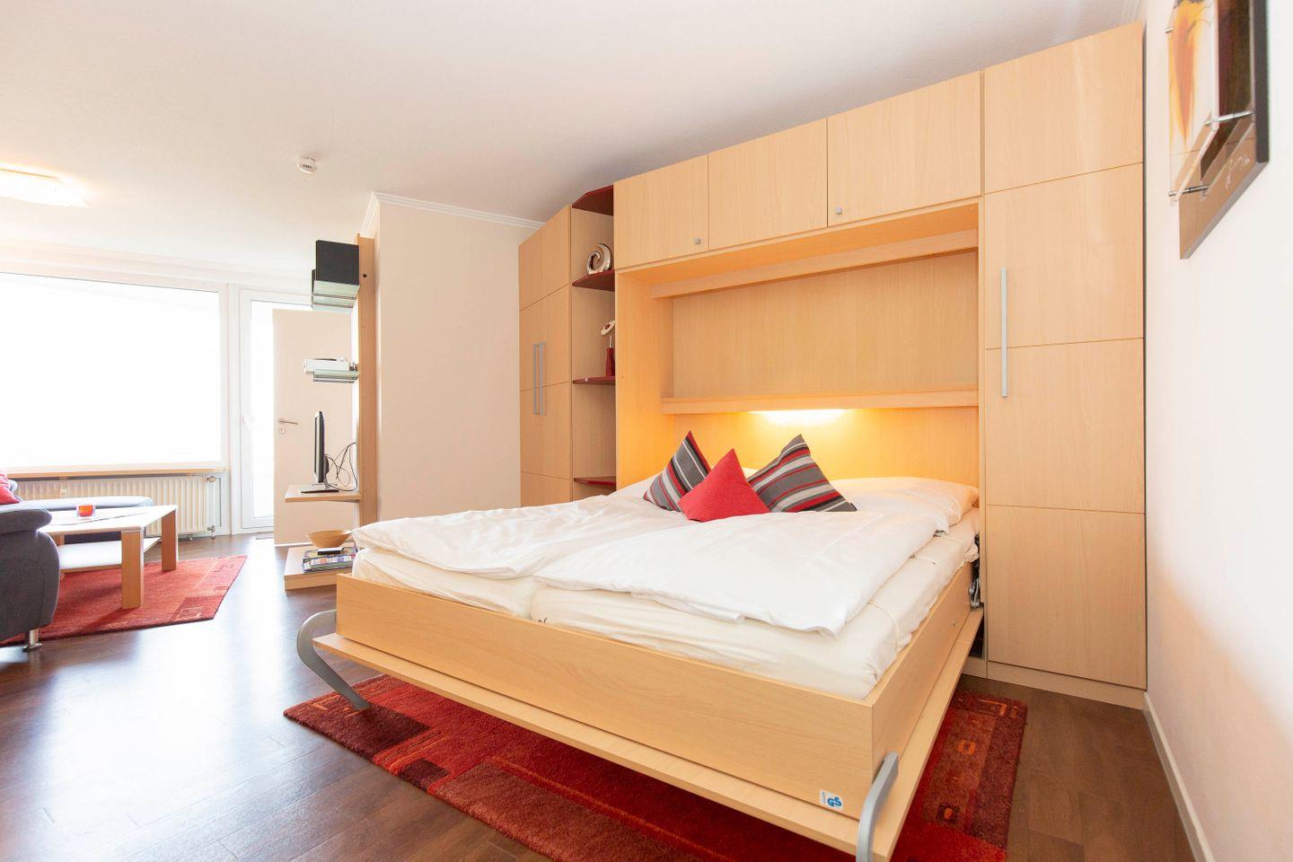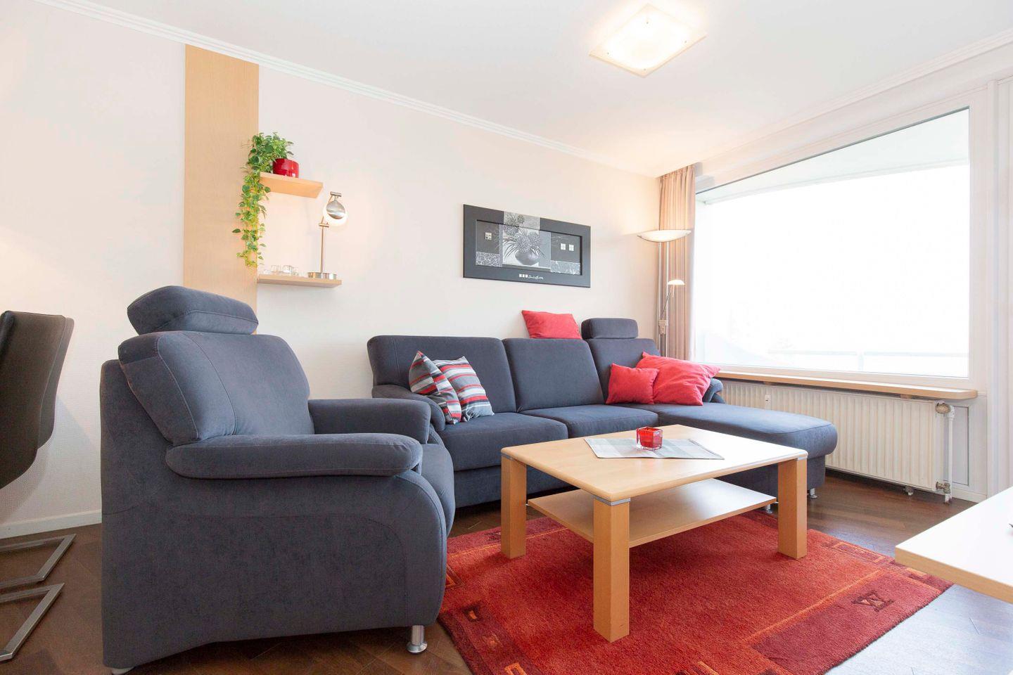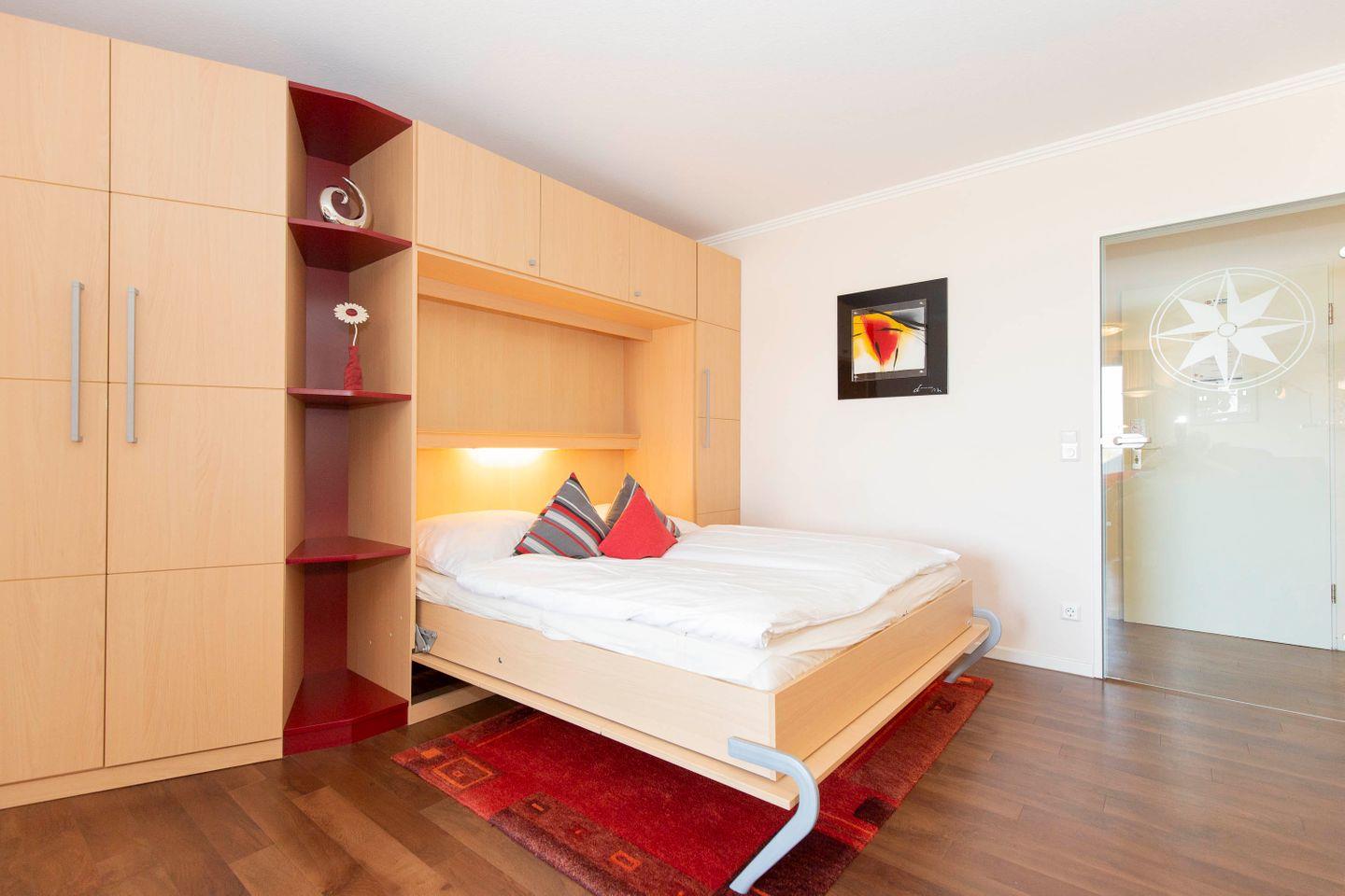 Haus "Lord Nelson", Typ 2, App.-Nr. "206", bis 3 Personen, 2. Etage, ca. 40 qm Wohnungsgröße, Westseite (ohne Meerblick/Richtung Neuwerk), Balkon, Wohnbereich mit Schrankbett, sep. kleines Kinderzimmer mit Einzelbett, Dusche/WC, Küchenzeile mit 4-Platten-Ceranfeld, Backofen, Geschirrspüler und Mikrowelle, Kabel-TV, kostenl. WLAN-Zugang im App., Tiefgaragenstellplatz, Nichtraucherappartement, Haustiere sind nicht gestattet, Strandkorb im Sommer 2025