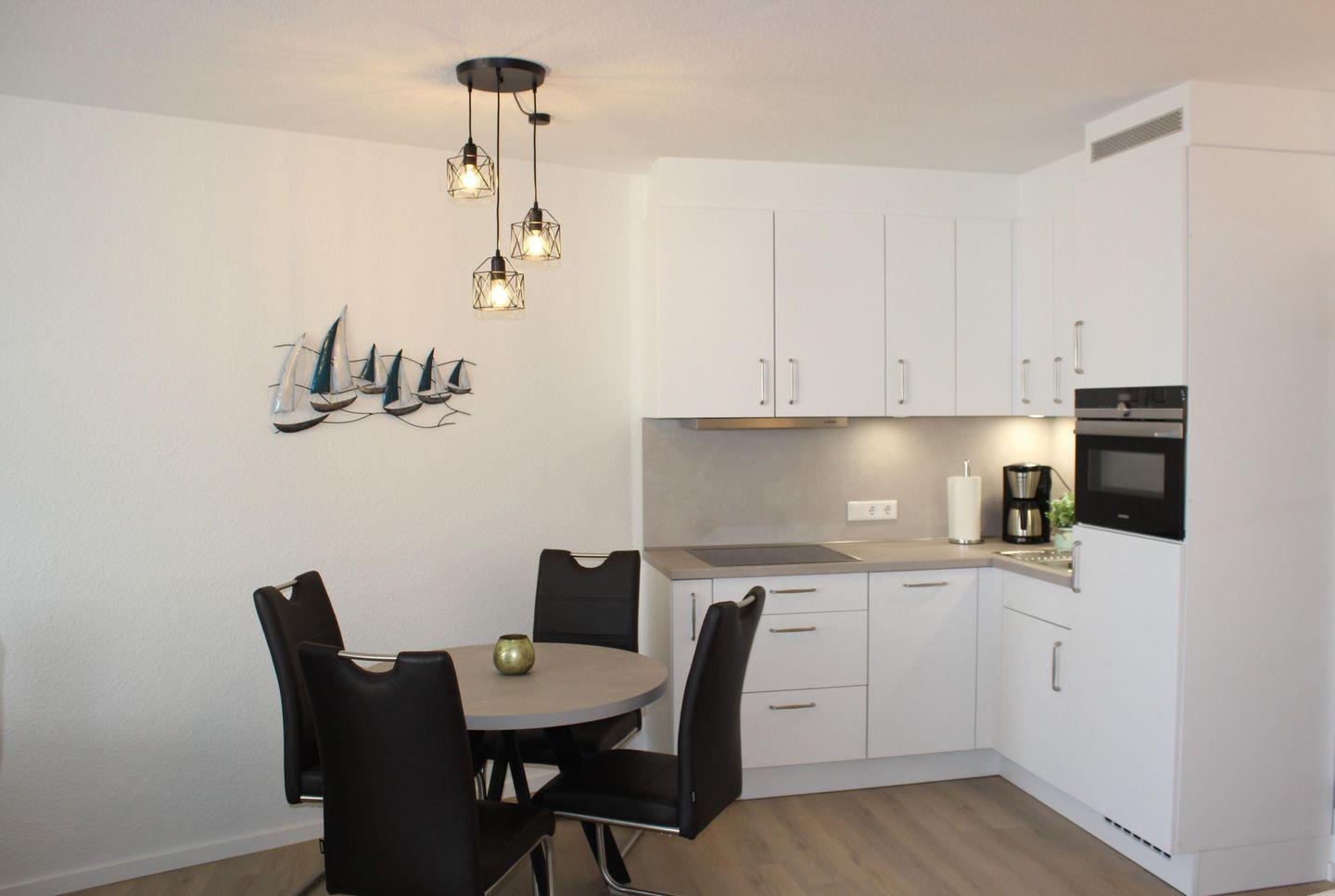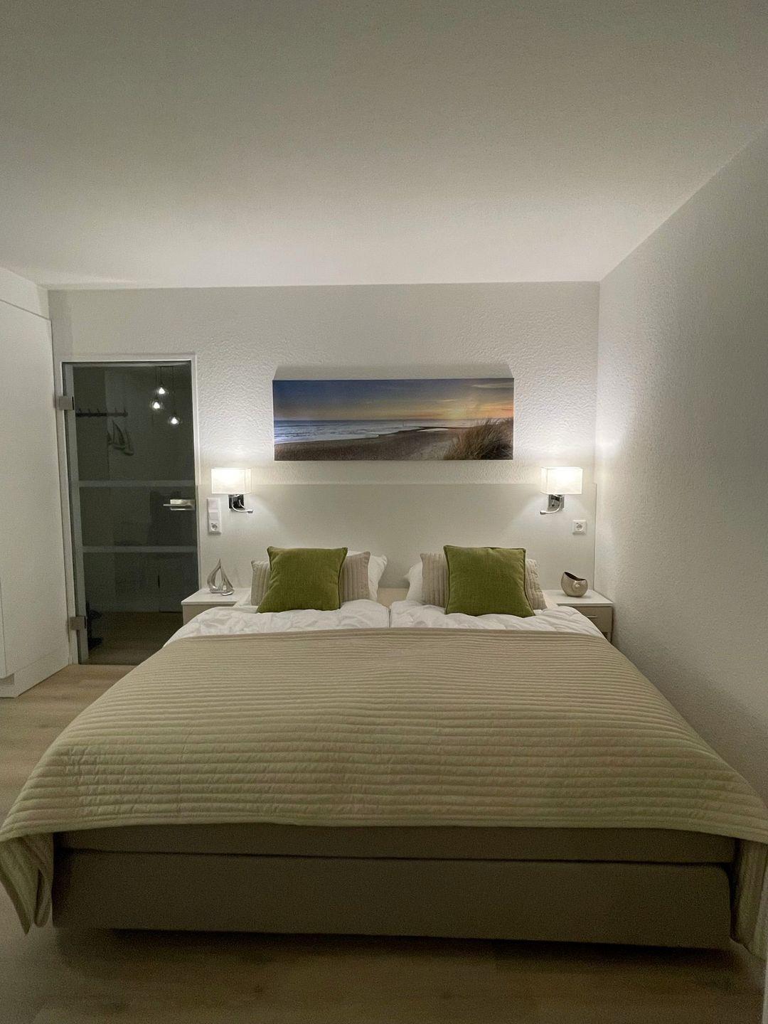 Farblich herrschen im Appartement warme Grau-und Grüntöne. Das Farbkonzept kreiert ein stimmiges Ambiente. Neben einer modernen Möblierung punktet die Wohnung vor allem durch seine Top-Lage an der Nordsee. Von hier aus erreichen Sie den nahegelegenen Strand in wenigen Minuten, ein Bäcker und Einkaufmöglichkeiten sind ebenfalls nicht weit entfernt. Zu Fuß können Sie außerdem das Wahrzeichen Cuxhavens, die Kugelbake, bei einem Spaziergang besichtigen.