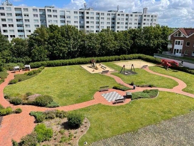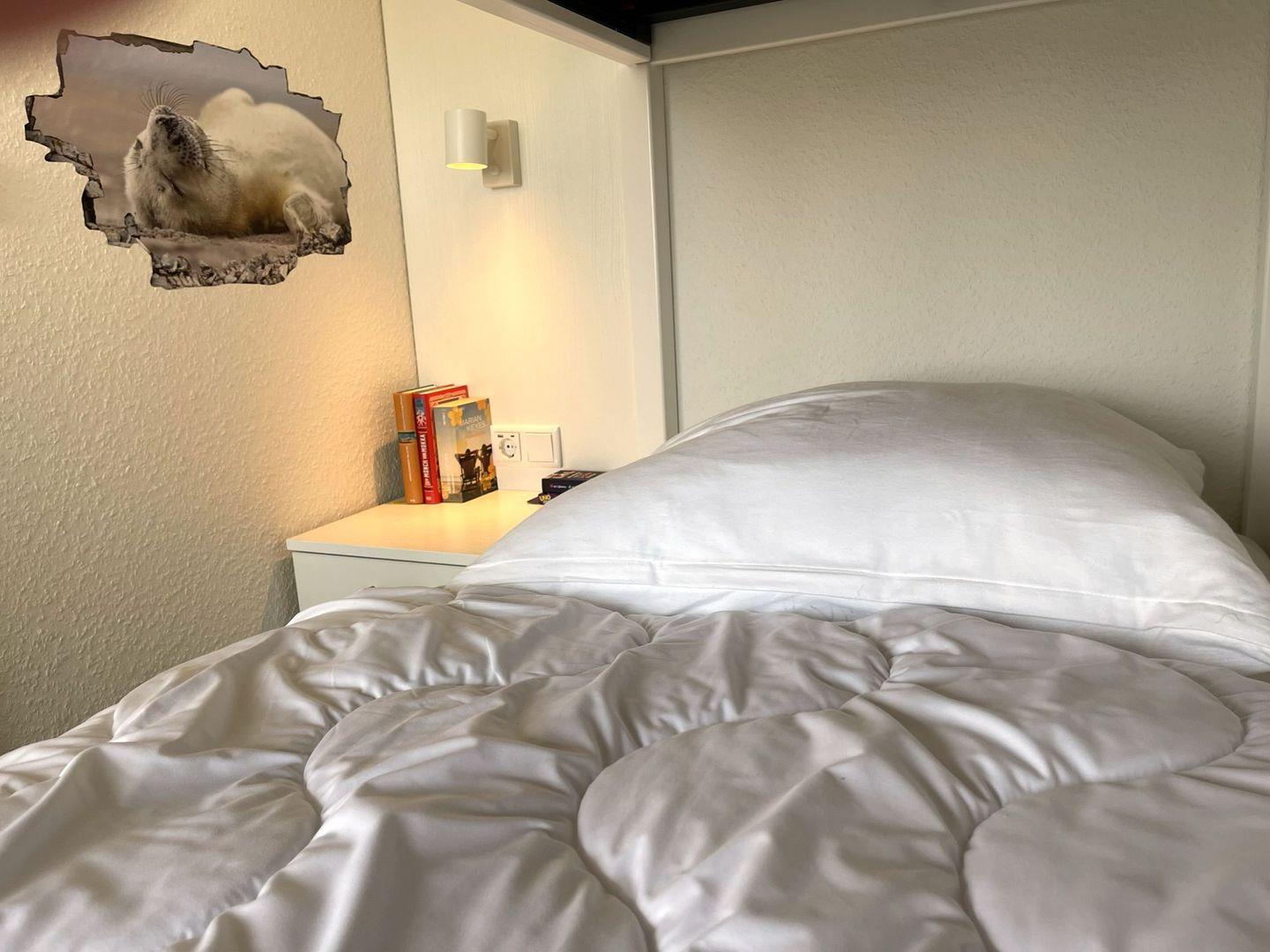 Haus "Lord Nelson", Typ 2, App.-Nr. "414", bis 4 Personen, 4. Etage, ca. 40 qm Wohnungsgröße, Ostseite (eingeschränkter Meerblick/Richtung Elbe), Balkon, Wohnbereich mit Doppelbett (durchgehende Matratze 180x200), separates kleines Schlafzimmer mit Etagenbett, Dusche/WC, Küchenzeile mit integriertem Backofen, Kabel-TV, kostenl. WLAN-Zugang im App., Tiefgaragenstellplatz, Strandkorb im Sommer 2026, Nichtraucherappartement, keine Hunde erlaubt.
