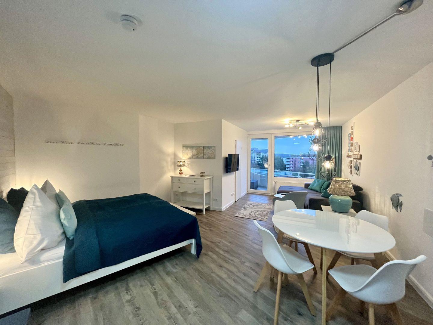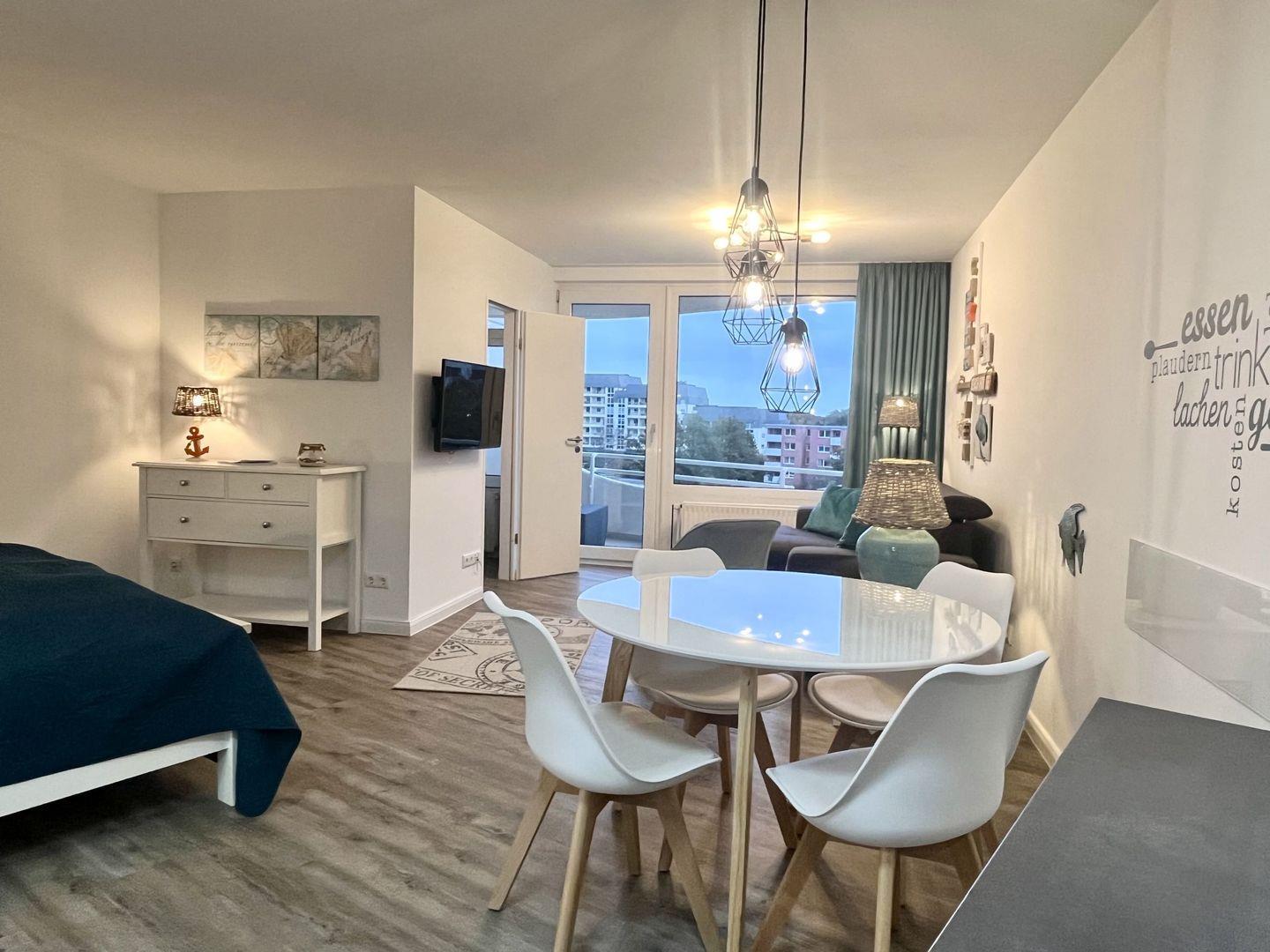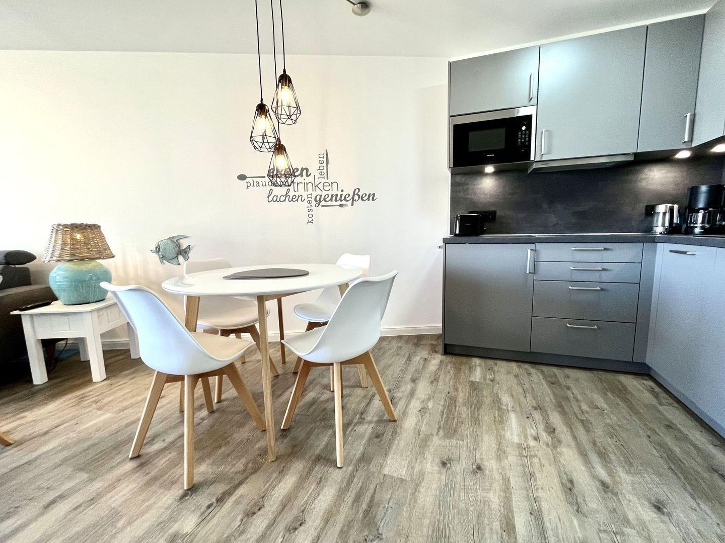 Haus "Lord Nelson", Typ 2, App.-Nr. 412, bis 4 Personen, ca 40 qm Größe, Weltschifffahrtsweg, seitlicher Meerblick Richtung Elbe, Wohnbereich mit Doppelbett, Kinderzimmer mit Etagenbett, Dusche/WC, Küchenzeile mit Geschirrspüler, Mikrowelle, 4-Platten-Ceranfeld, Balkon, kostenloses W-LAN im App., Kabel-TV, mobiler Bluetooth Speaker, Nichtraucherwohnung, keine Haustiere erlaubt, Strandkorb im Sommer 2025, Tiefgaragenstellplatz.