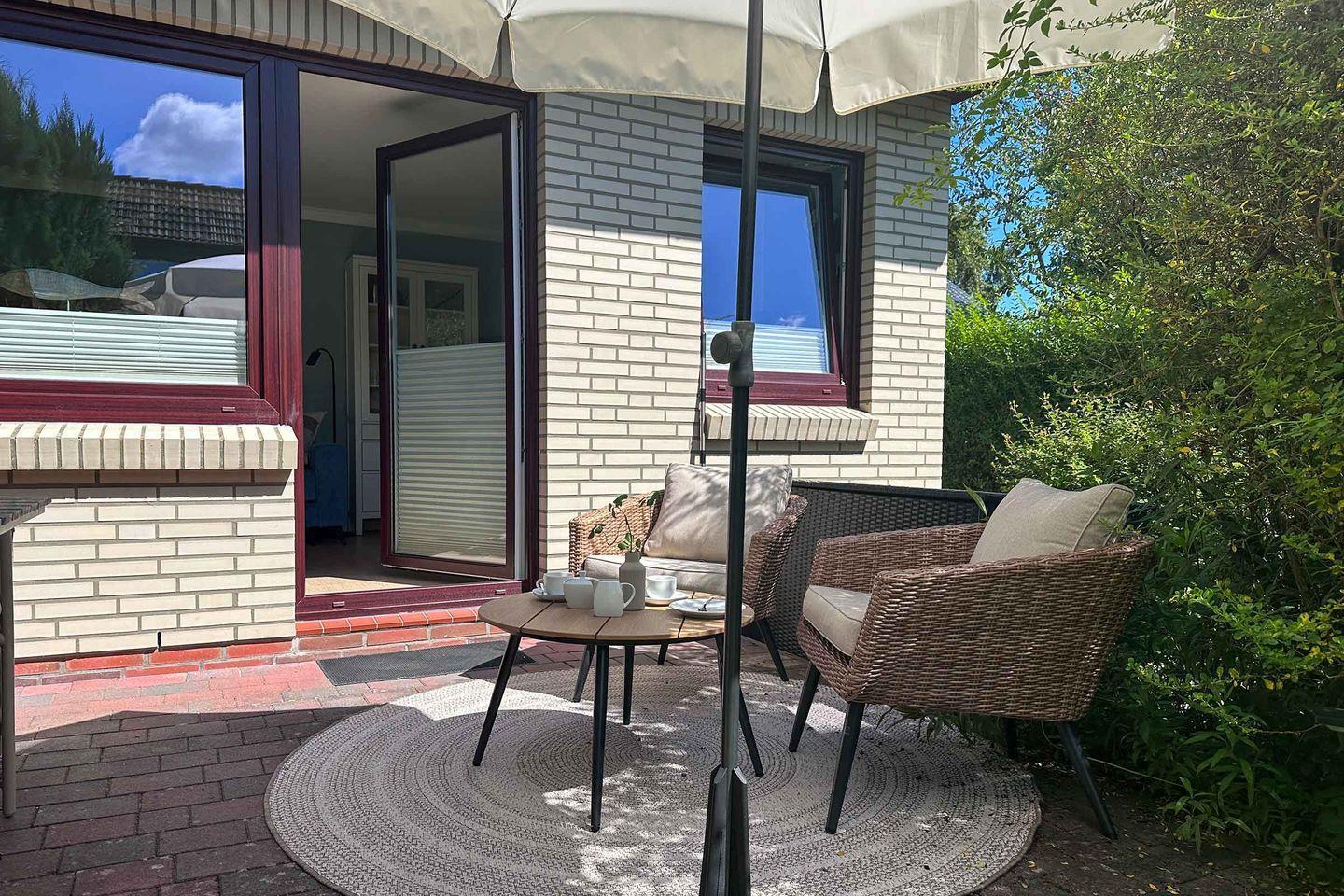 Die Diekhus Ferienwohnung 1 (DH01) bietet Ihnen außerdem eine eigene Terrasse – der ideale Ort, um Ihre Morgensonne beim Frühstück oder Ihre Abendstunden beim Grillen im Garten zu genießen. Für den Grillabend stehen Ihnen Gartenmöbel und ein hochwertiger Holzkohle-Kugelgrill zur Verfügung. Die ruhige Lage auf einem abgeschlossenen Grundstück und Sichtschutz an allen Fenstern sorgt dafür, dass Sie Ihre Privatsphäre ungestört genießen können.