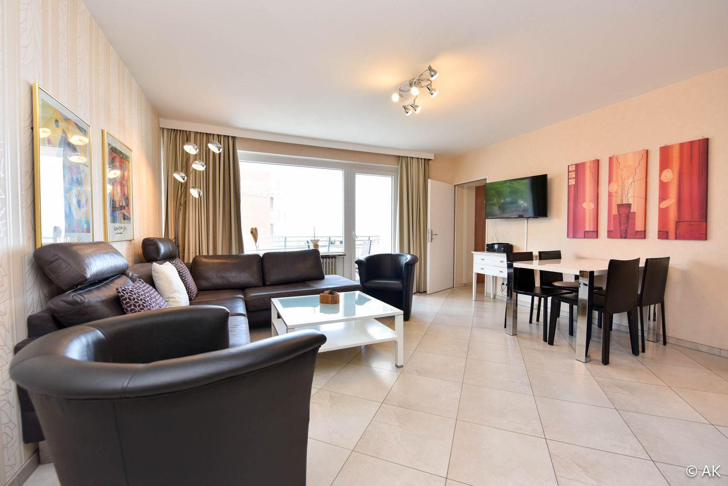 Komfortable Ferienwohnung für bis zu 4 Personen im Haus Hanseatic in Duhnen. Direkt hinter dem Deich gelegen, mit Westbalkon, Schwimmbad, Sauna, WLAN, PKW-Stellplatz und strandnahem Zugang.