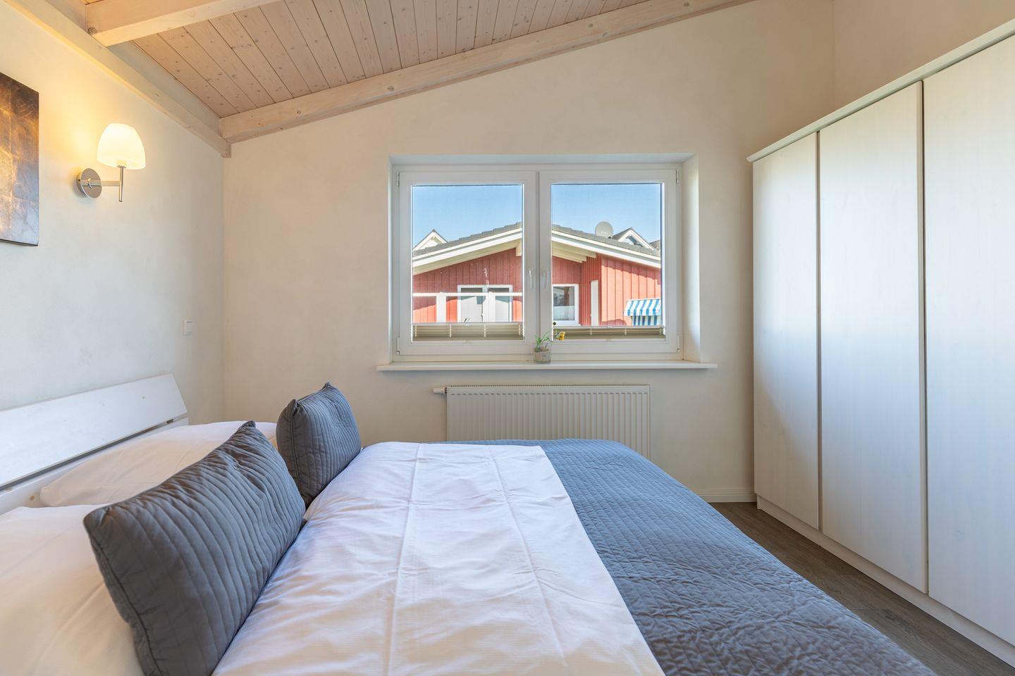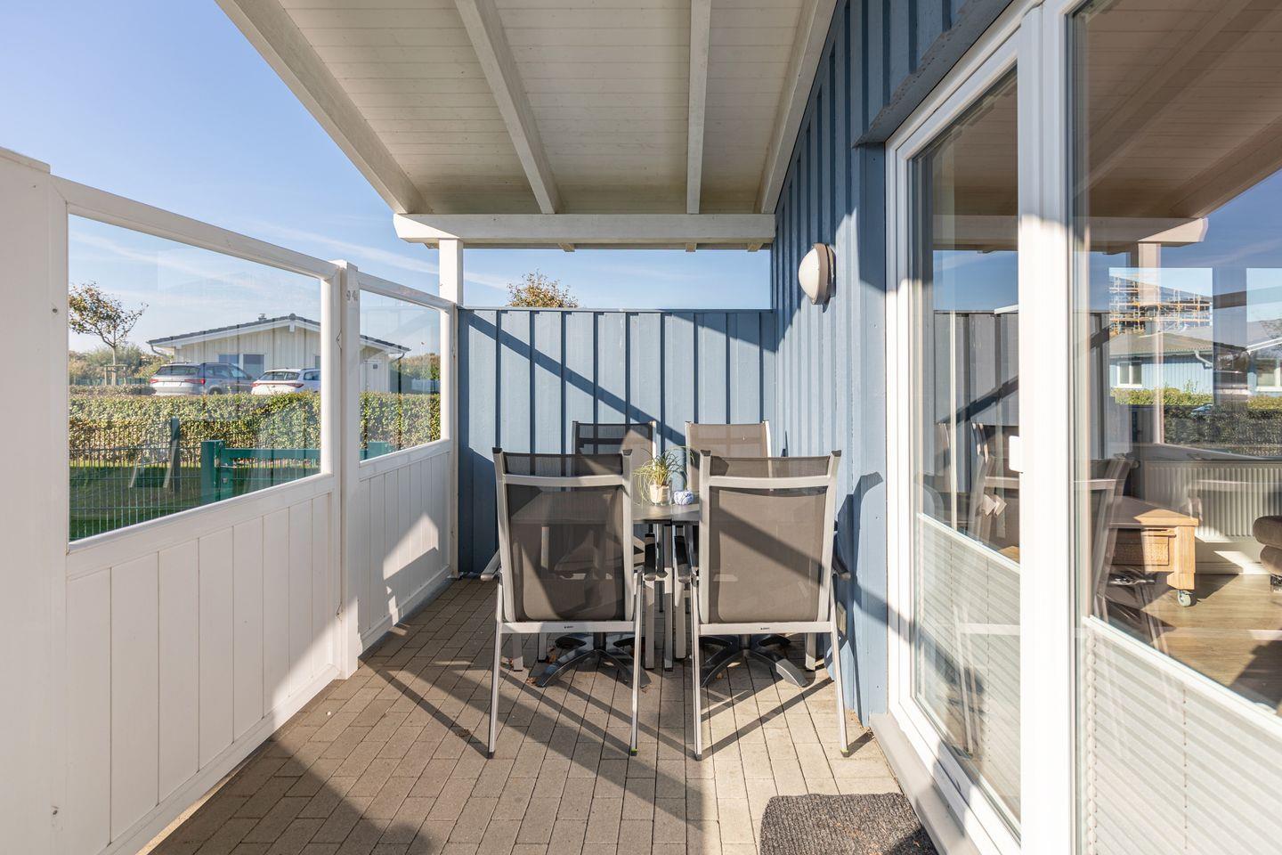 Das 85 qm große Ferienhaus ist modern und exklusiv im skandinavischen Charme eingerichtet. Die zwei Schlafzimmer mit jeweils einen Komfort-Doppelbett (180 × 200 cm) bieten Platz für bis zu 4 Personen. Das gemütliche Wohnzimmer ist mit SAT-TV und einem Blu-ray-DVD-Player ausgestattet. Der Kaminofen sorgt auch in der kälteren Jahreszeit für behagliche Stunden. Die offene Küche bietet Ihnen eine exklusive und umfangreiche Ausstattung, die das Herz eines jeden Hobbykochs höher schlagen lässt: Ceranfeld mit 4 Kochplatten, Backofen, Kühlschrank mit ***Gefrierfach, Mikrowelle, Geschirrspüler, Filterkaffeemaschine uvm. Das Badezimmer lässt keine Wünsche offen: zwei Waschbecken, eine große Badewanne, eine ebenerdige Dusche und eine schöne Sauna geben Ihrem Urlaub den richtigen Rahmen. Das Ferienhaus verfügt über ein zusätzliches WC. Auf der überdachten, windgeschützten Terrasse können Sie auf bequemen Gartenstühlen, den Sonnenliegen oder im Strandkorb die Sonne genießen.