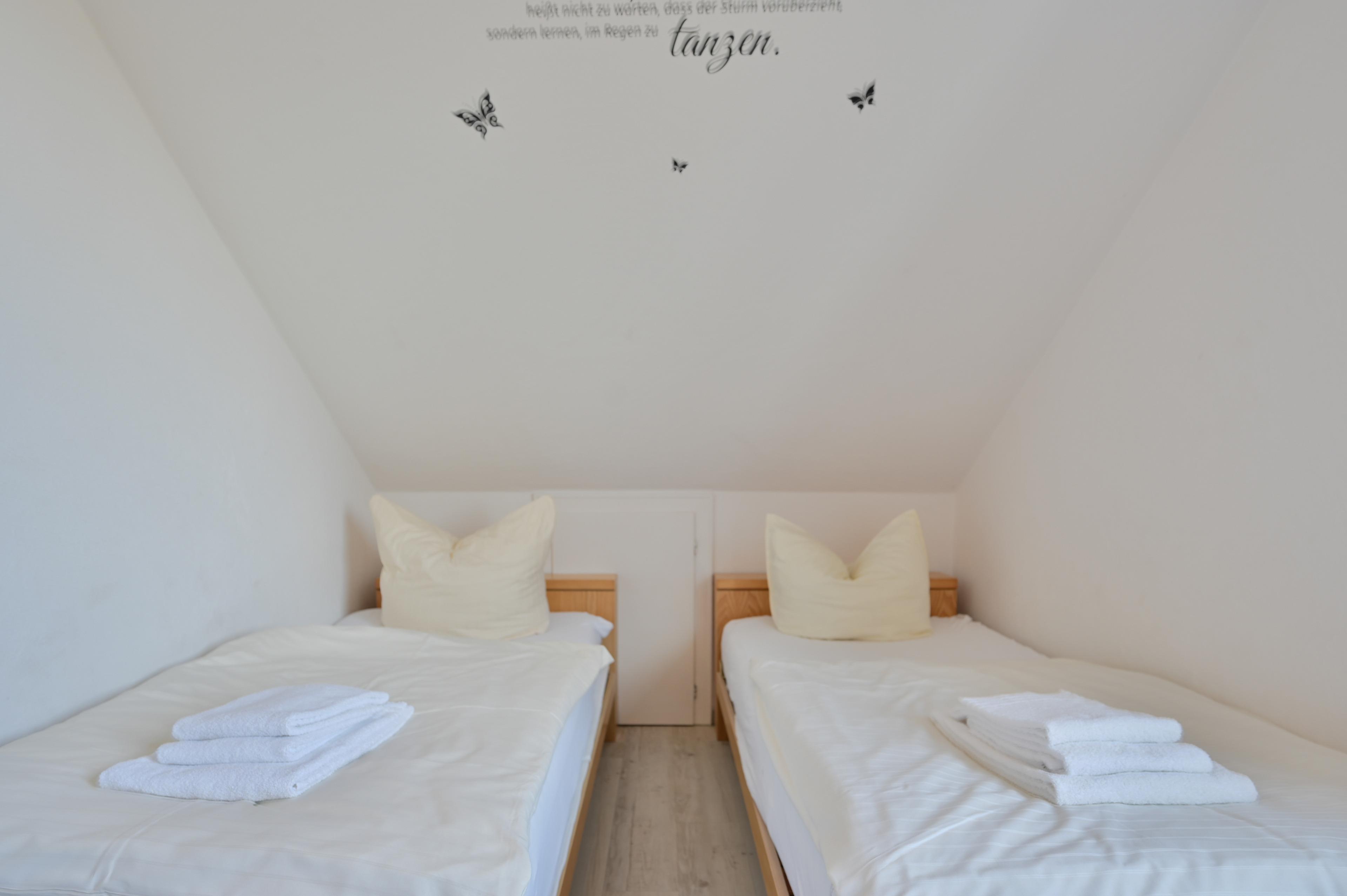 Die "Ferienwohnung 1" liegt im Obergeschoss des Haupthauses links mit direktem Blick auf die Ostsee aus dem Schlafzimmer und vom Balkon aus.