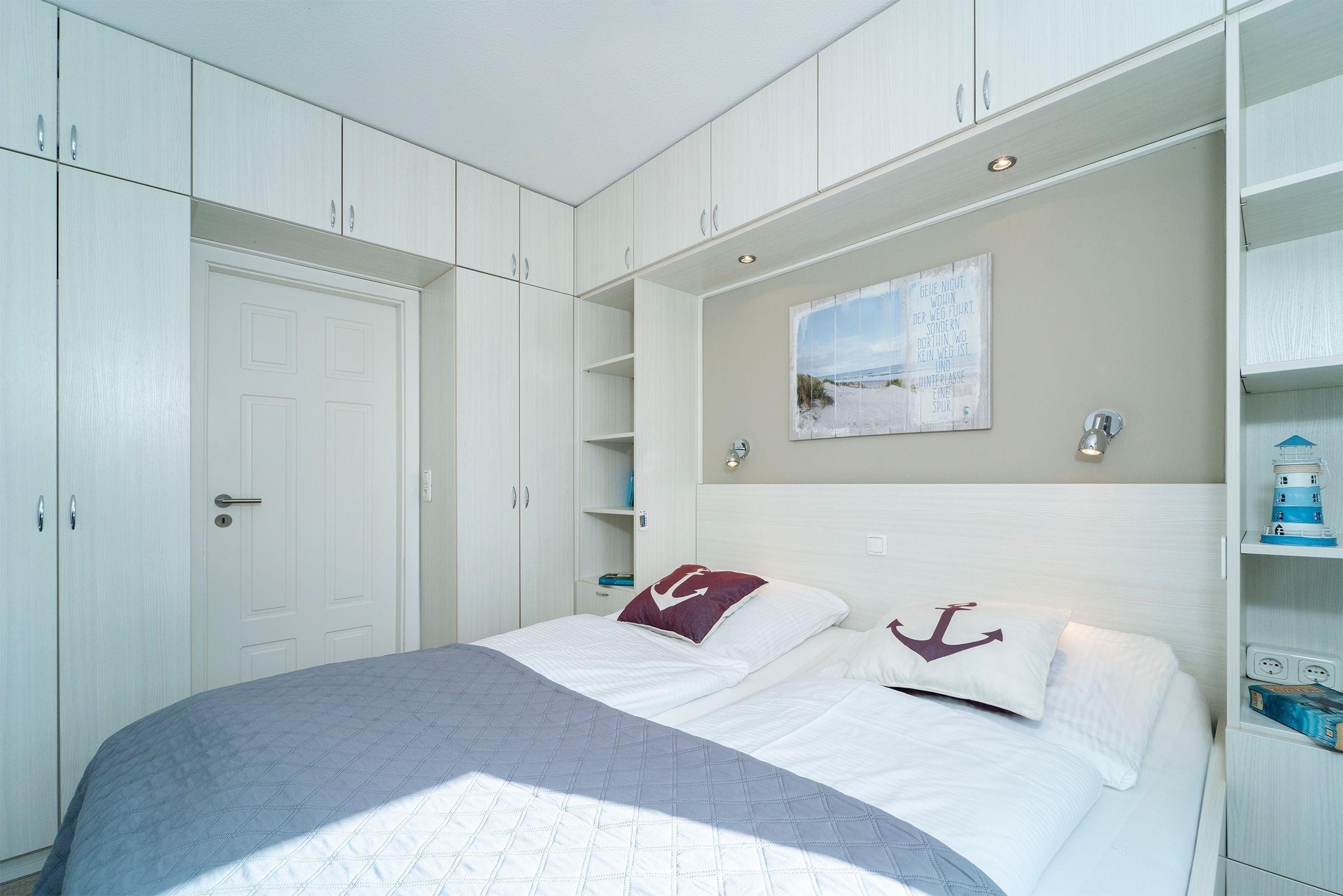 Schlafzimmer: 1 Doppelbett (180x200 cm), TV, Kleiderschrank, Verdunkelung (Außenrollo)