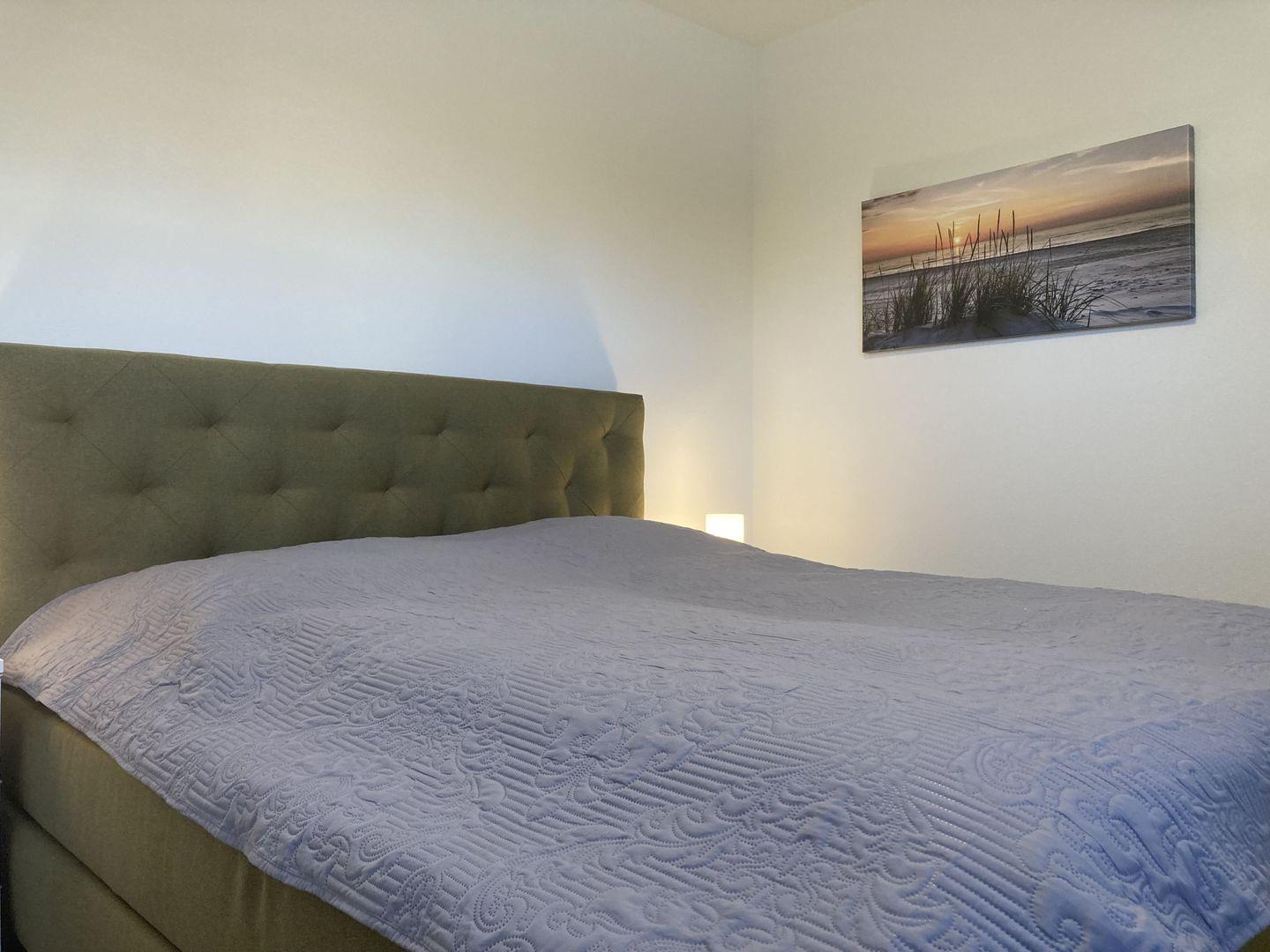 - Schlafzimmer mit hochwertigen Boxspringbett (durchgängige Matratze 180 cm x 200 cm) und Kleiderschrank