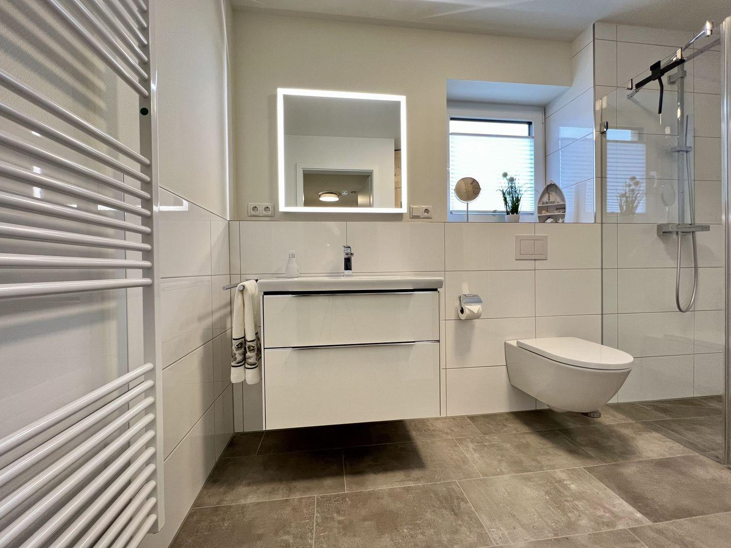 - geräumiges tageslichthelles Bad mit bodentiefer Dusche und Sauna