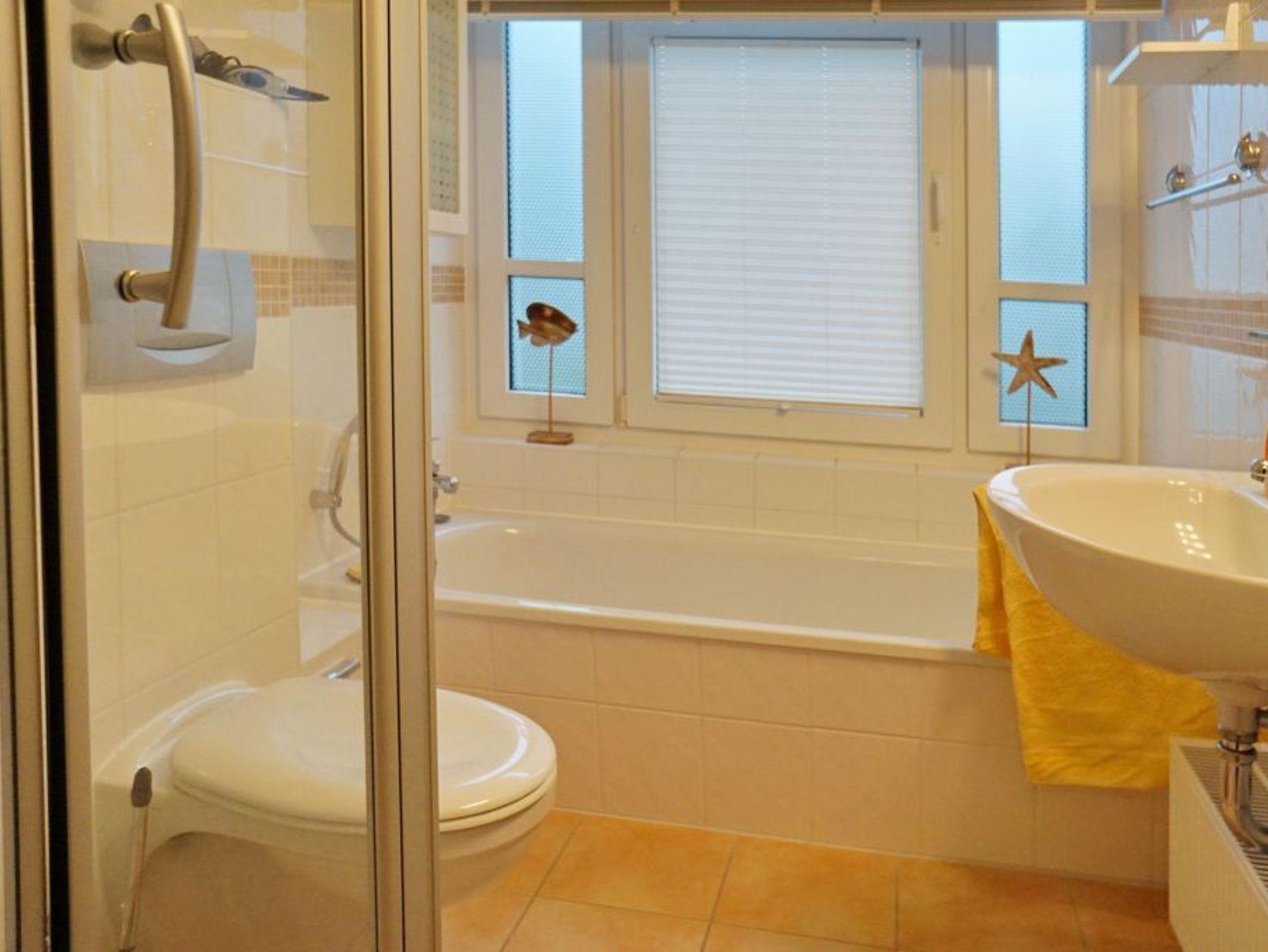 Die Nordsee-Ferienwohnung hat eine Größe von ca. 55 qm. Sie verfügt über 1 Schlaf- und 1 Kinderzimmer, ein Wohnzimmer mit Essecke, sep. Küche und ein Badezimmer mit Dusche und Badewanne. Die Küche ist mit E-Herd (Ceran-Feld und Backofen), Geschirrspüler, Kaffeemaschine, Toaster, Wasserkocher usw. ausgestattet.