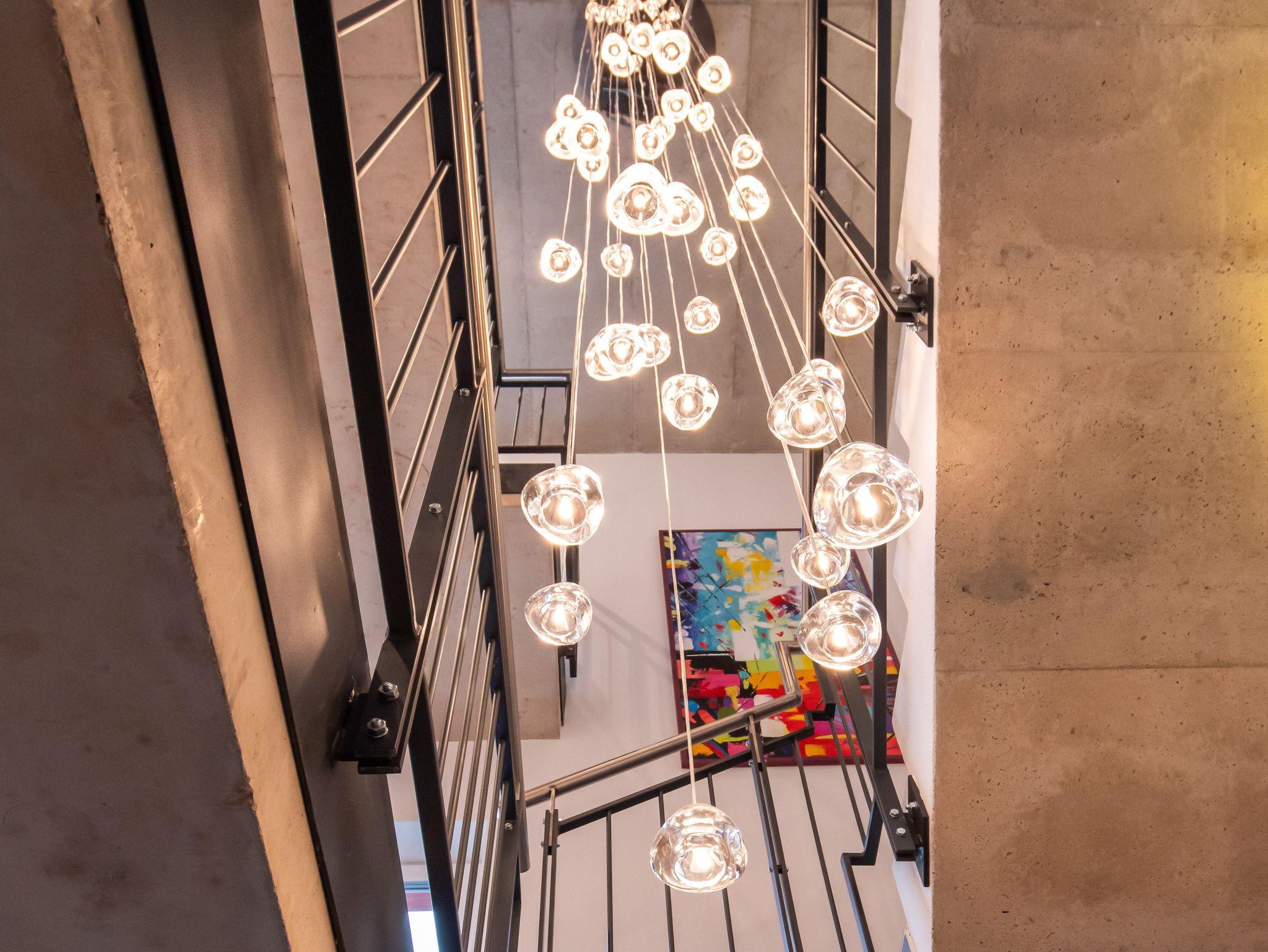 Teilweise gehen die Stahlträger durch die Küchenarbeitsplatte oder die Holzbinder durch den Esstisch.
