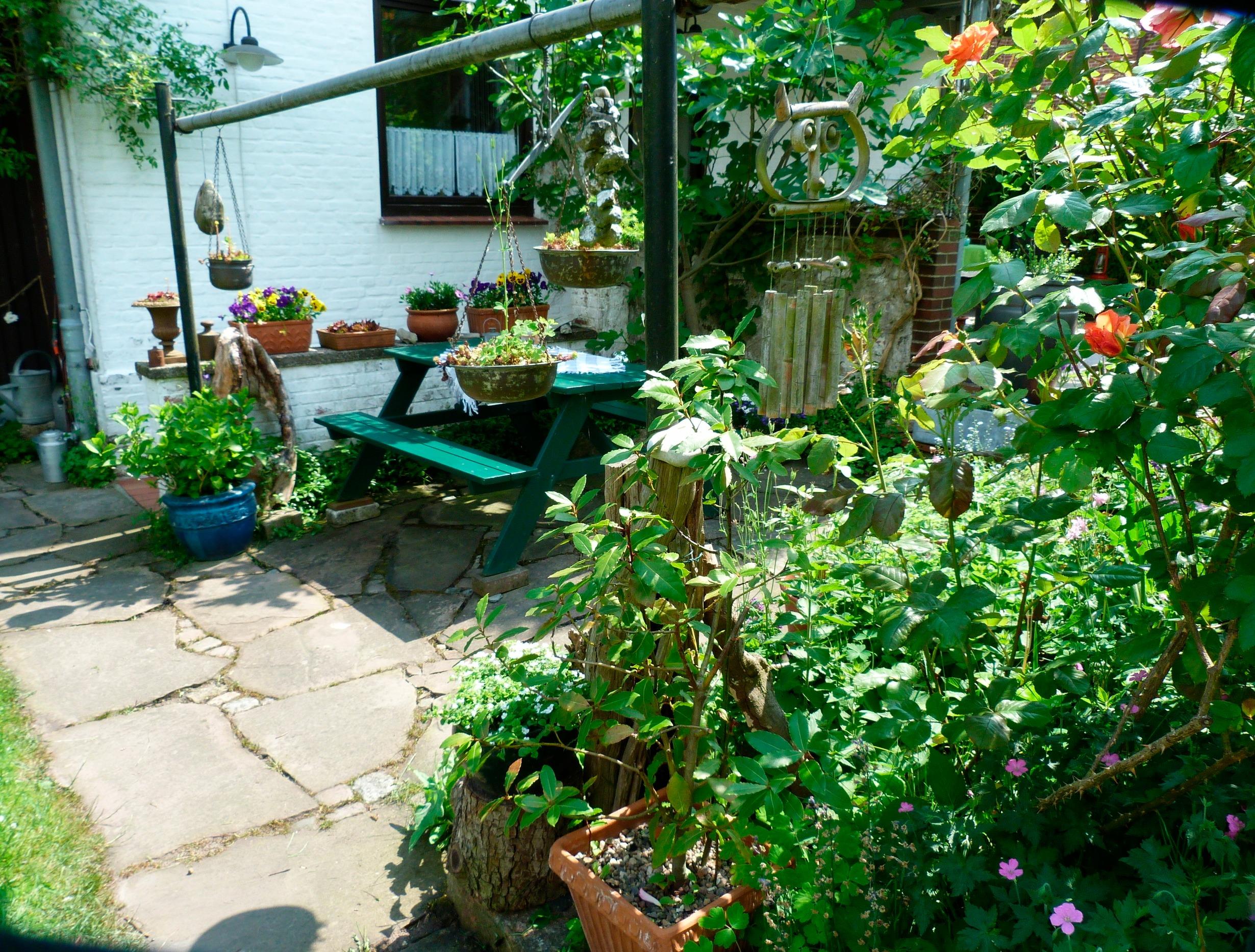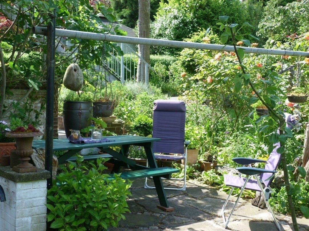 In unserem idyllischen Naturgarten haben wir eine Sitzecke für Sie eingerichtet.