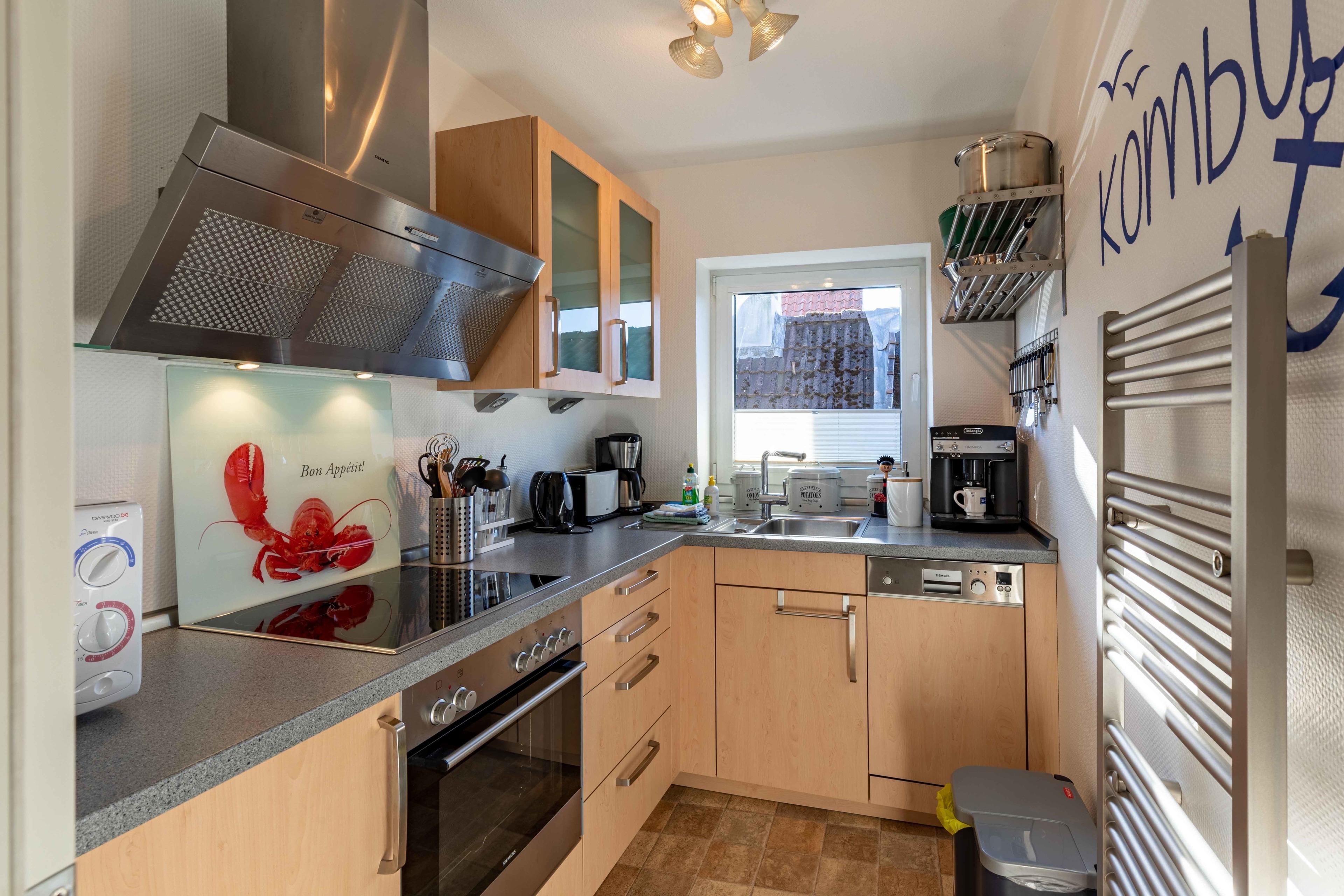 Die 80 qm große Wohnung gliedert sich in einen Eingangsbereich, ein Wohn-Esszimmer mit Schlafcouch (160x200), ein zweites Schlafzimmer mit Schlafcouch (150x200), sowie eine volleingerichtete Küche (Spülmaschine, Mikrowelle, Ceranfeld, Kaffeemaschine usw.) und ein Schlafzimmer mit Doppelbett (180x200), sowie eingebauten Kleiderschränken. Des Weiteren verfügt das Apartment über ein Badezimmer mit Dusche, WC und Waschbecken und einer Waschmaschine.