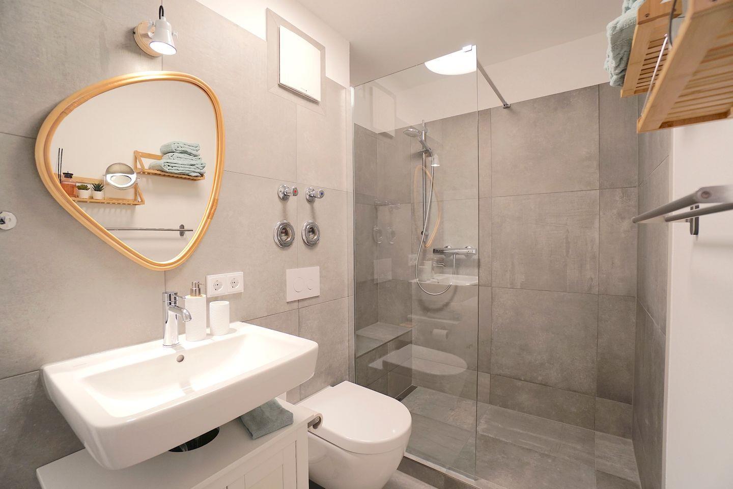 Das Schlafzimmer lädt mit seinem behaglichen Ambiente zum Träumen ein, während das großzügige Duschbad mit Waschmaschine und Trockner den Komfort bietet, den man im Urlaub benötigt.