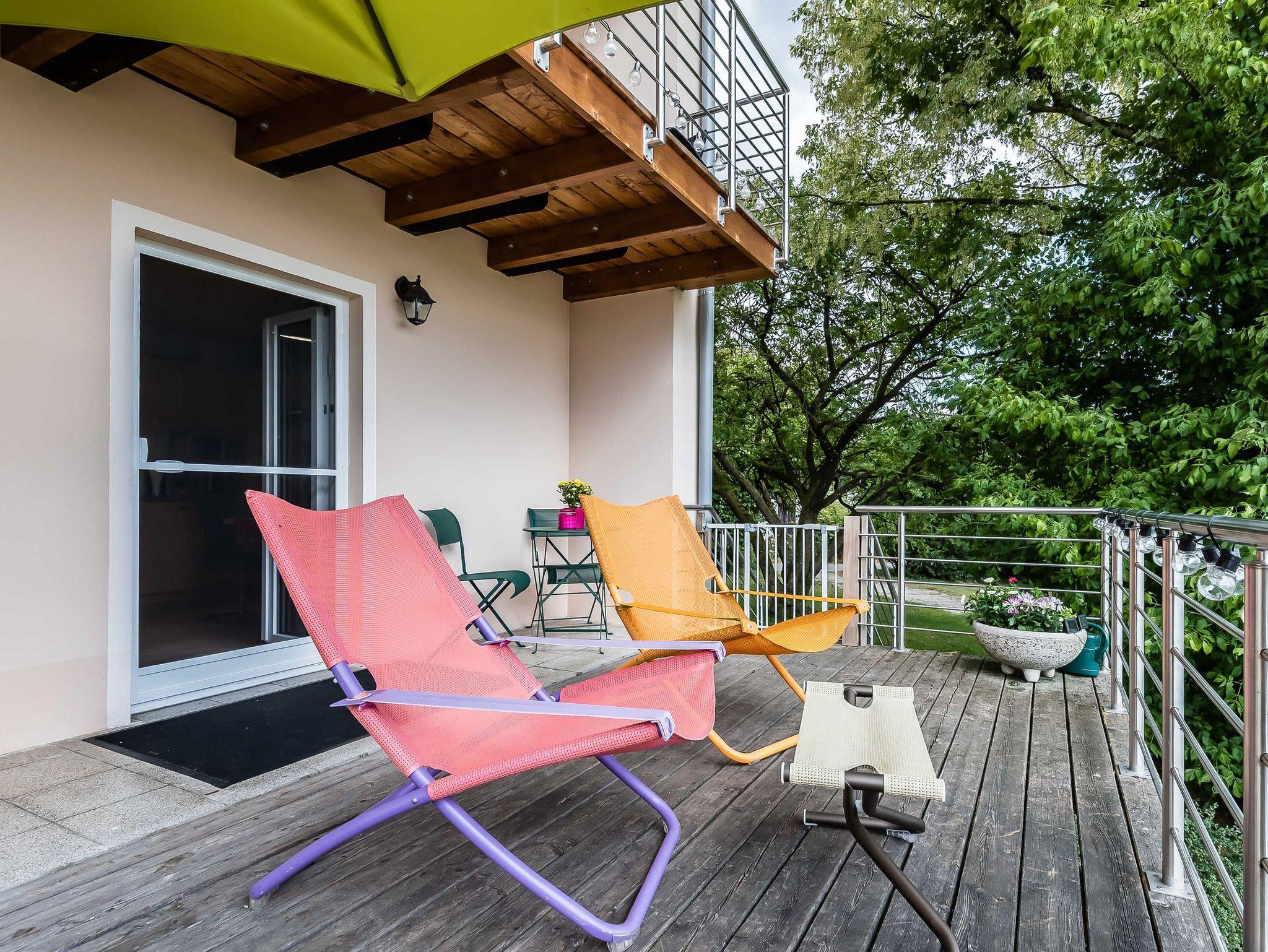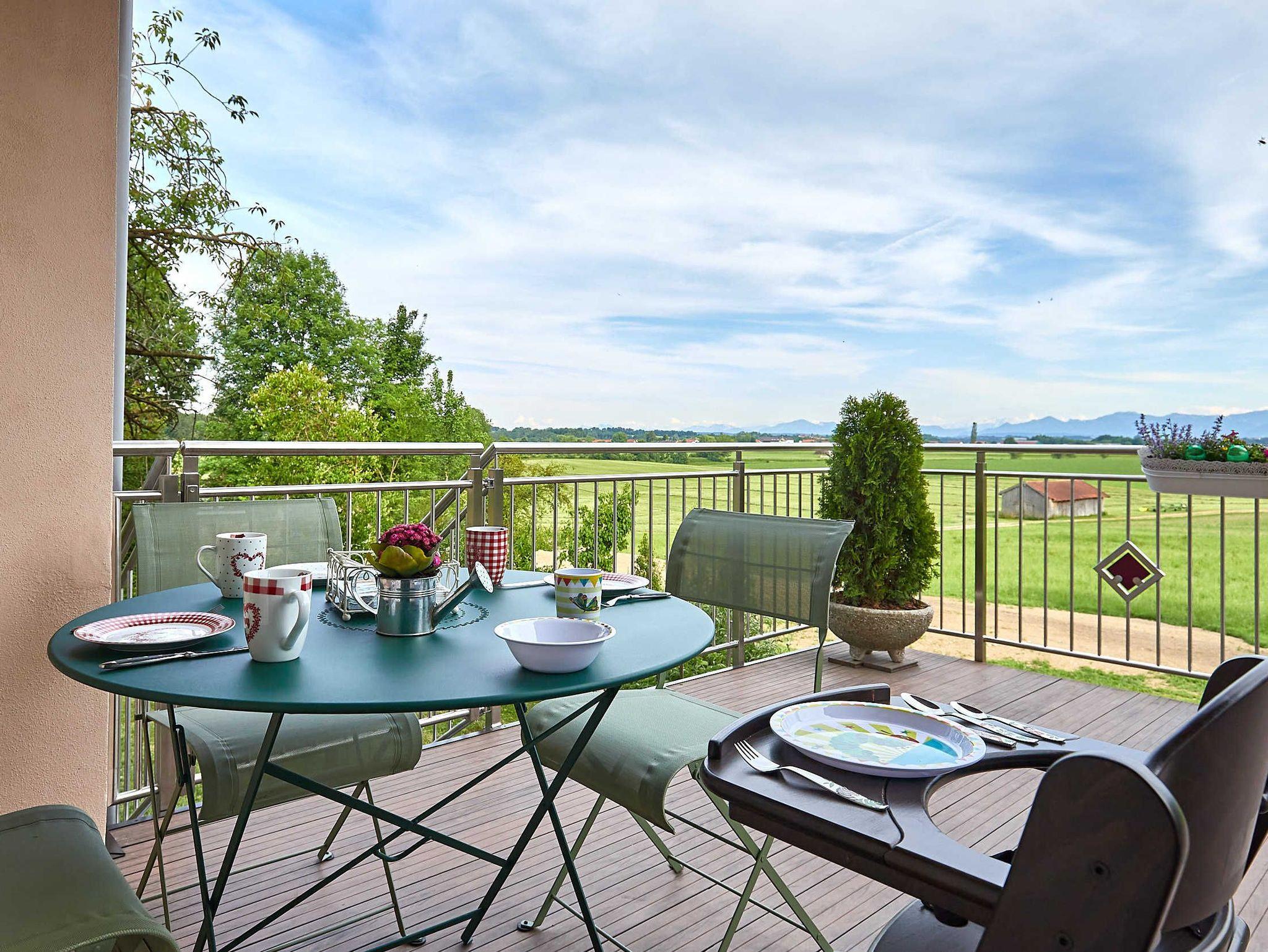 Zudem verfügt die Wohnung über eine große Terrasse, diese kann besonders gut für Grillabende, aber auch für Frühstück im Freien genutzt werden. Gibt es denn etwas Schöneres als mit einem Blick auf die Berge in den Tag zu starten?