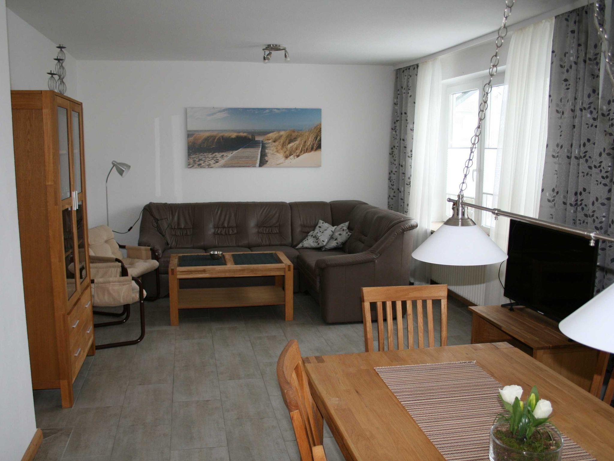 Im Erdgeschoss befinden sich das gemütliche Wohnzimmer mit Essbereich, die Küche (ausgestattet mit Geschirrspüler, Gefrierschrank und Mikrowelle) mit Essecke, das Wannenbad (2020 saniert) sowie ein Abstellraum mit Waschmaschine und der Ausgang zur Terrasse. Im Obergeschoss befinden sich zwei Schlafzimmer mit Doppelbett sowie ein Duschbad. Im Wohnzimmer befindet sich eine Schlafcouch (1,20m breit), auf der bis zu zwei zusätzliche Schlafplätze zur Verfügung stehen.