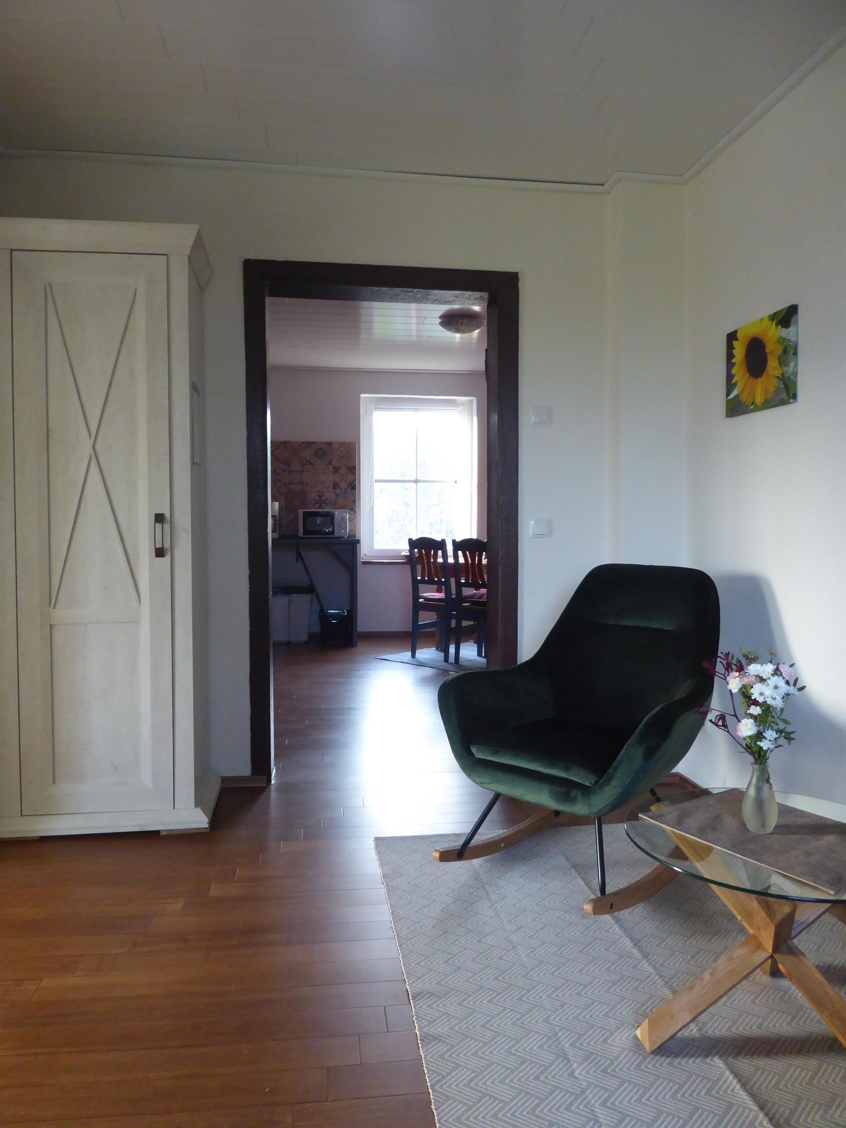 Das gemütliche, hochwertig und liebevoll ausgestattete Nichtraucher Appartement, in idyllischer Lage, befindet sich im 1. Stock eines alten Backsteinhauses das Teil einer ehemaligen Hofstelle ist, und ca. 200 m vom Ortsrand Eggesin entfernt liegt. Es ist das erste fertiggestellte Feriendomiziel einer Ferienhofanlage in Entwicklung und hat einen separaten Eingang. An dessen Ende besteht eine größere Fläche, die als Balkon genutzt werden kann. In dem für 1 -2 Personen eingerichteten Appartement, sorgen 1 Doppelbett (160 cm x 200 cm) und ein Schlafsofa (90 cm x 200 cm) , für einen erholsamen Schlaf. Ein Kinderreisebett, sowie ein Kinderhochstuhl für 1 Kind bis zu 2 Jahren, kann kostenfrei gestellt werden.