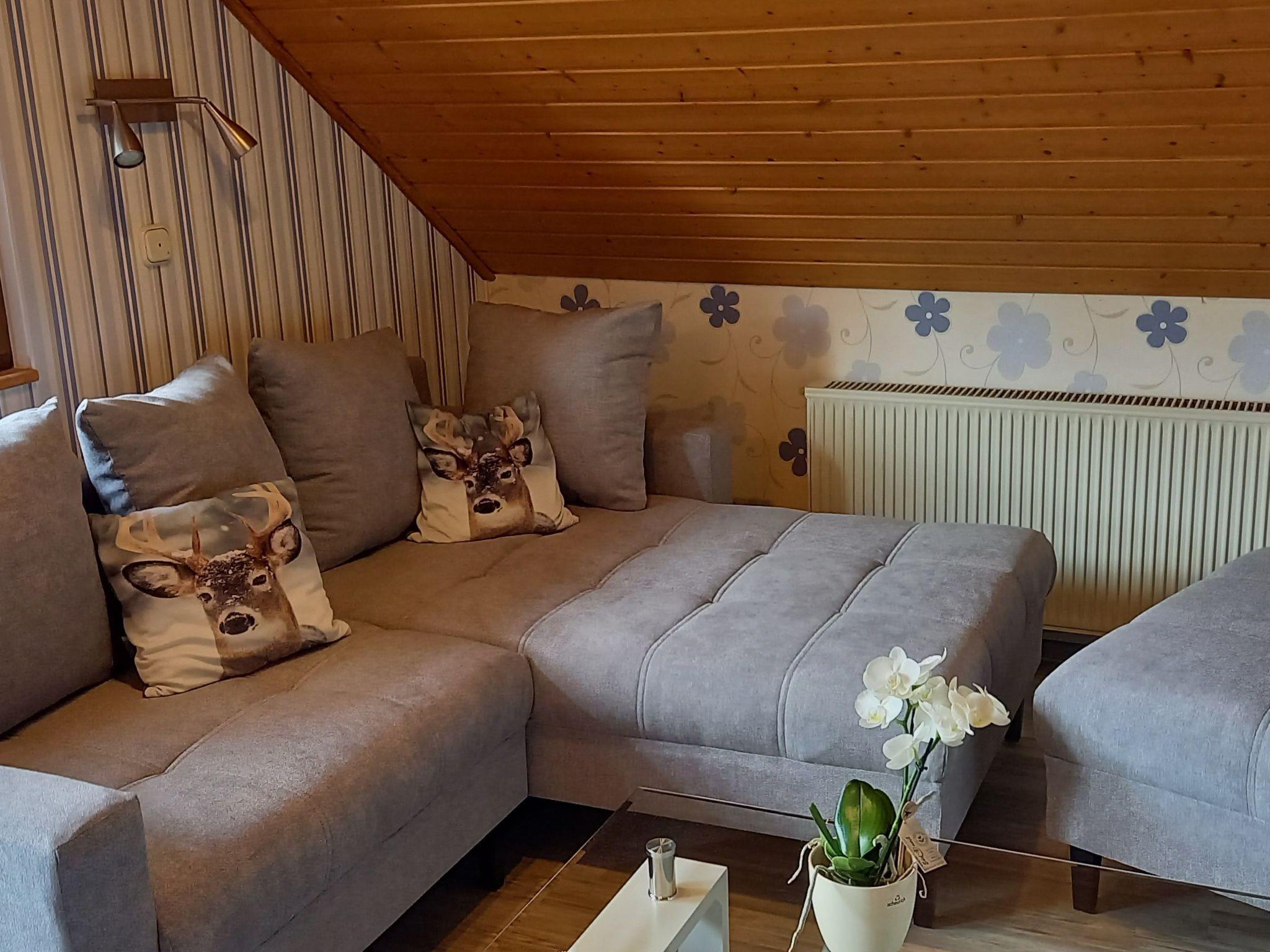 We offer you a comfortably furnished holiday flat (50 m²) on the top floor, with its own entrance, for up to 4 people. In the attic is the bedroom for 4 persons. )