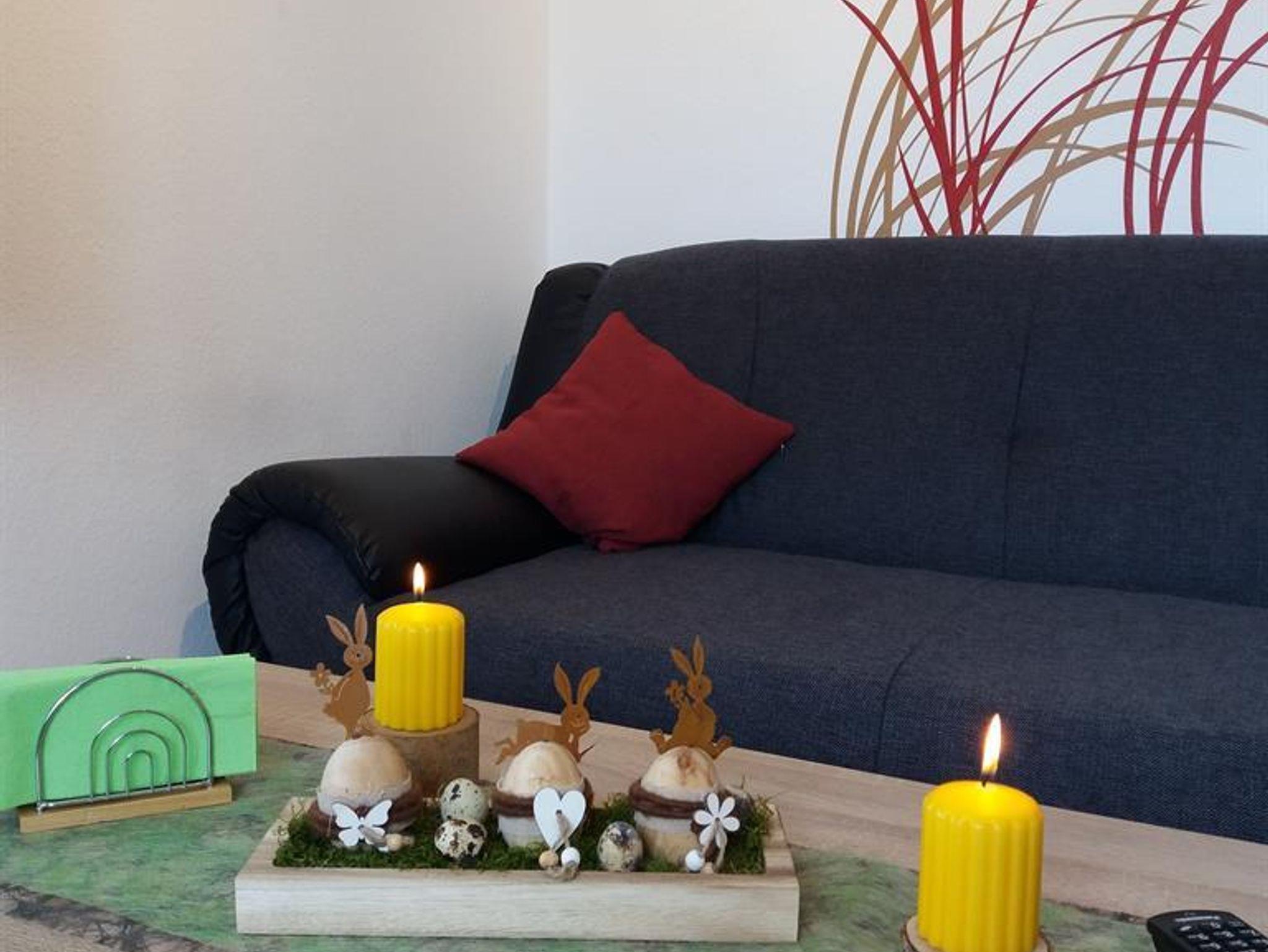 Die Wohnung befindet sich im Erdgeschoss und ist komplett eingerichtet mit einer Wohnküche, Sat-TV, WLAN, Radio, Schlafzimmer (D-Bett 160x200 cm), Bettwäsche, DU/WC, Hand- und Badetücher, Fön inklusive.