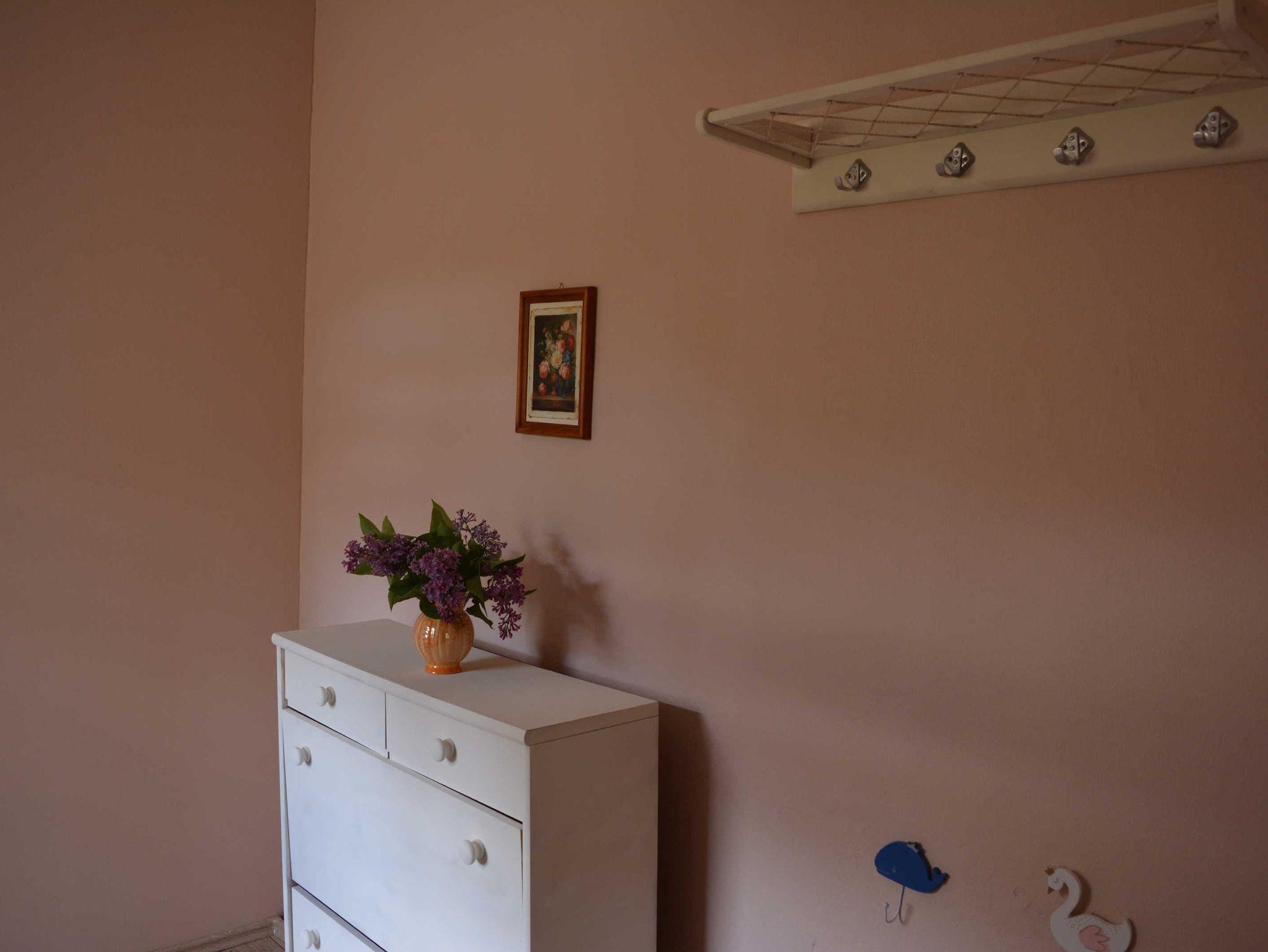 Ferienhaus in ruhiger Ortslage Wohnfläche 73 m² für 1-4 Personen; Büroarbeitsplatz und Kinderspielecke; Wohnküche (Ceranfeld, Backofen, Geschirrspüler, Mikrowelle, Kaffeemaschine, Kaffeevollautomat, Toaster, Kühl-Gefrierkombination, große Couch, Esstisch, WLAN, Satelliten-TV); ein Schlafzimmer mit Doppelbett, anliegend Büroarbeitsplatz; ein weiteres Schlafzimmer für 2 Personen mit 2 Einzelbetten, Kleiderschrank, Bügelbrett und Bügeleisen; Garderobe mit Ottomane; Badezimmer mit WC, Waschmaschine, Waschbecken, Duschkabine und Haartrockner; Baby-Essstuhl; Terrasse mit Sonnenschirm, gemütlichen Gartenmöbeln und Holzkohlegrill; 2 PKW Stellplätze; Zentralheizung