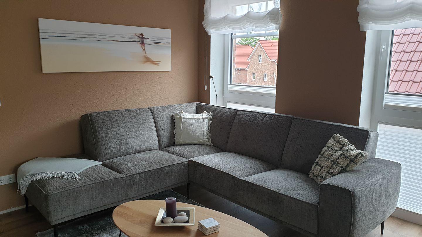 Sie betreten einen lichtdurchfluteten Wohn- Essbereich mit angrenzender offener Küche. Von den sehr bequemen Stühlen am Esstisch blicken Sie über den möblierten Balkon direkt auf das nur wenige Meter entfernte Siel und in die Natur von Eilsum. Das gemütliche Sofa lädt zum Entspannen oder Fernsehen (Smart TV) ein. In der großzügig geplanten Küche bleiben keine Wünsche offen (Spülmaschine, Mikrowelle, Induktions-Kochfeld, Backofen, Kühlschrank mit separatem Gefrierschrank, Filter-Kaffeemaschine, Nespresso-Automat, Toaster, Wasserkocher, Hand- und Stabmixer etc.). Ausreichender Stauraum und großzügige Arbeitsflächen laden zu kulinarischen Aktivitäten ein.