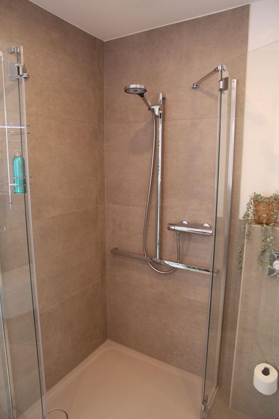 Im hellen und barrierearmen Tageslichtbad mit großer bodengleicher Dusche, Dusch-WC, Duschhocker, Fön und Vergrößerungsspiegel lässt es sich ebenfalls so richtig entspannen und erfrischen.
