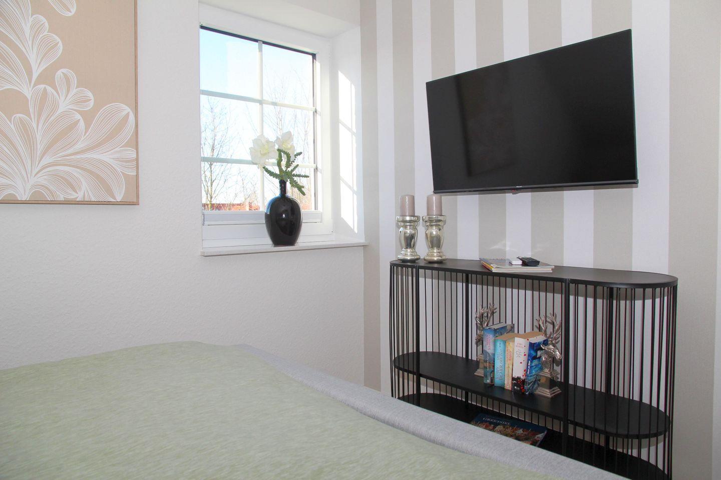 Das Haus bietet Ihnen insgesamt drei Schlafzimmer, die mit flauschigen Betten und viel Stauraum ausgestattet sind. Sie sind der perfekte Rückzugsort für eine erholsame Nachtruhe. Eines der Schlafzimmer befindet sich mit zwei einzelnen Boxspringbetten, Kleiderschrank und TV im Erdgeschoss, die beiden weiteren Schlafzimmer befinden sich mit jeweils einem Doppelboxspringbett (1x 1,80 m, 1x 1,60 m), Kleiderschrank (einmal sogar begehbar) und TV im Obergeschoss. Zudem stehen Ihnen zwei moderne Badezimmer zur Verfügung, die mit großen bodengleichen Duschen, Handtuchheizkörper, Föhn, WC und Waschbecken ausgestattet sind. Das große Badezimmer im Erdgeschoss bietet darüber hinaus noch die Sauna, eine Waschmaschine und einen Trockner.